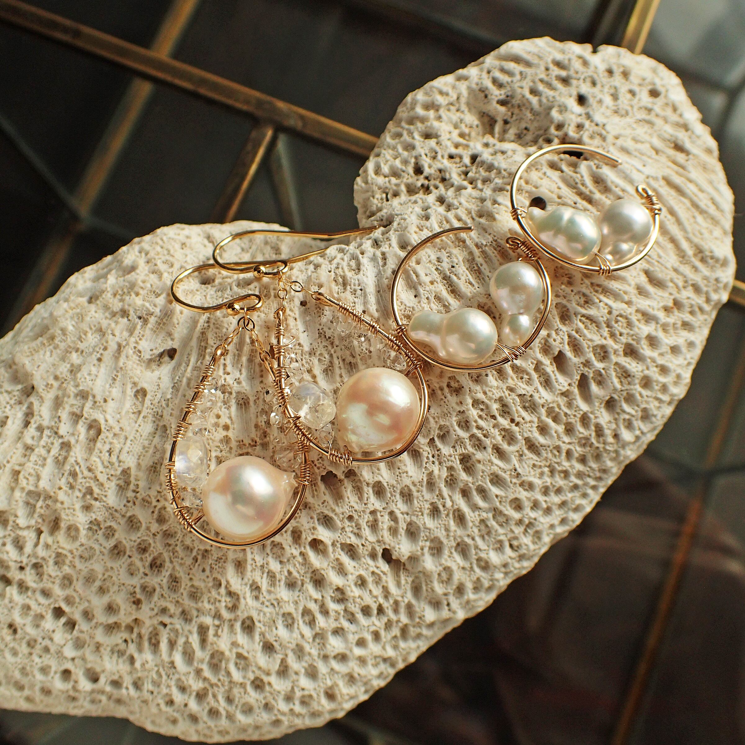 月明かりのように柔らかく輝くパールが、耳元を優しく照らし出します。