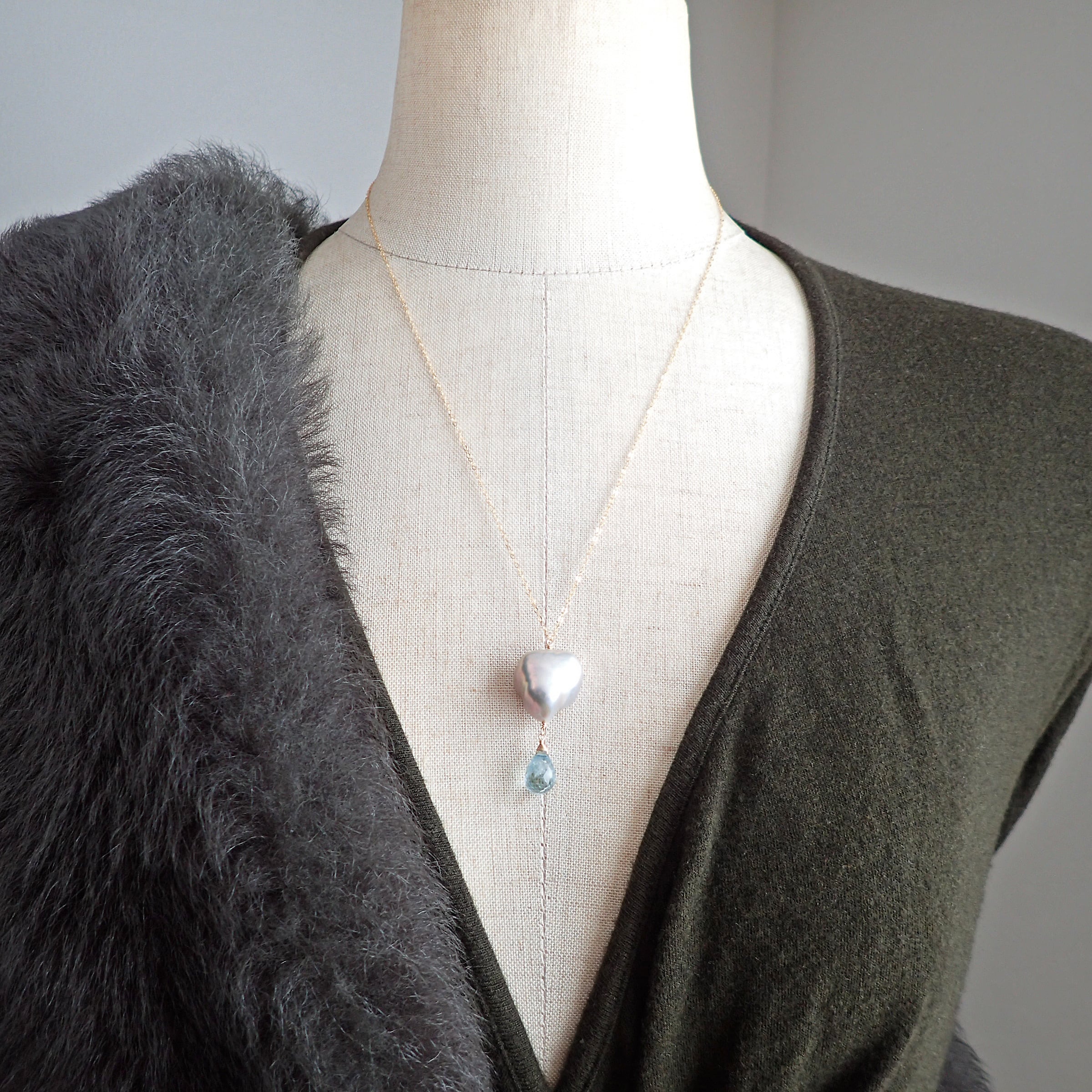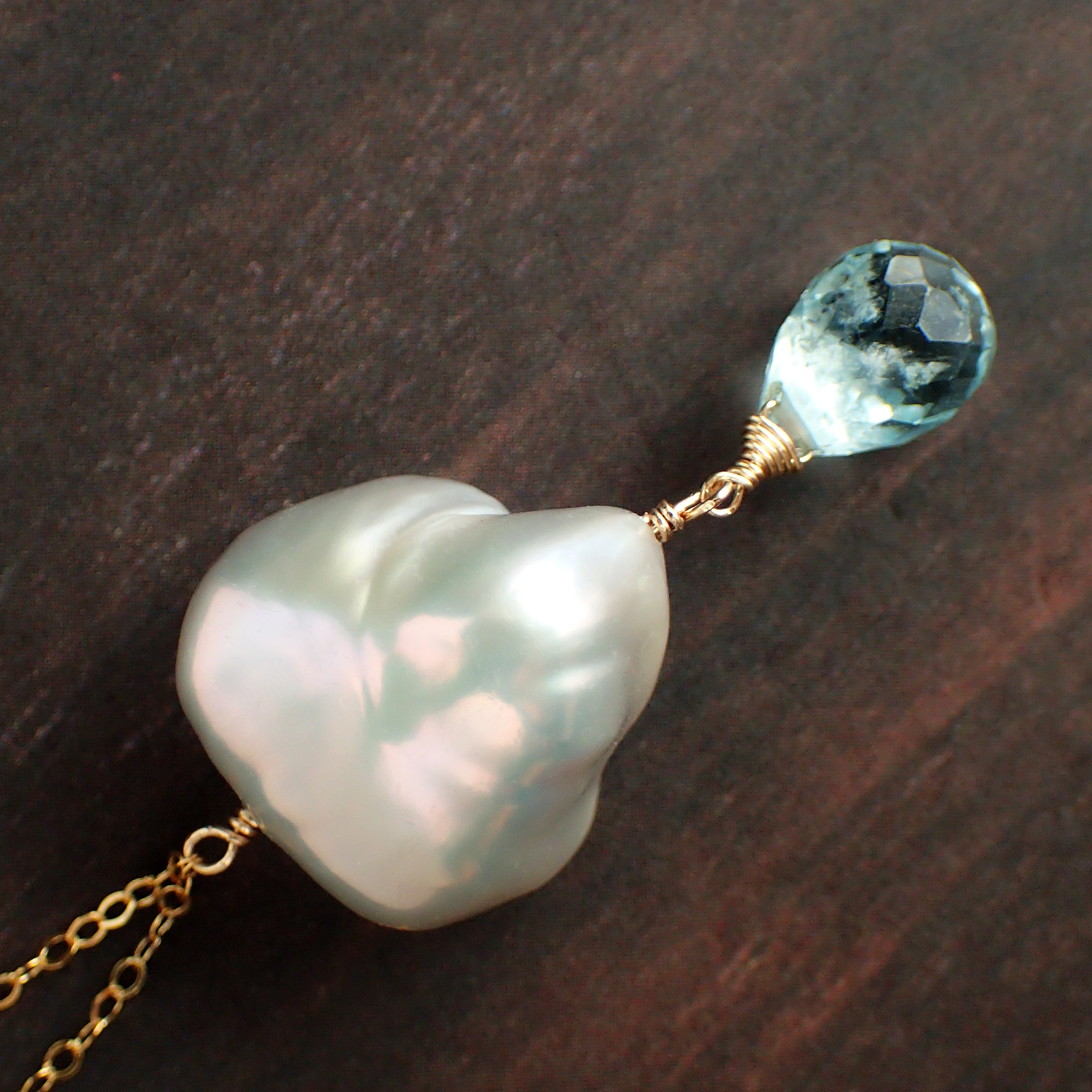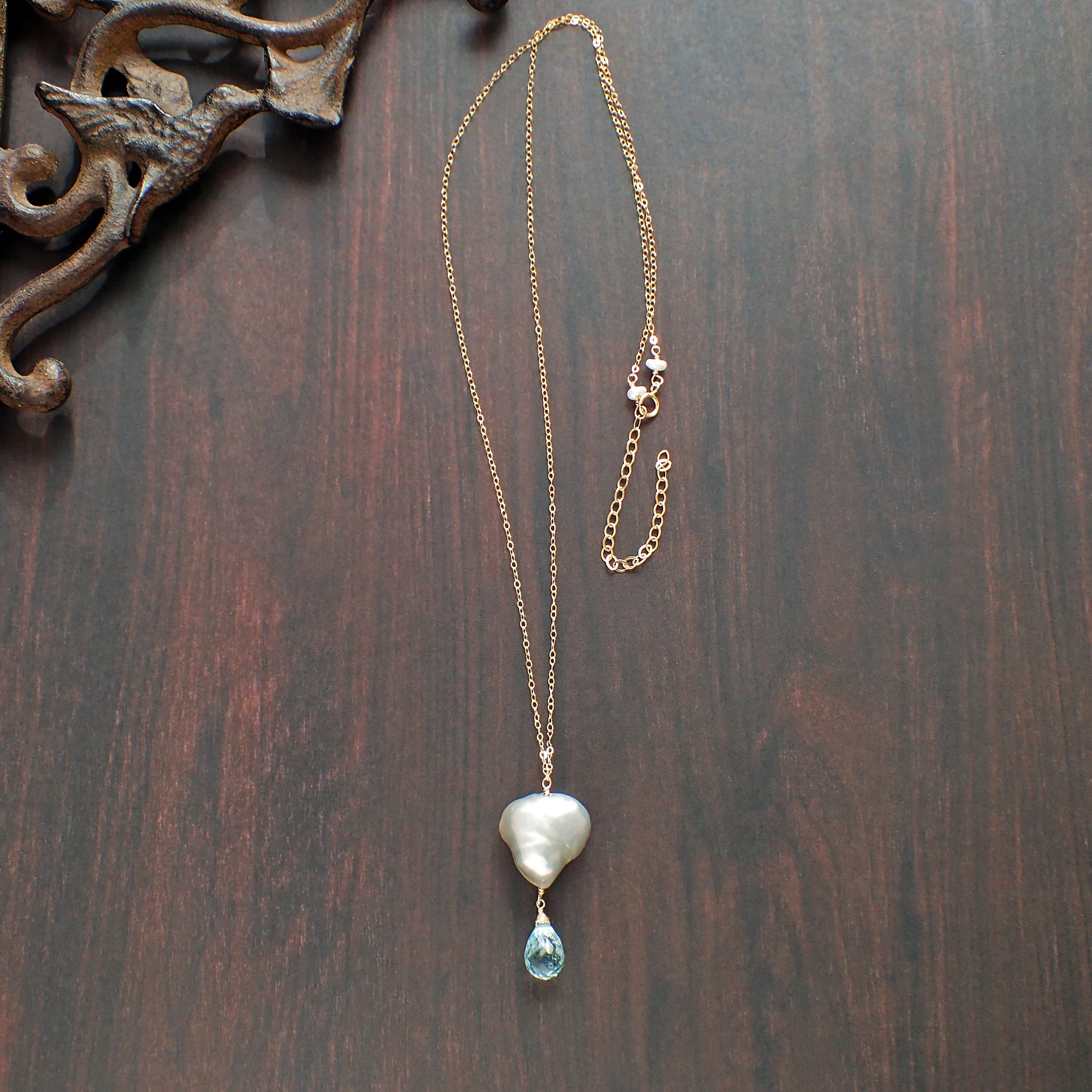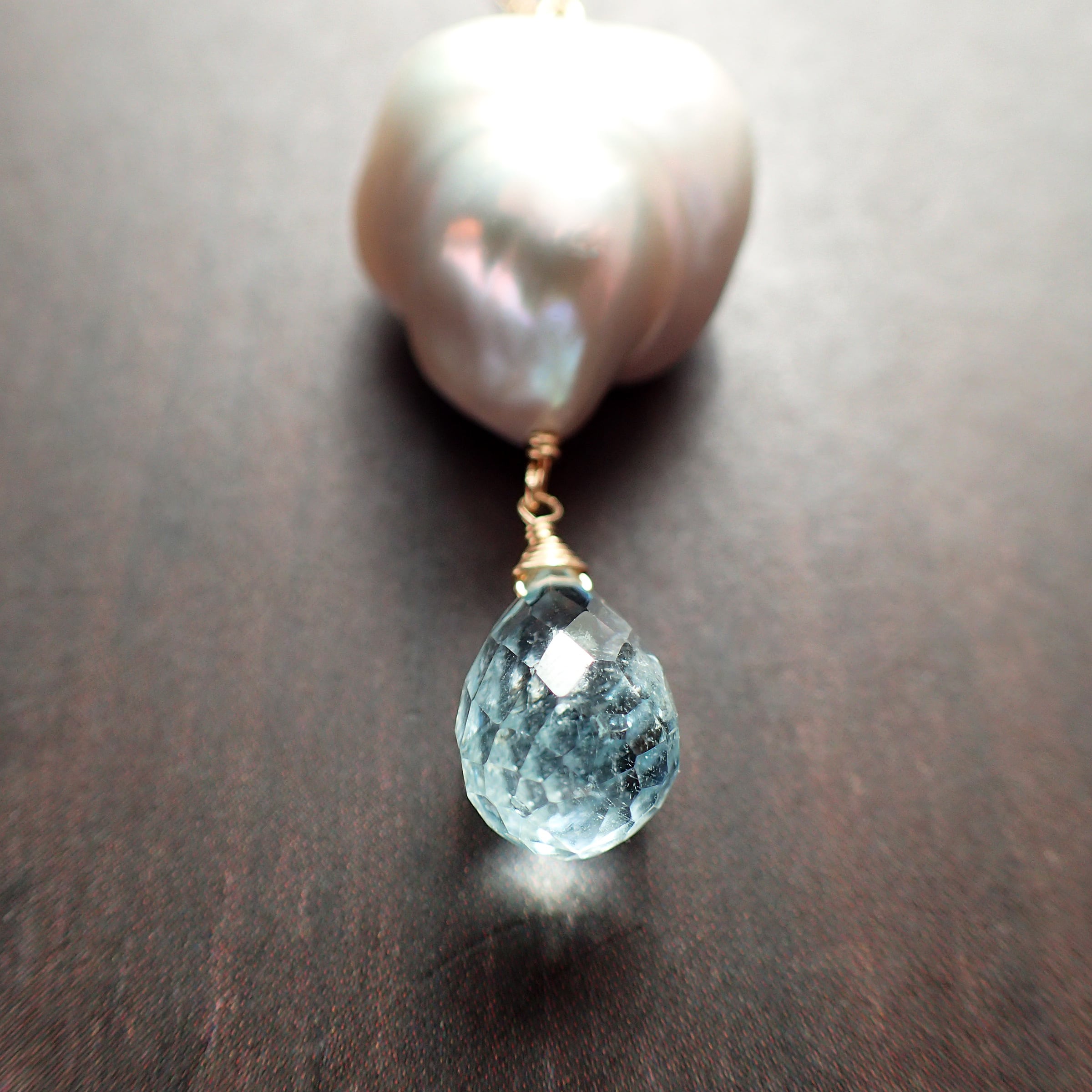 # 大粒バロックパール&アクアマリンのしずくネックレス