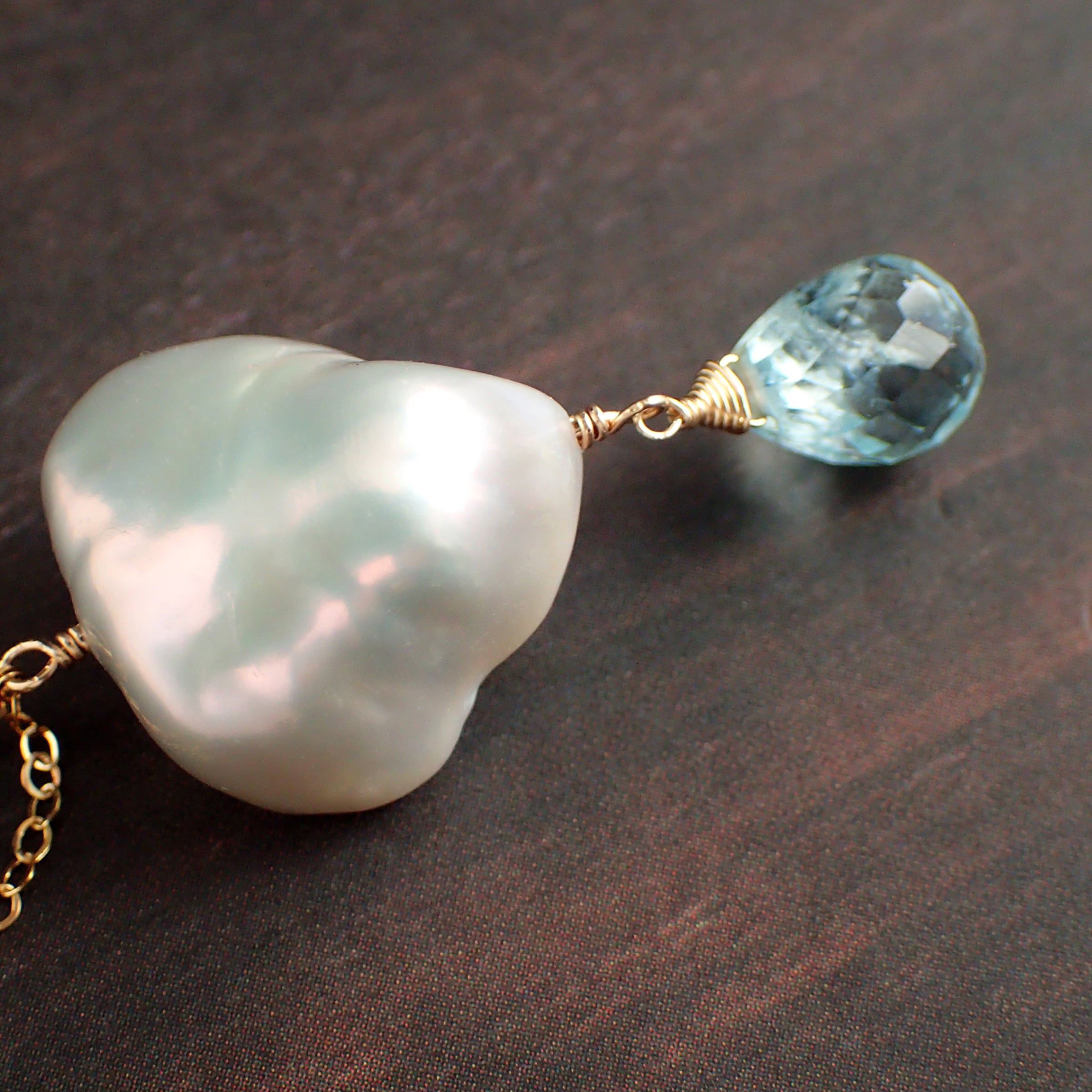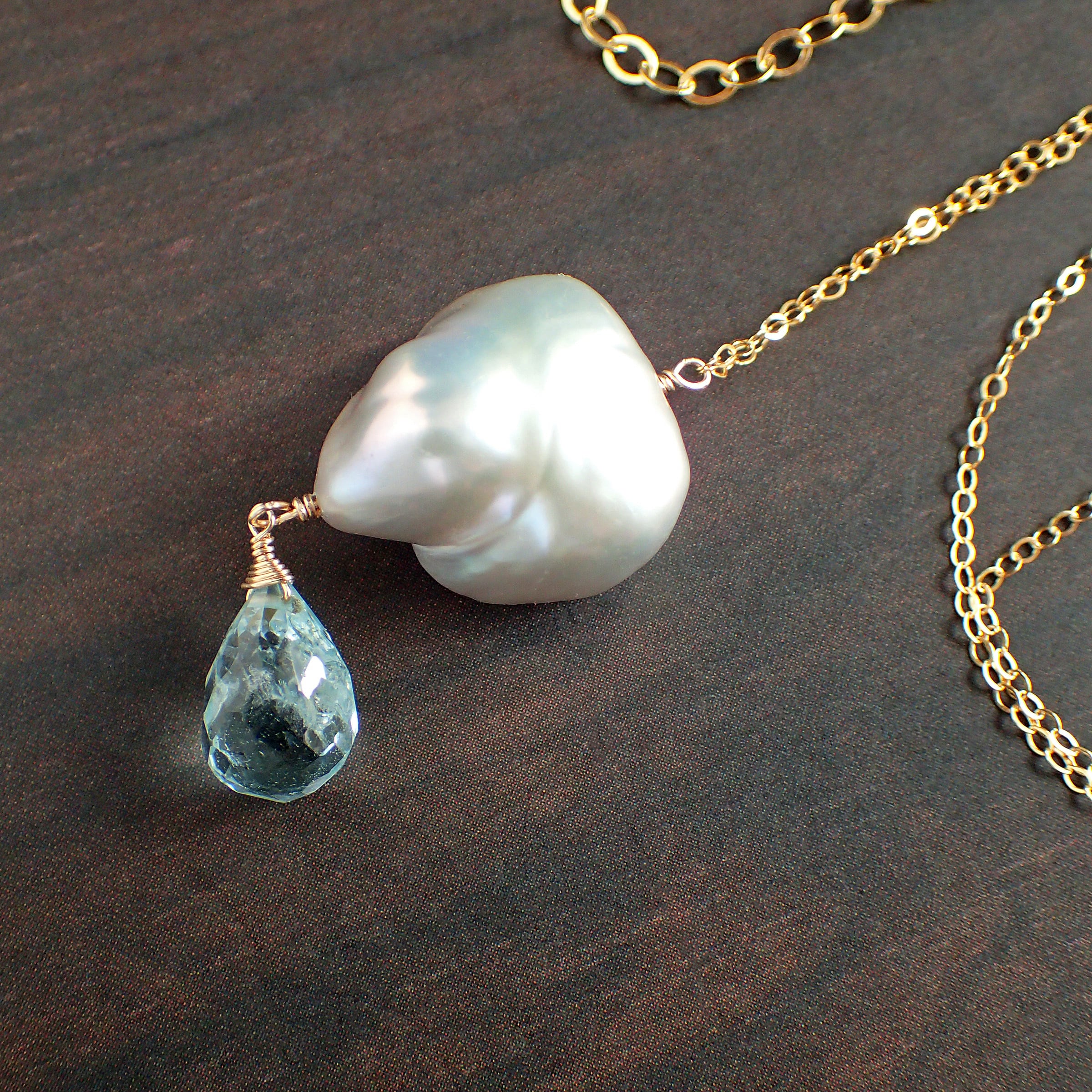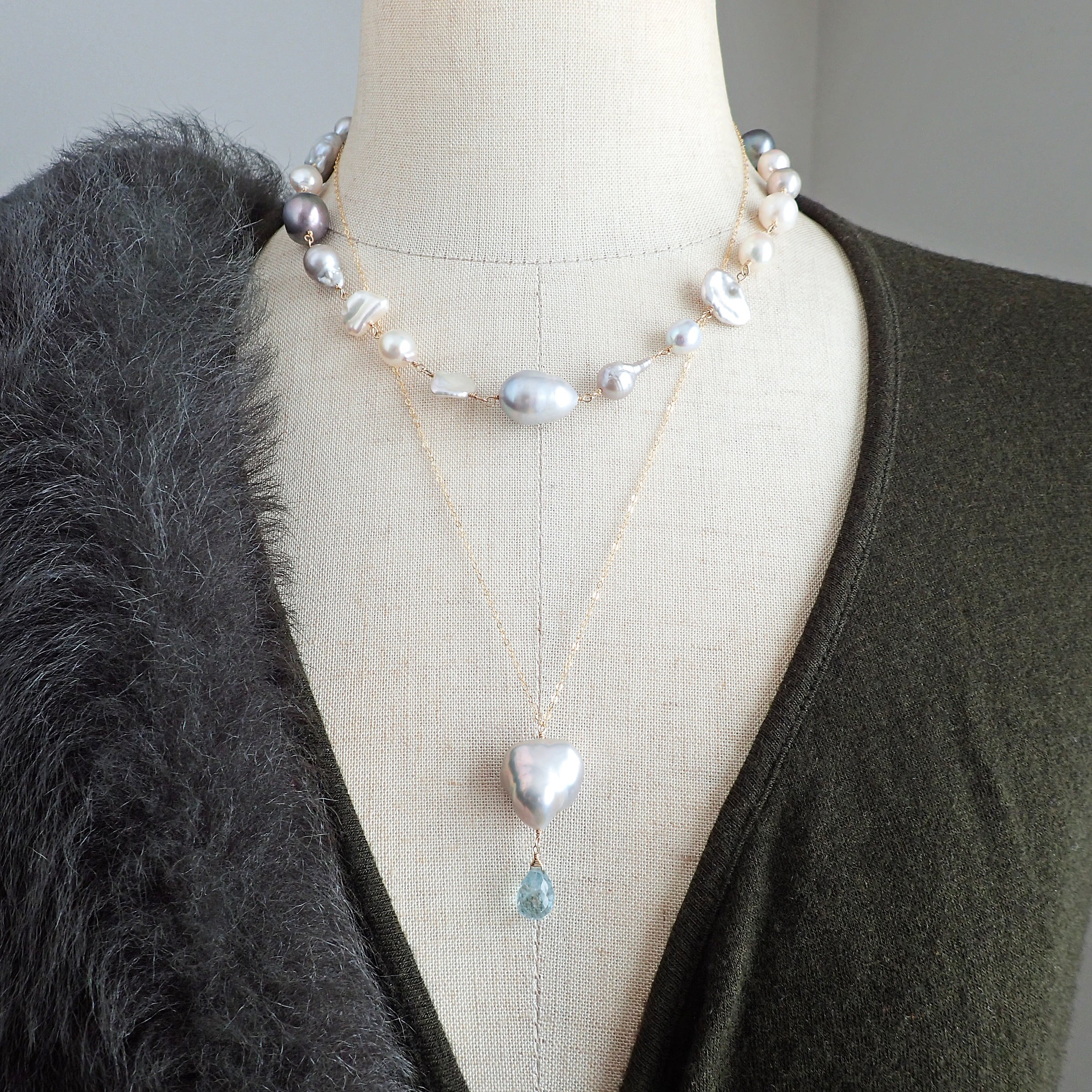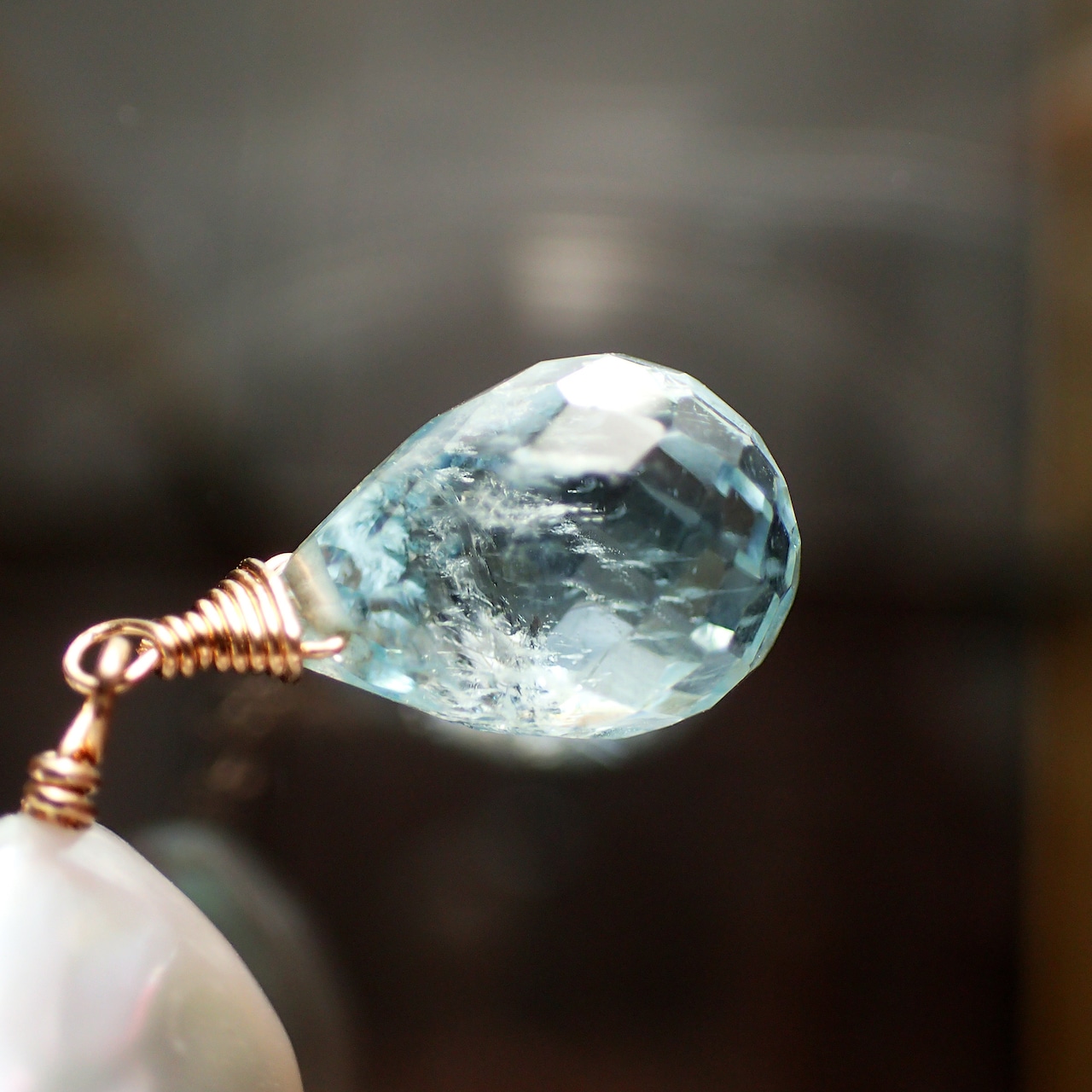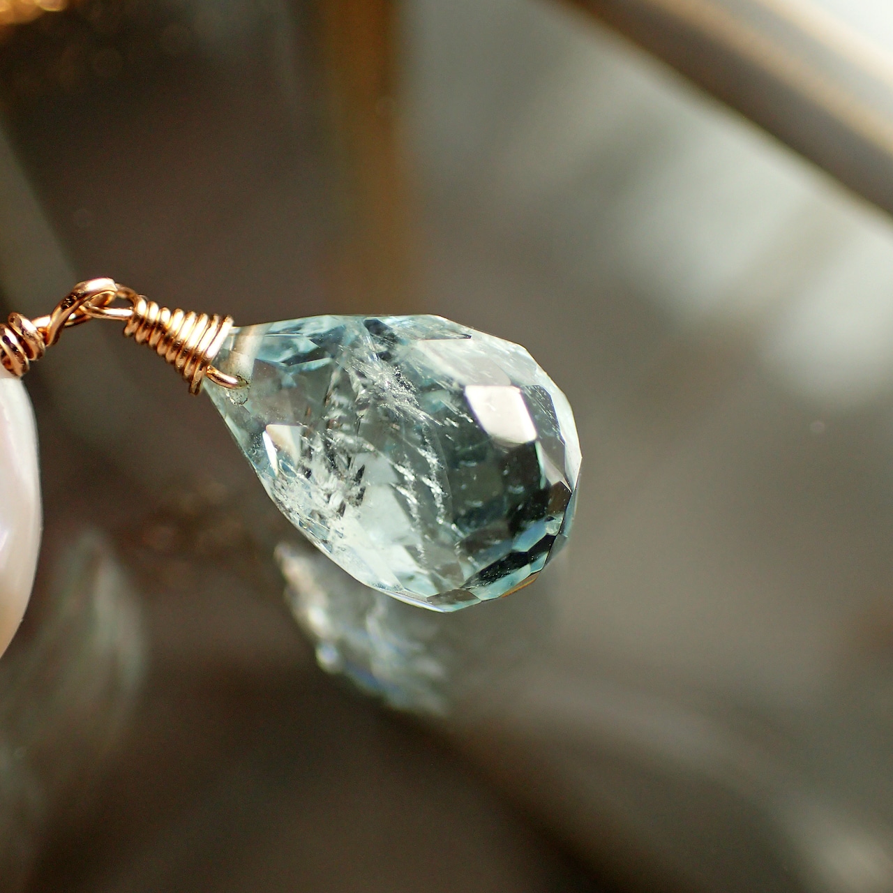 # 大粒バロックパール&アクアマリンのしずくネックレス