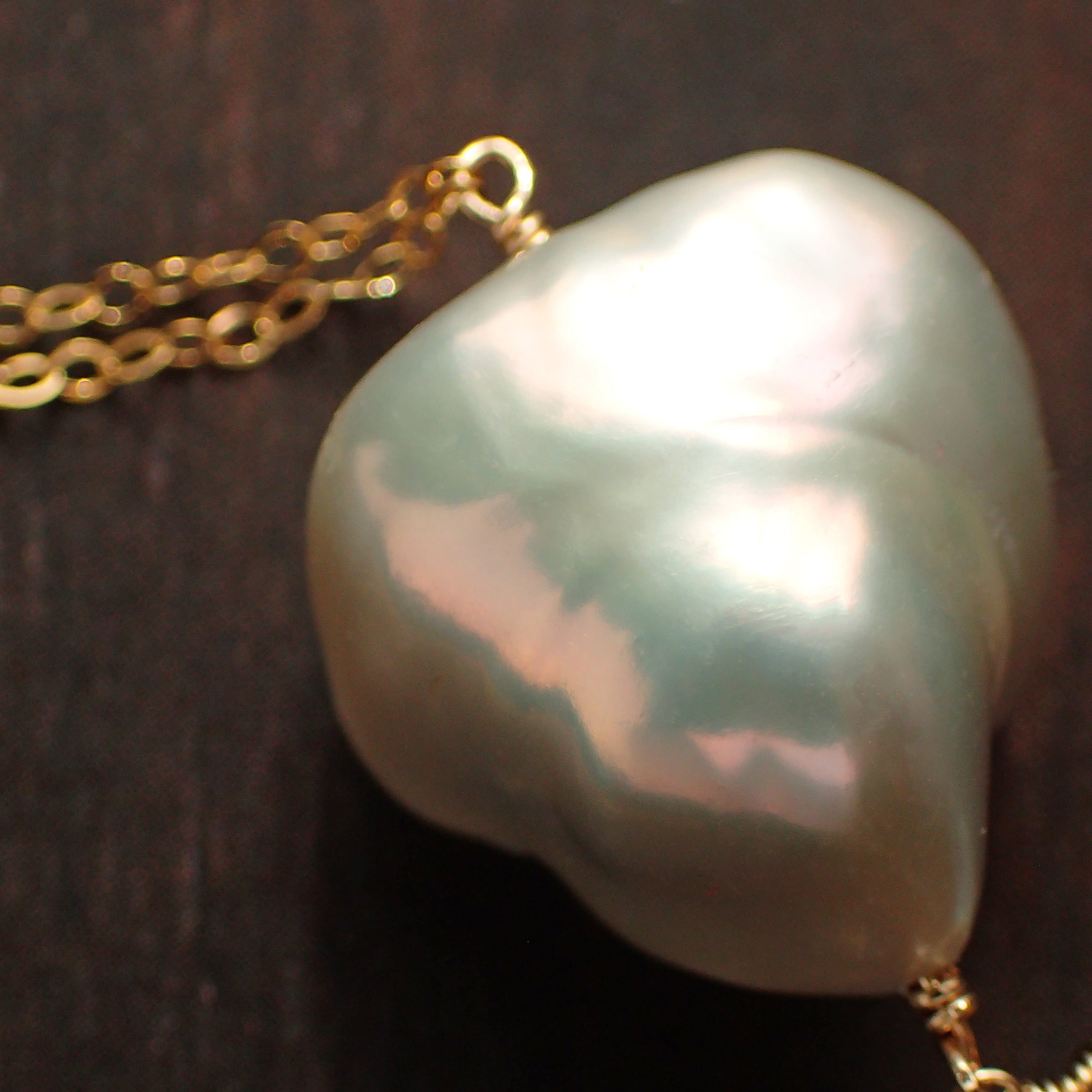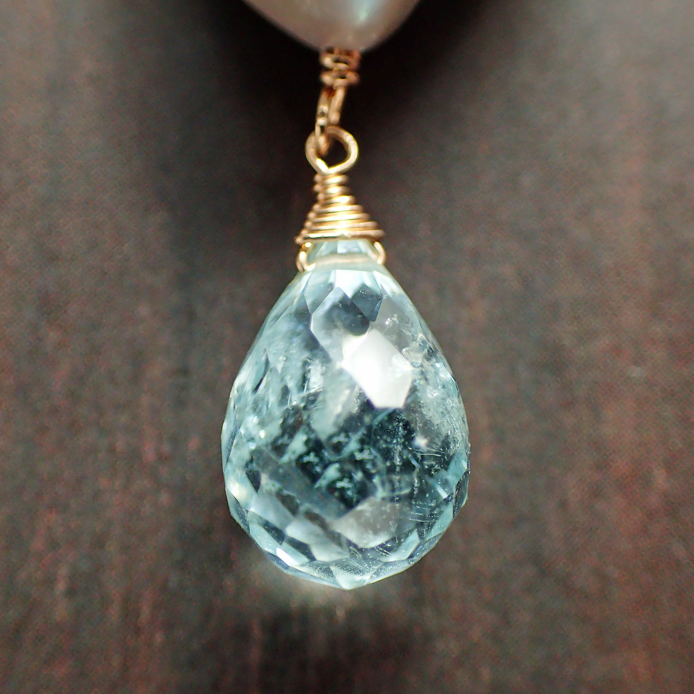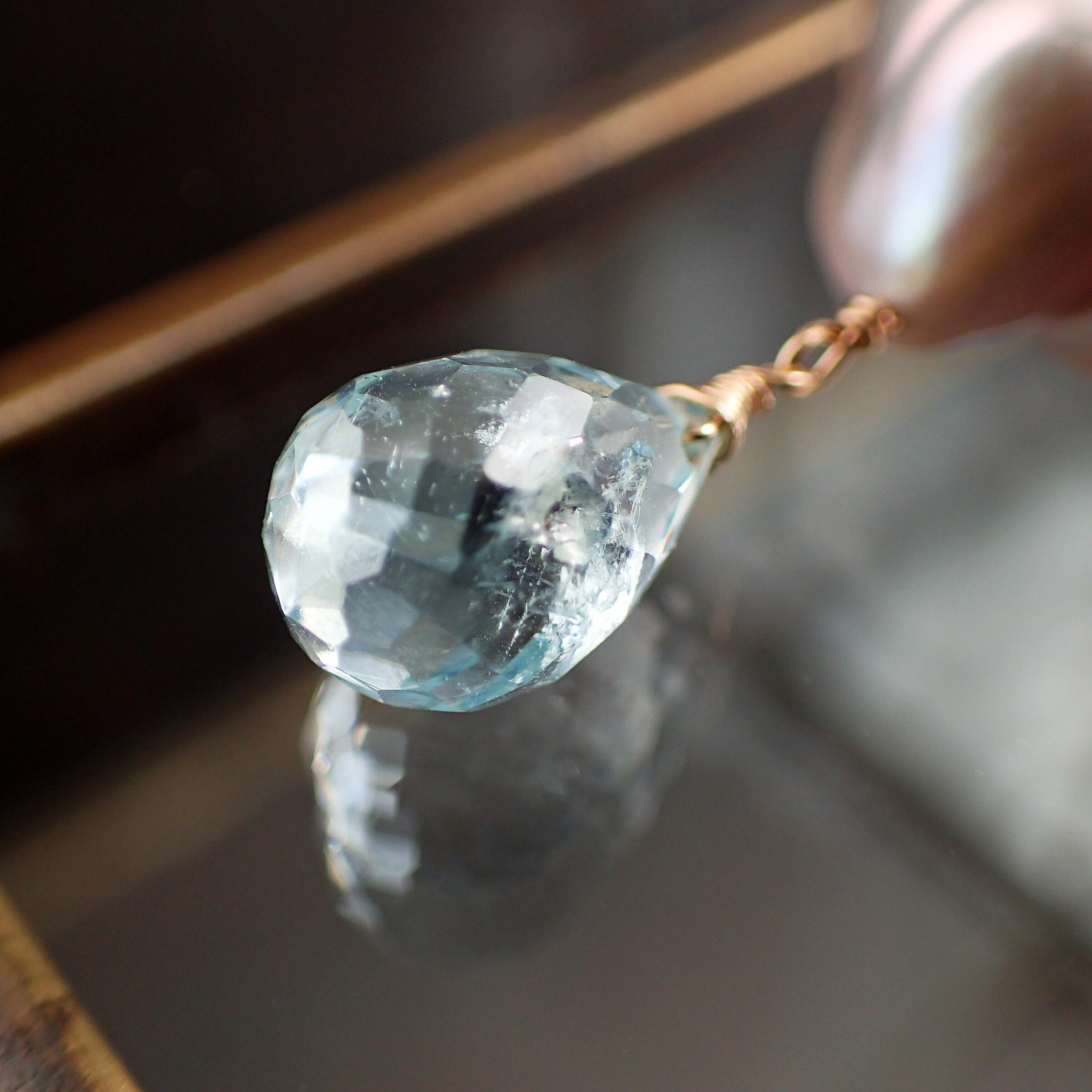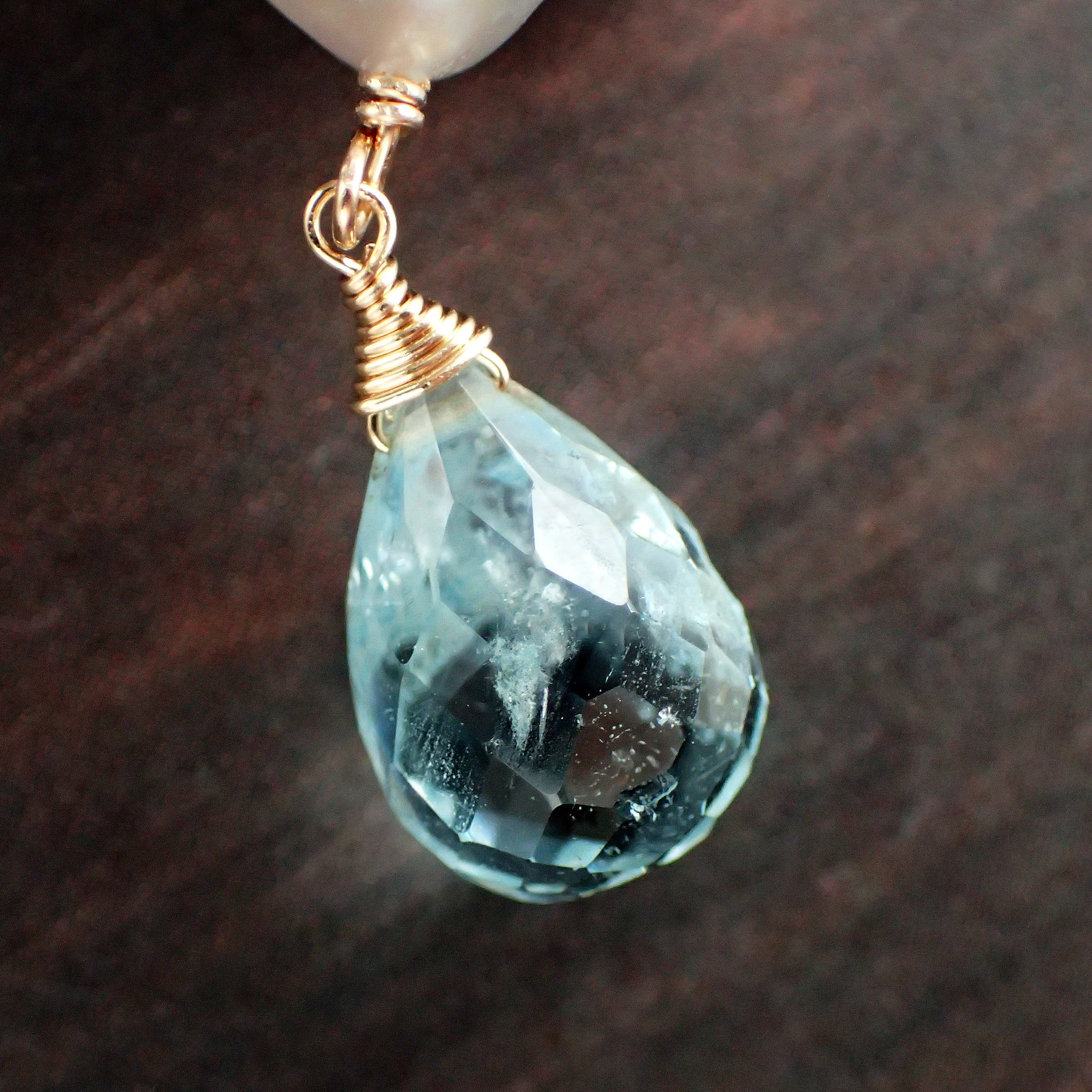 # 大粒バロックパール&アクアマリンのしずくネックレス