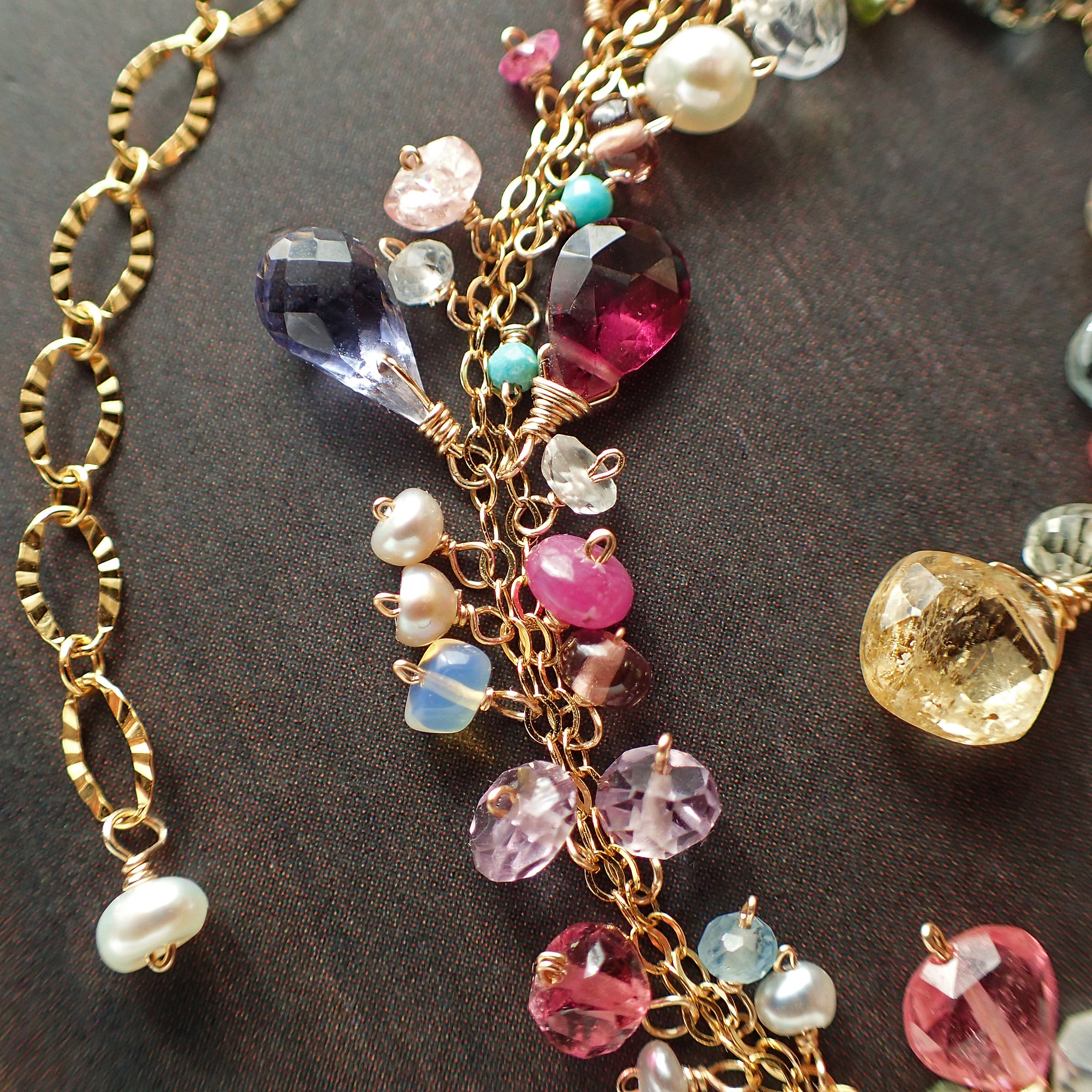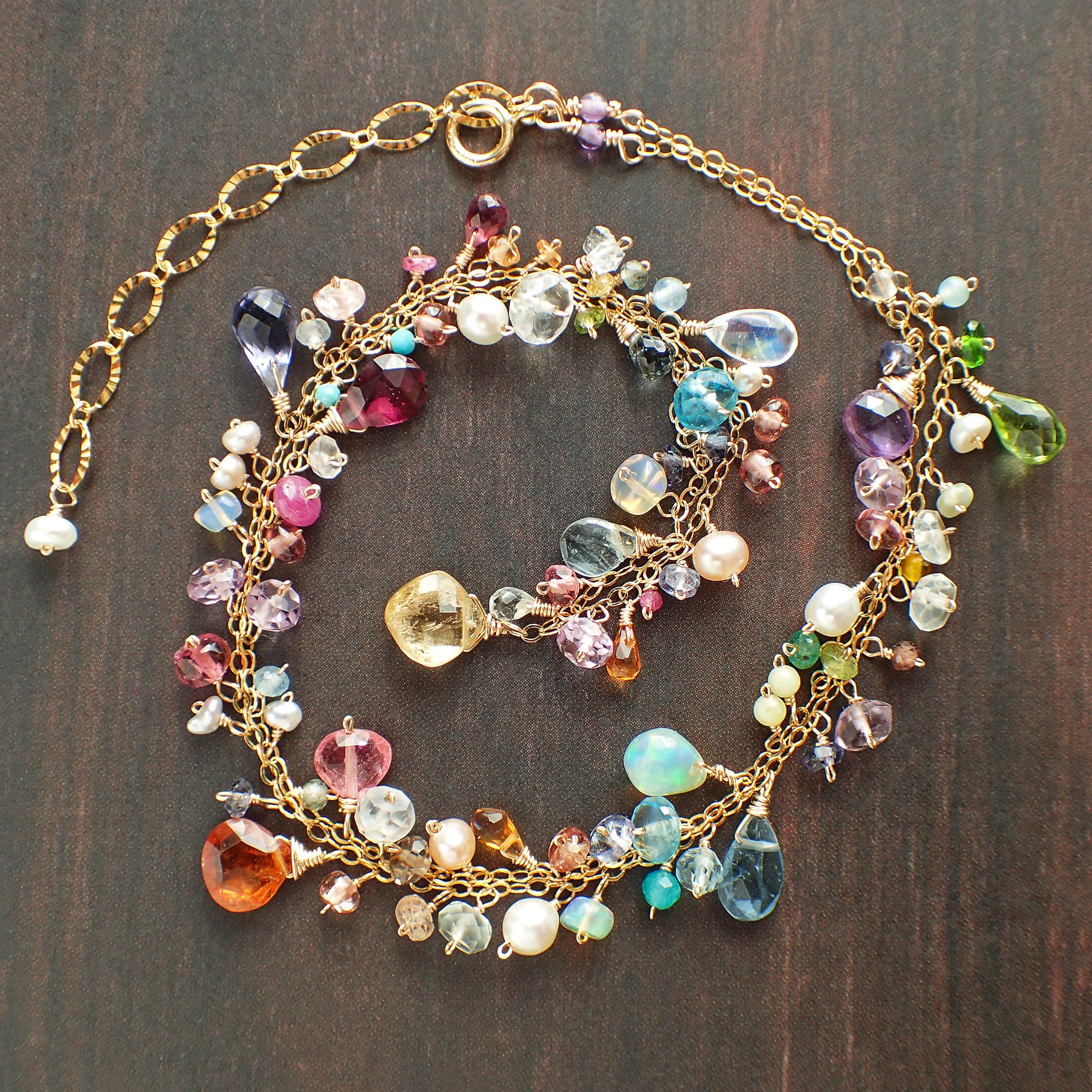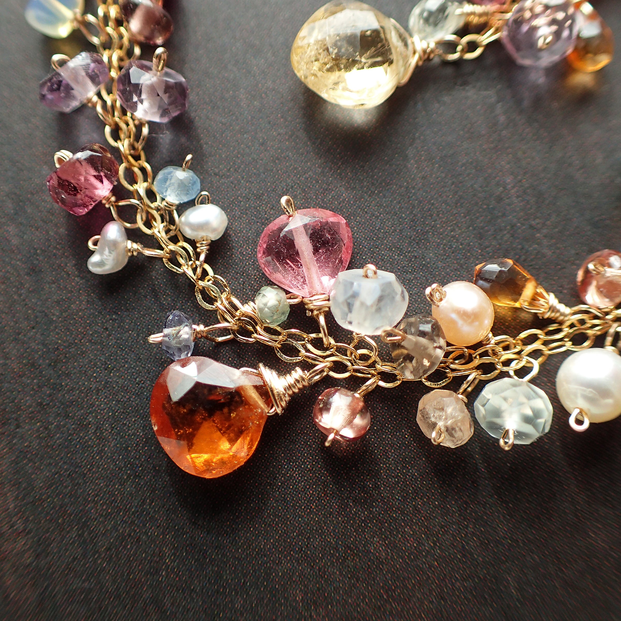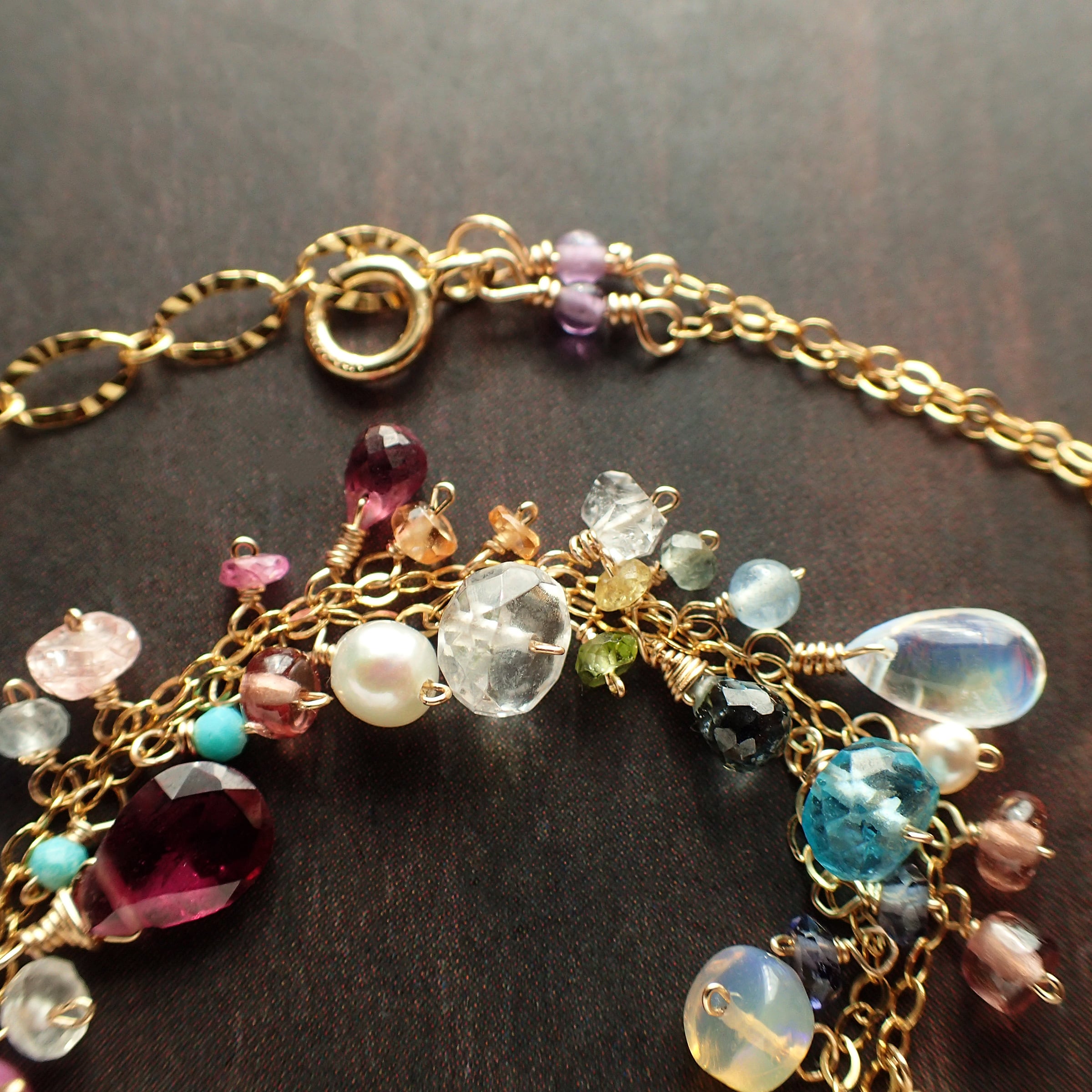 ピンクアメジスト・アパタイト・レモンストーン・グリーントルマリン・スモーキークウォーツ・水晶・ピンクトルマリン・アマゾナイト・マラヤガーネット・ムーンストーン・淡水パール・ローズクウォーツ・アイオライト・アメジスト・アクアマリン・ピンクスピネル・ガーネット・トルコ石(アリゾナ)・ブルージェード・ロードライトガーネット・ヘソナイトガーネット・シトリン・K14GF(チェーン、ワイヤー、パーツ全て)