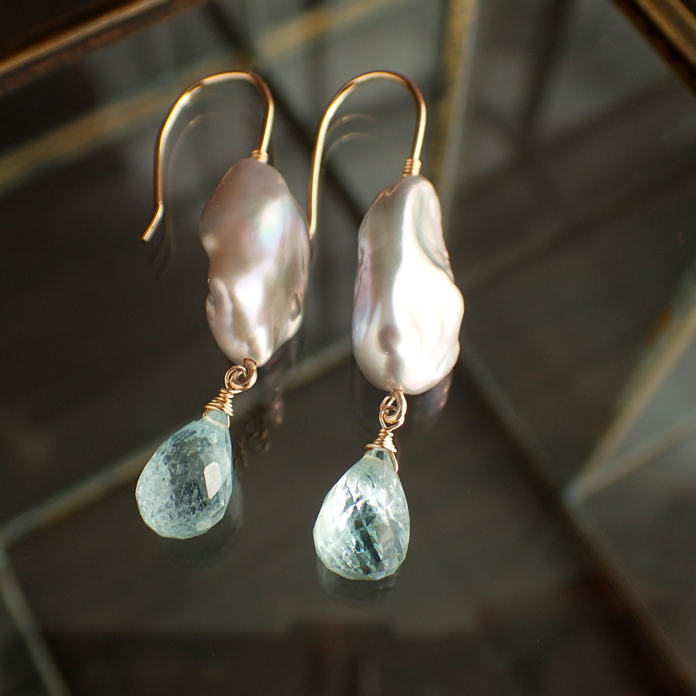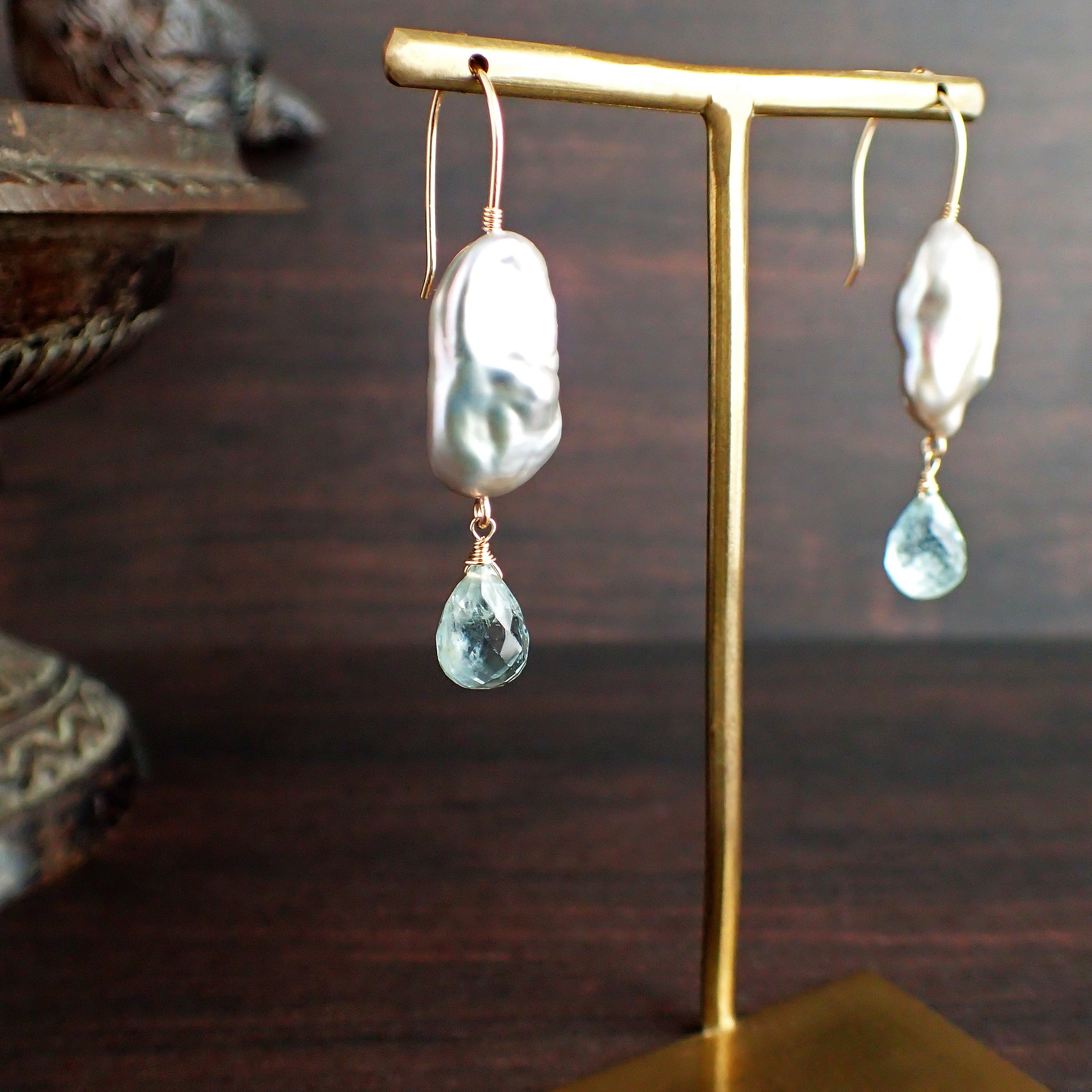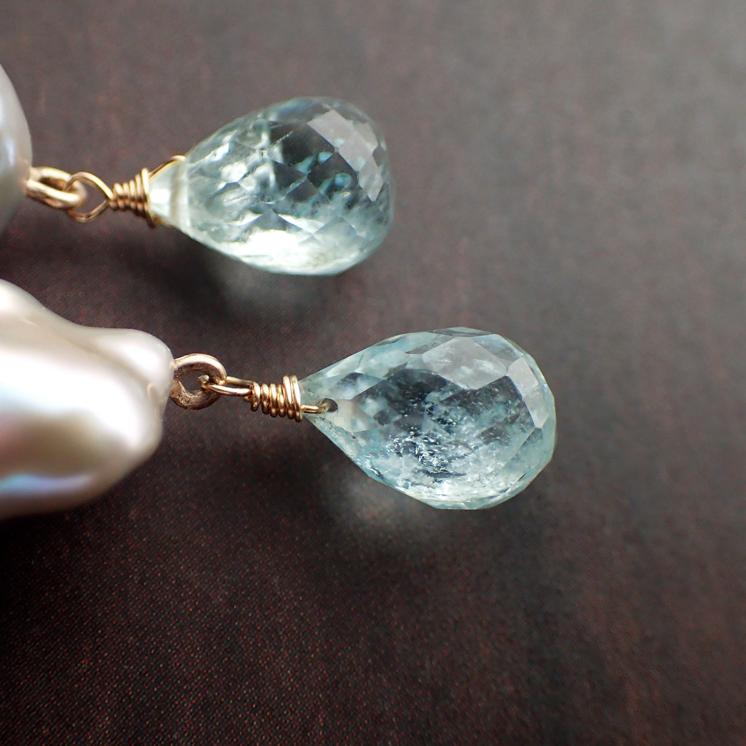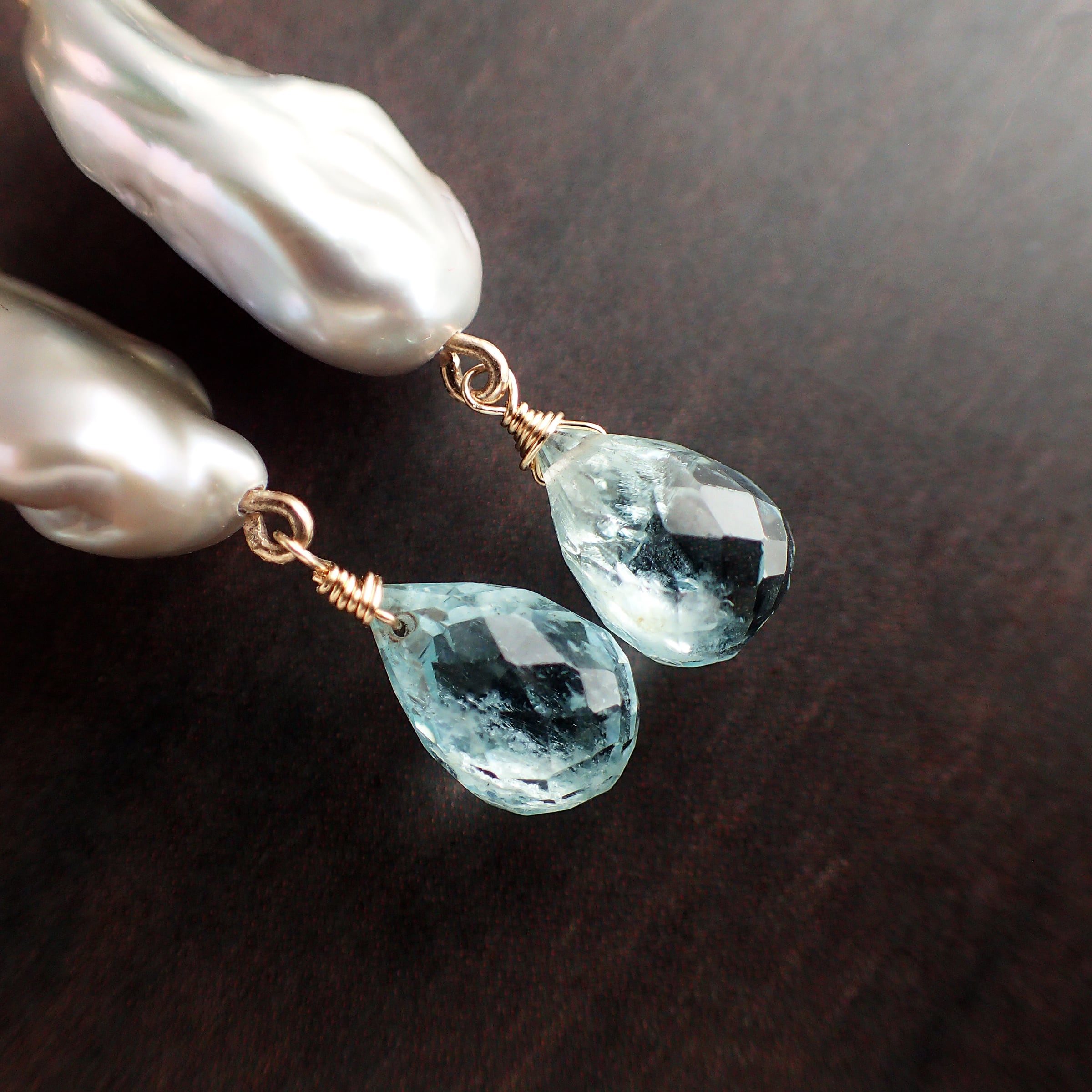 # バロックパール&ブリオレットカットのアクアマリンピアス