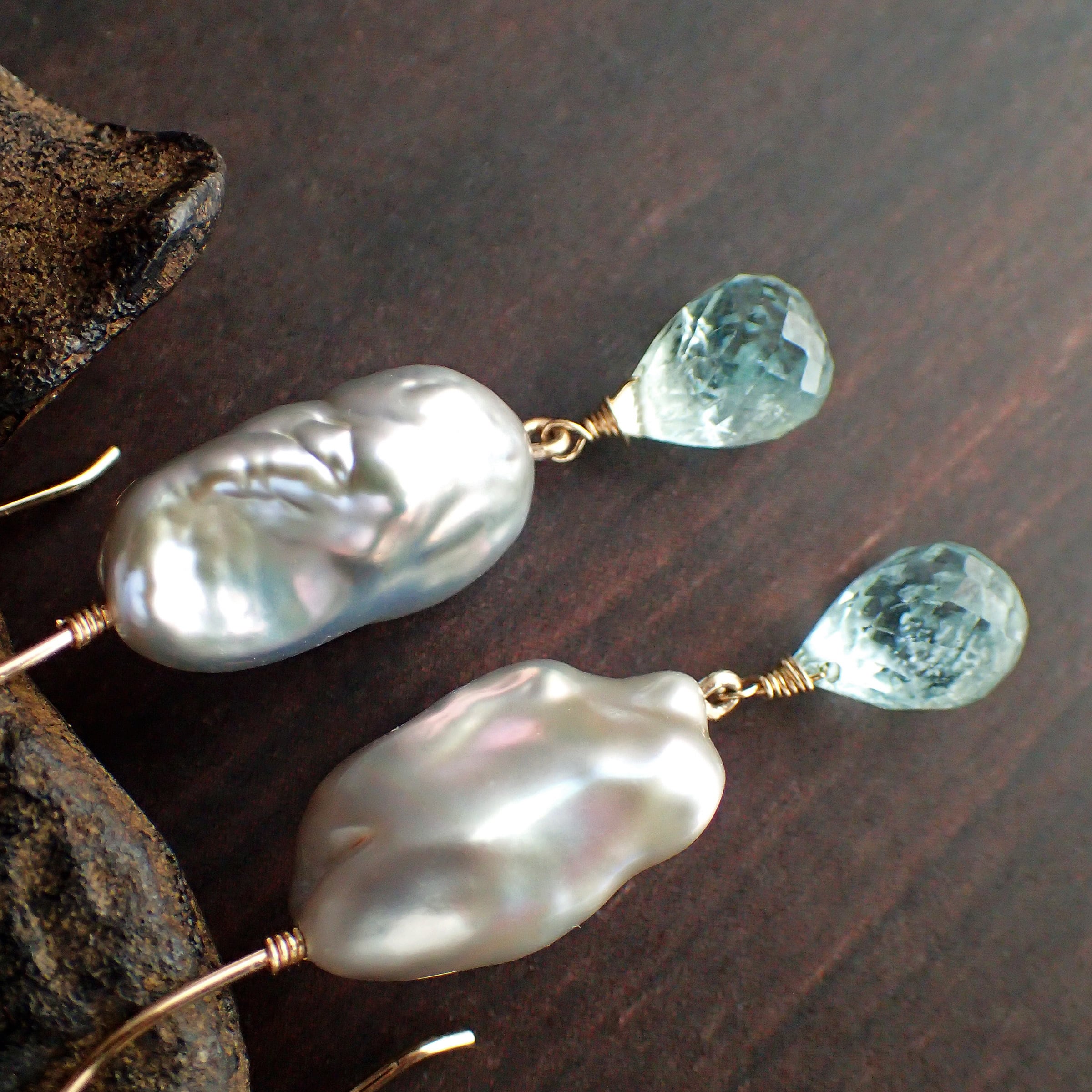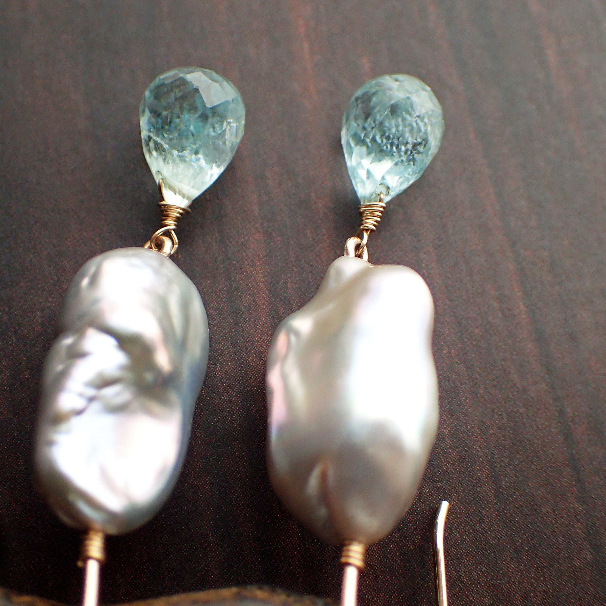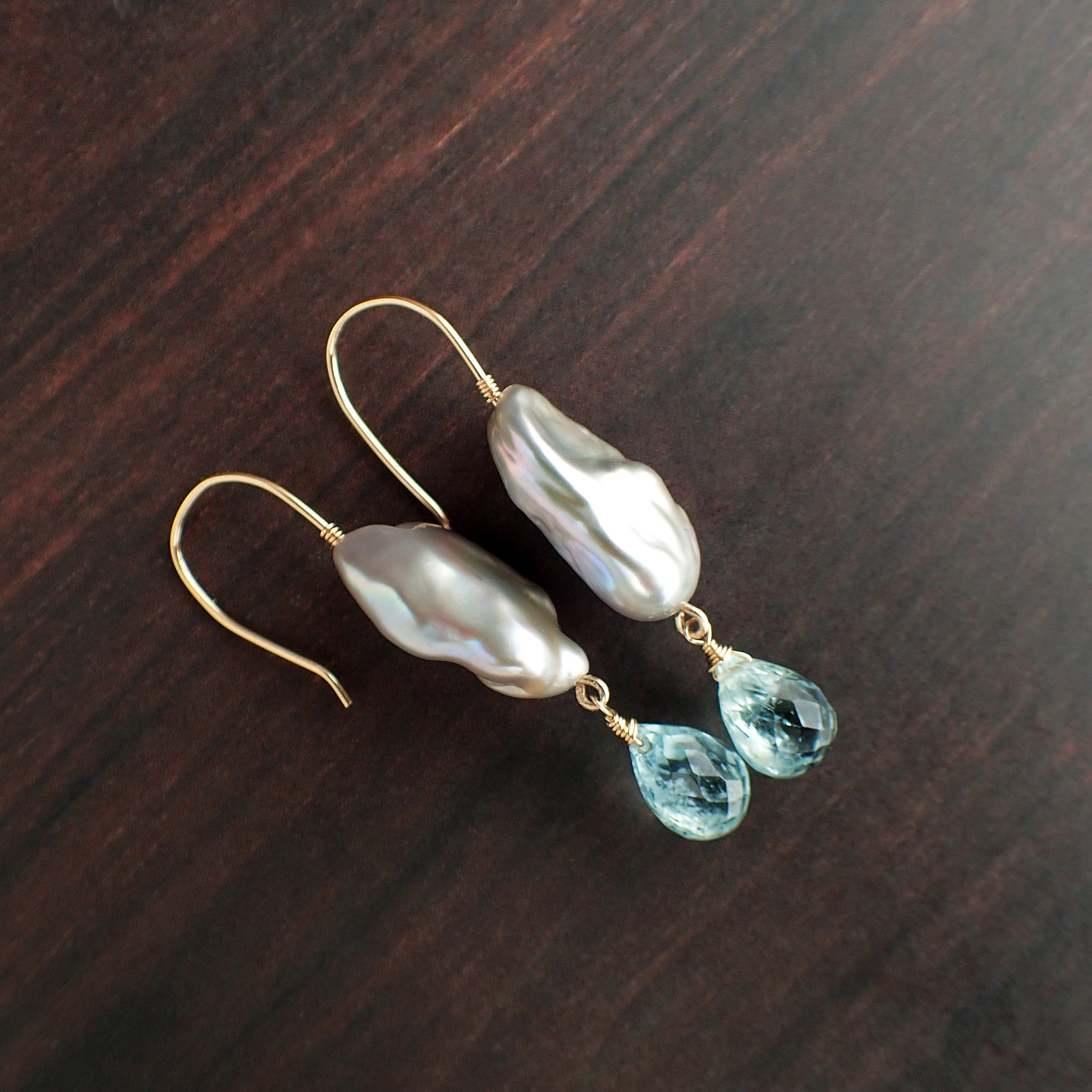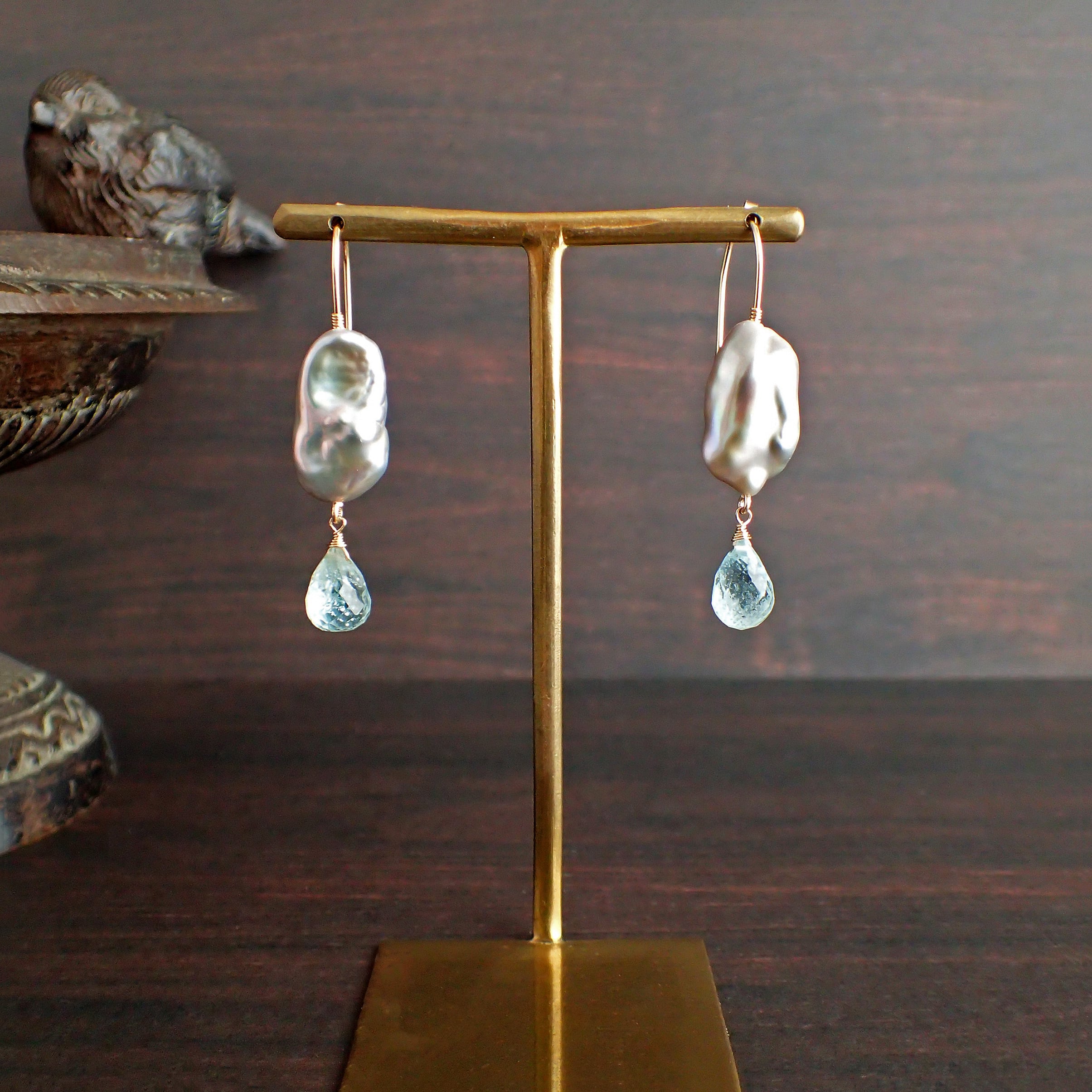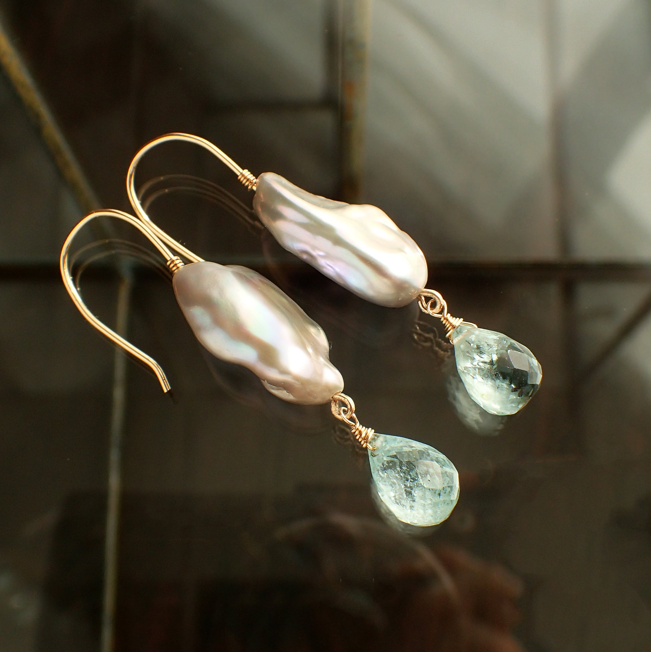 # バロックパール&ブリオレットカットのアクアマリンピアス