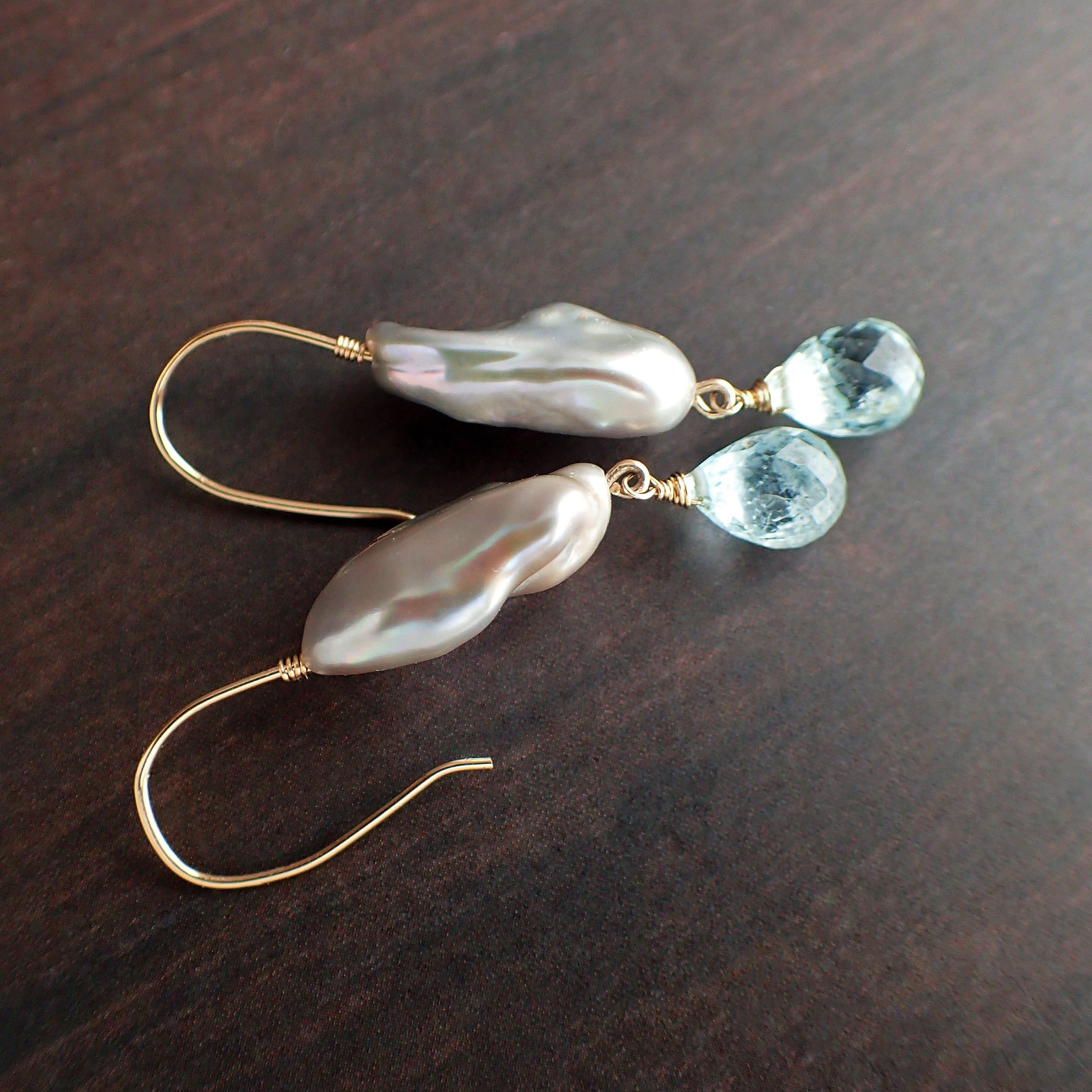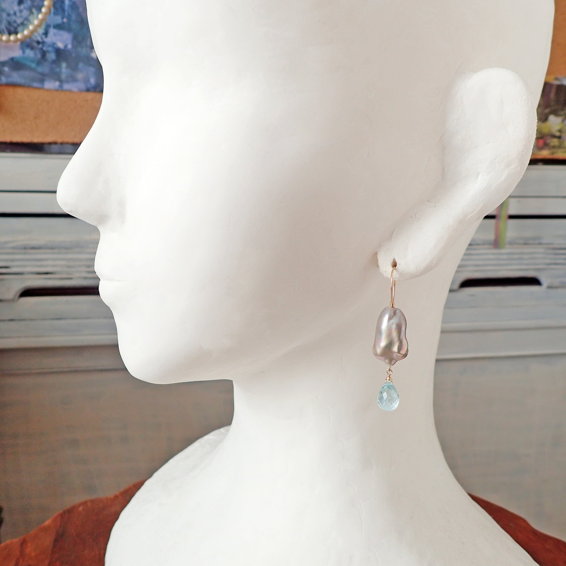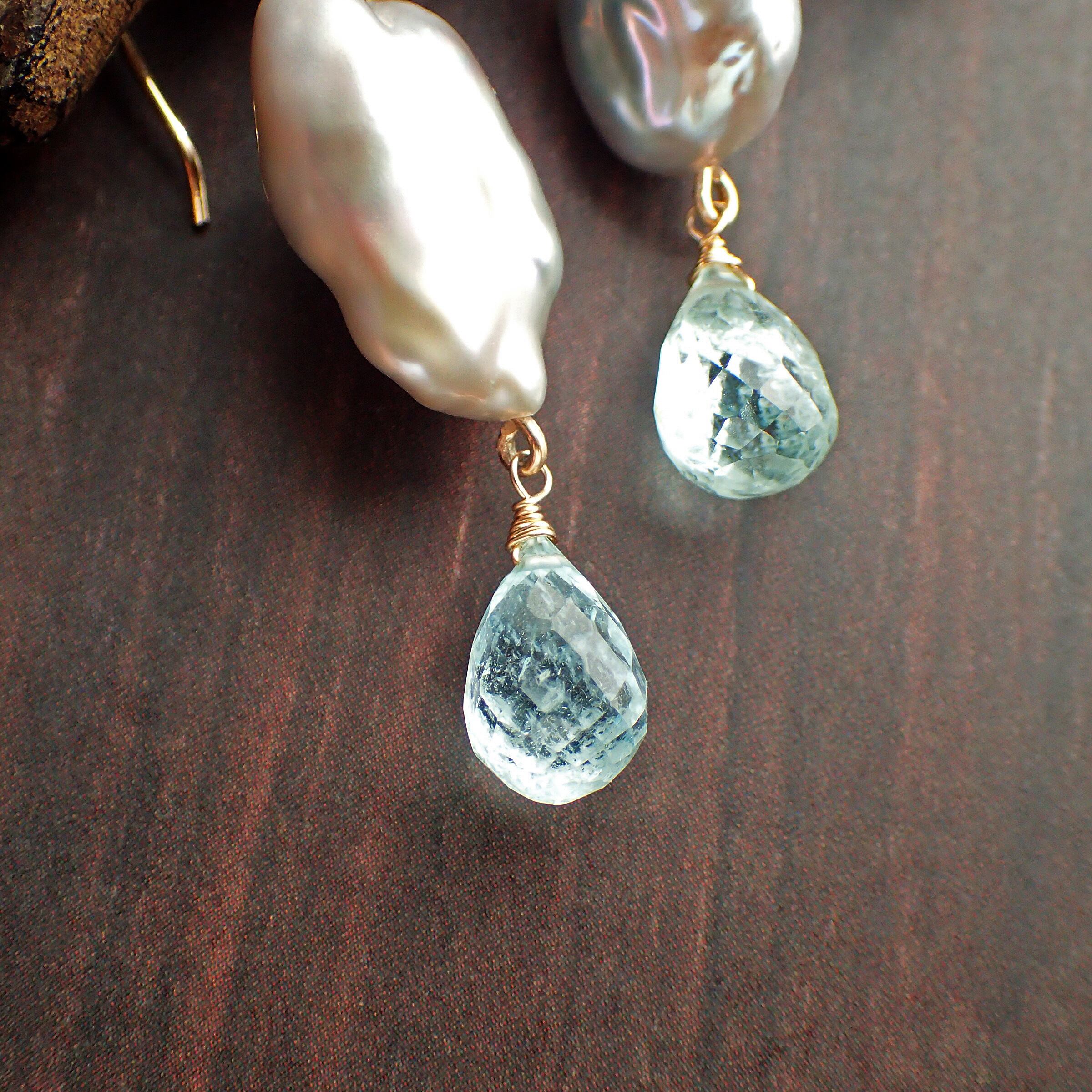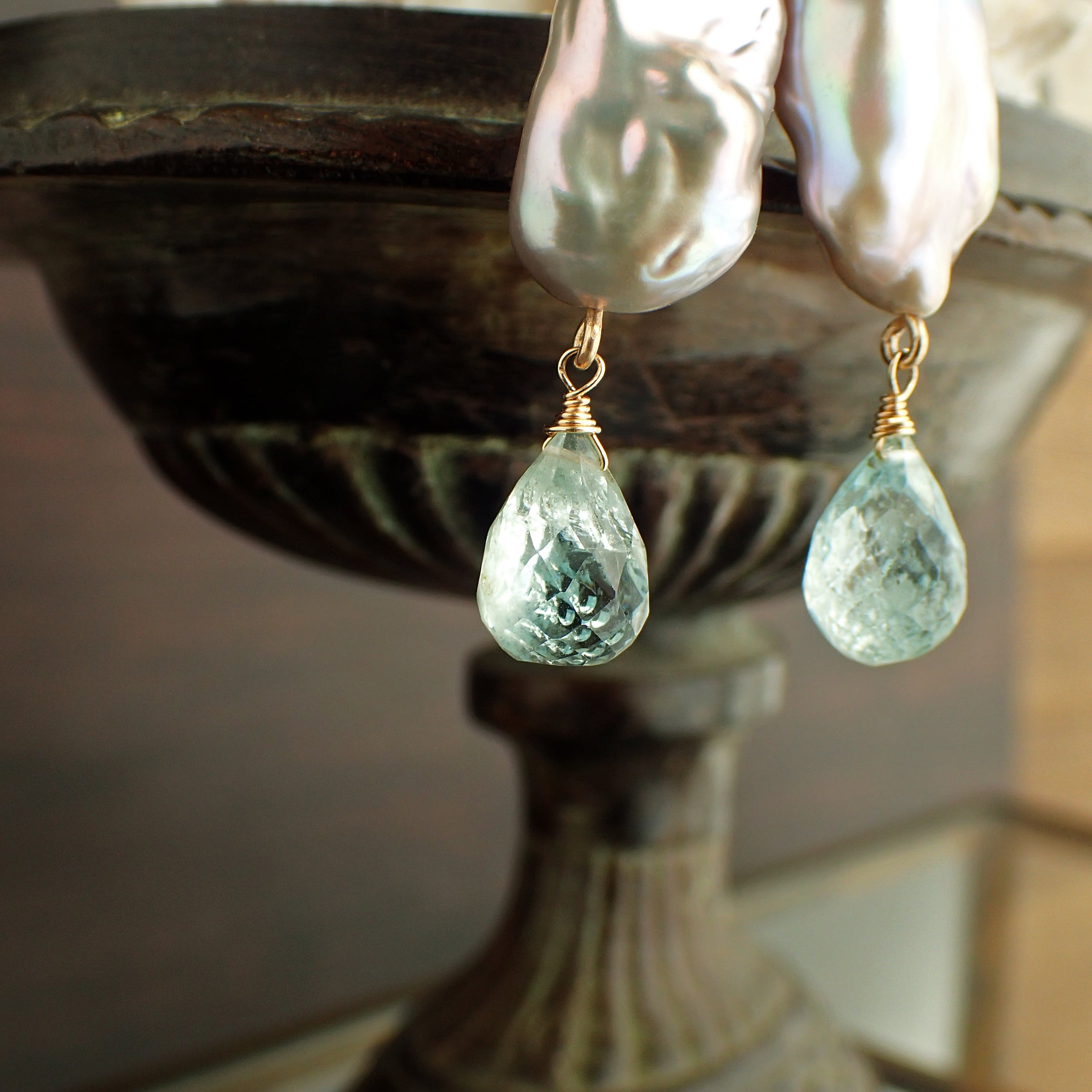 # バロックパール&ブリオレットカットのアクアマリンピアス