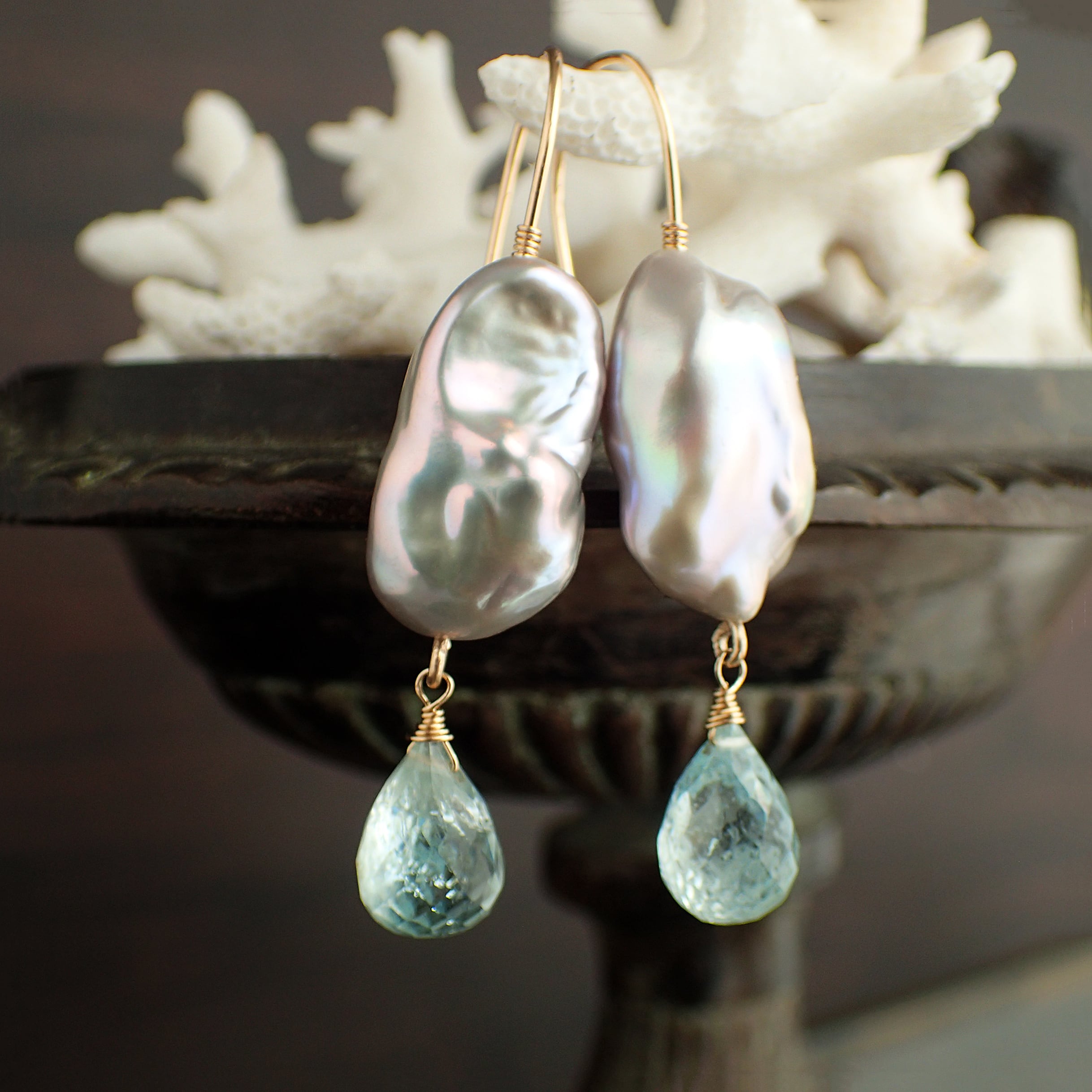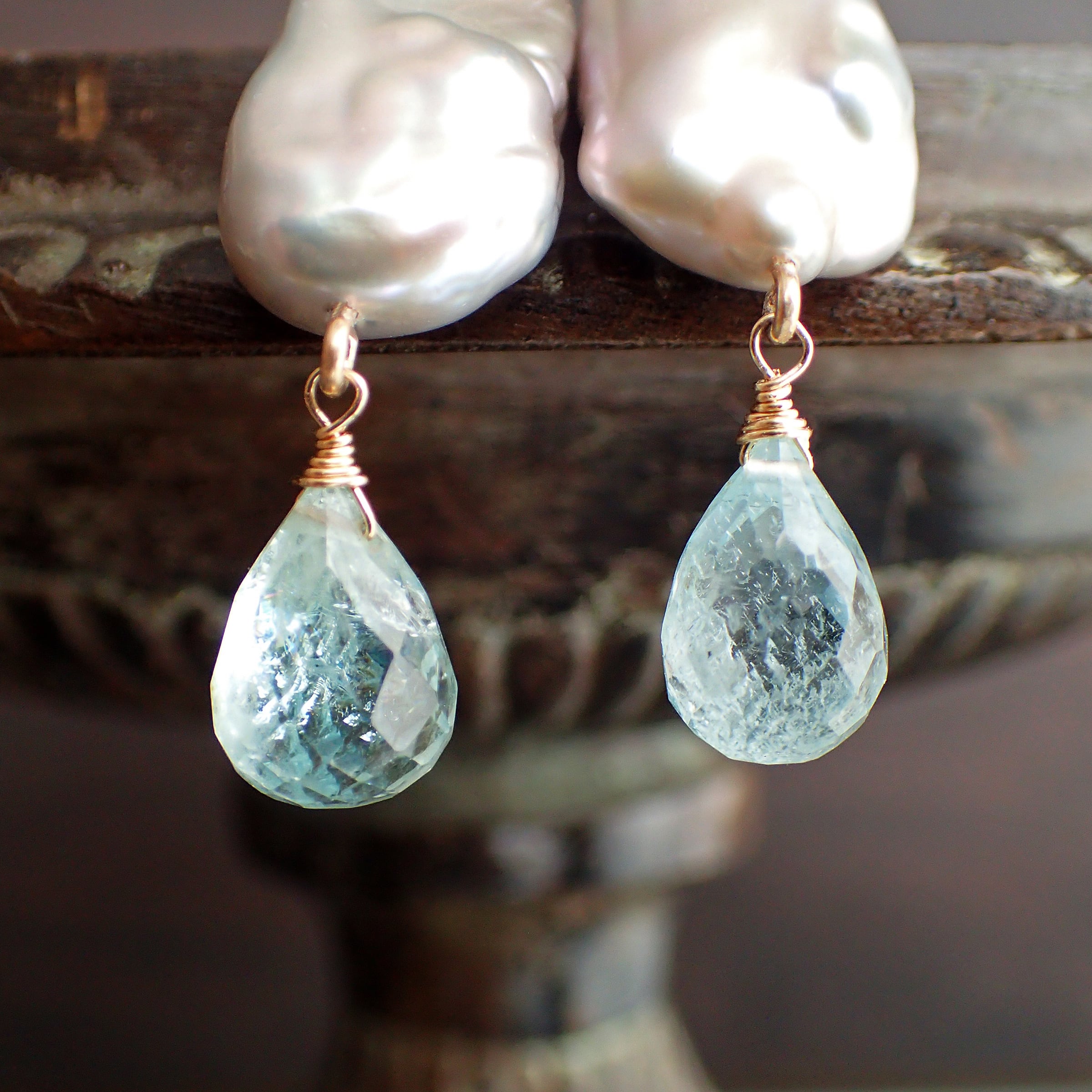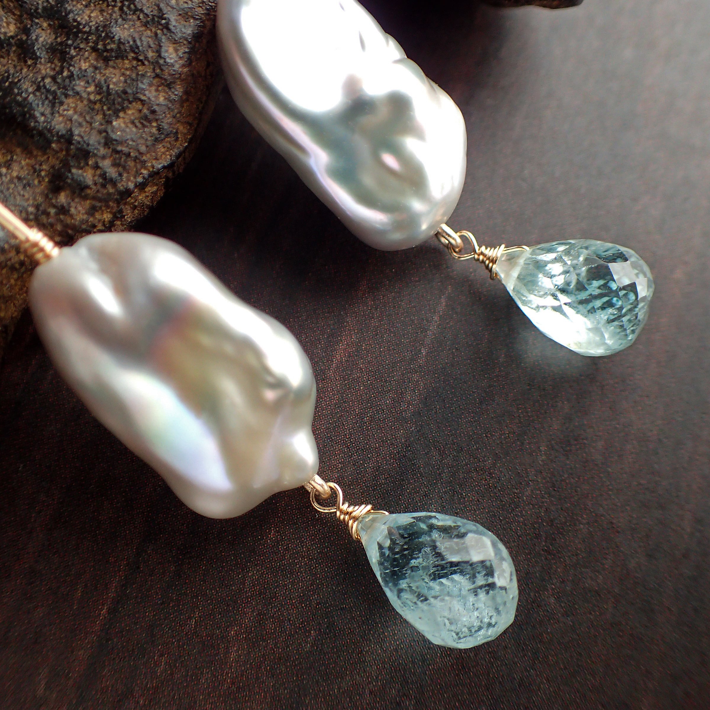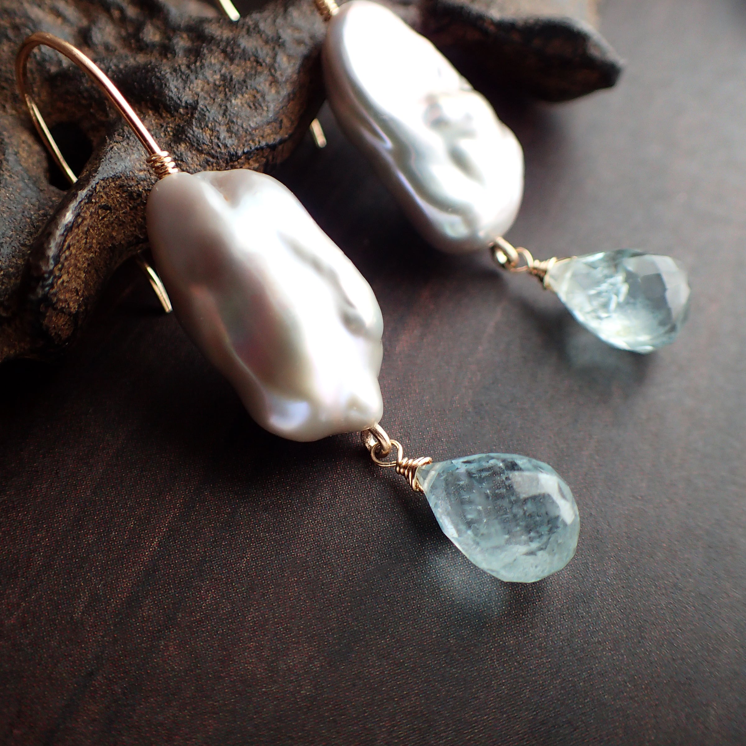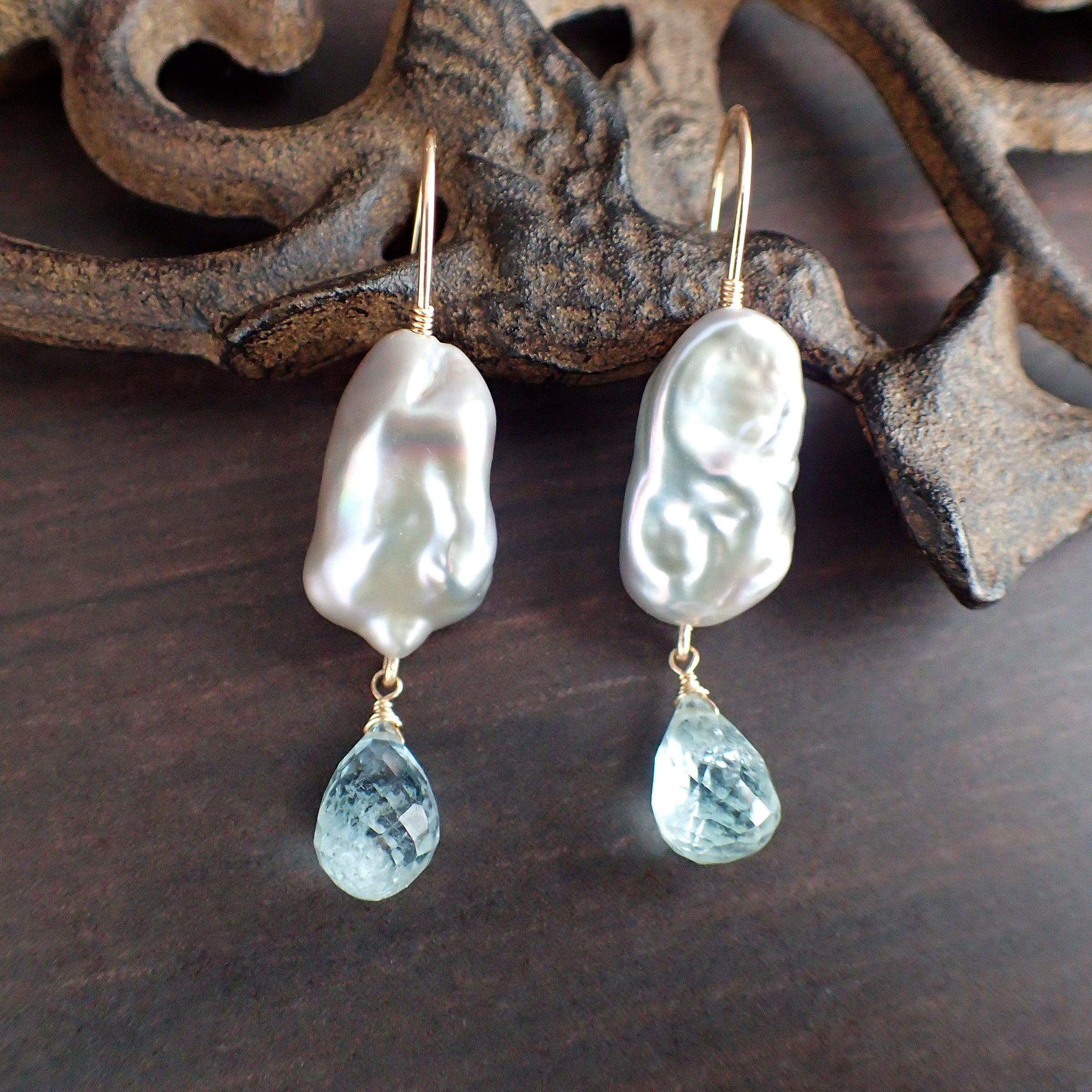 # バロックパール&ブリオレットカットのアクアマリンピアス