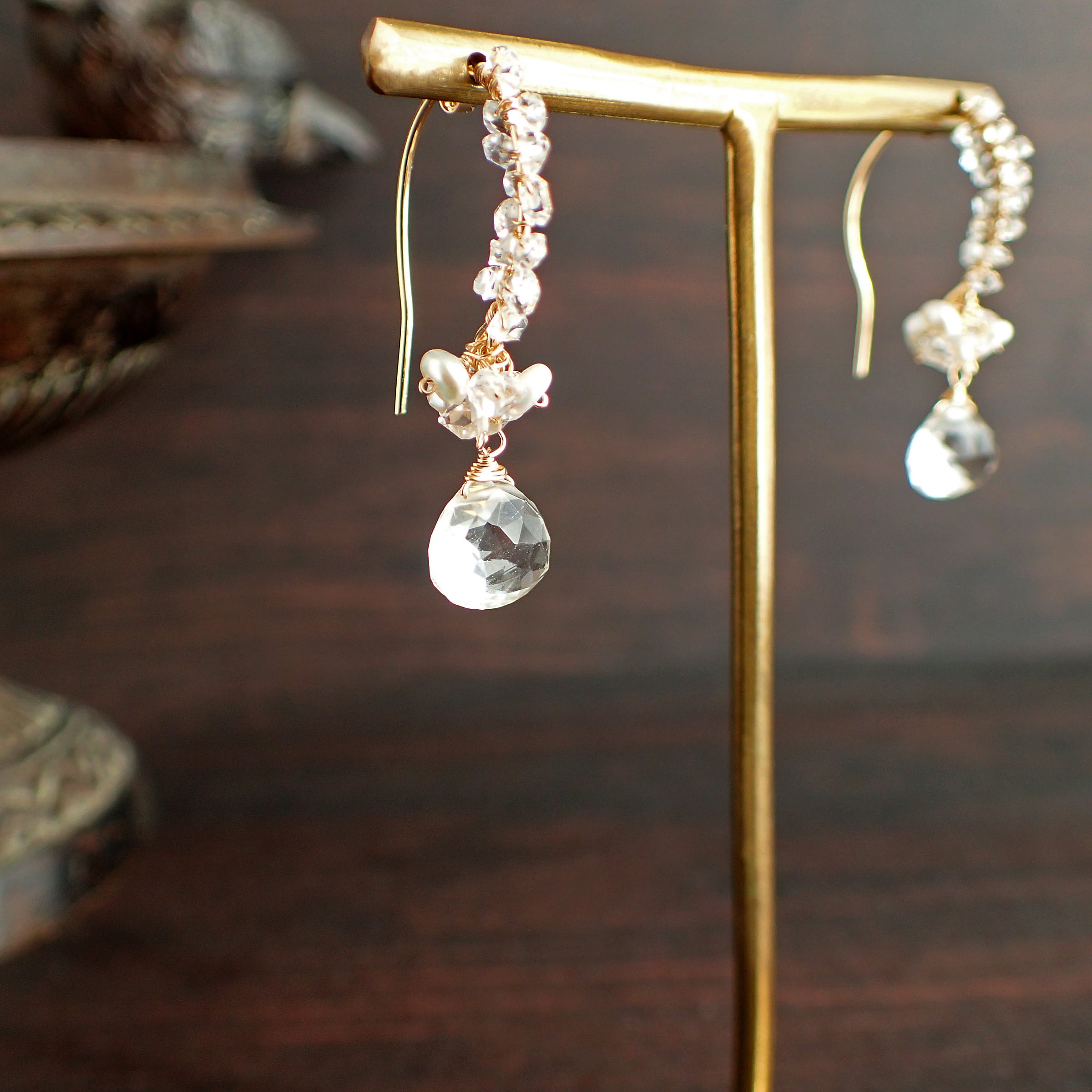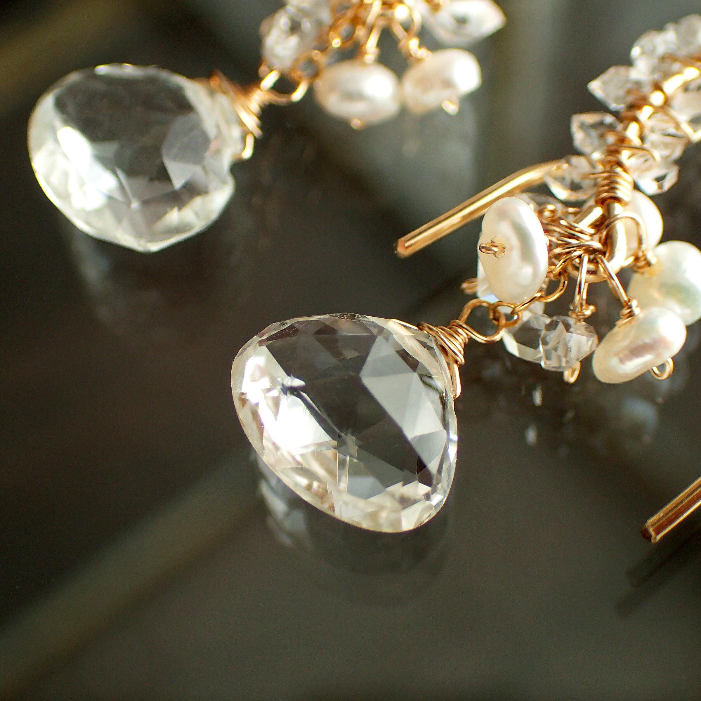 Water fairy earrings( Aquamarine & Herkimer diamond)