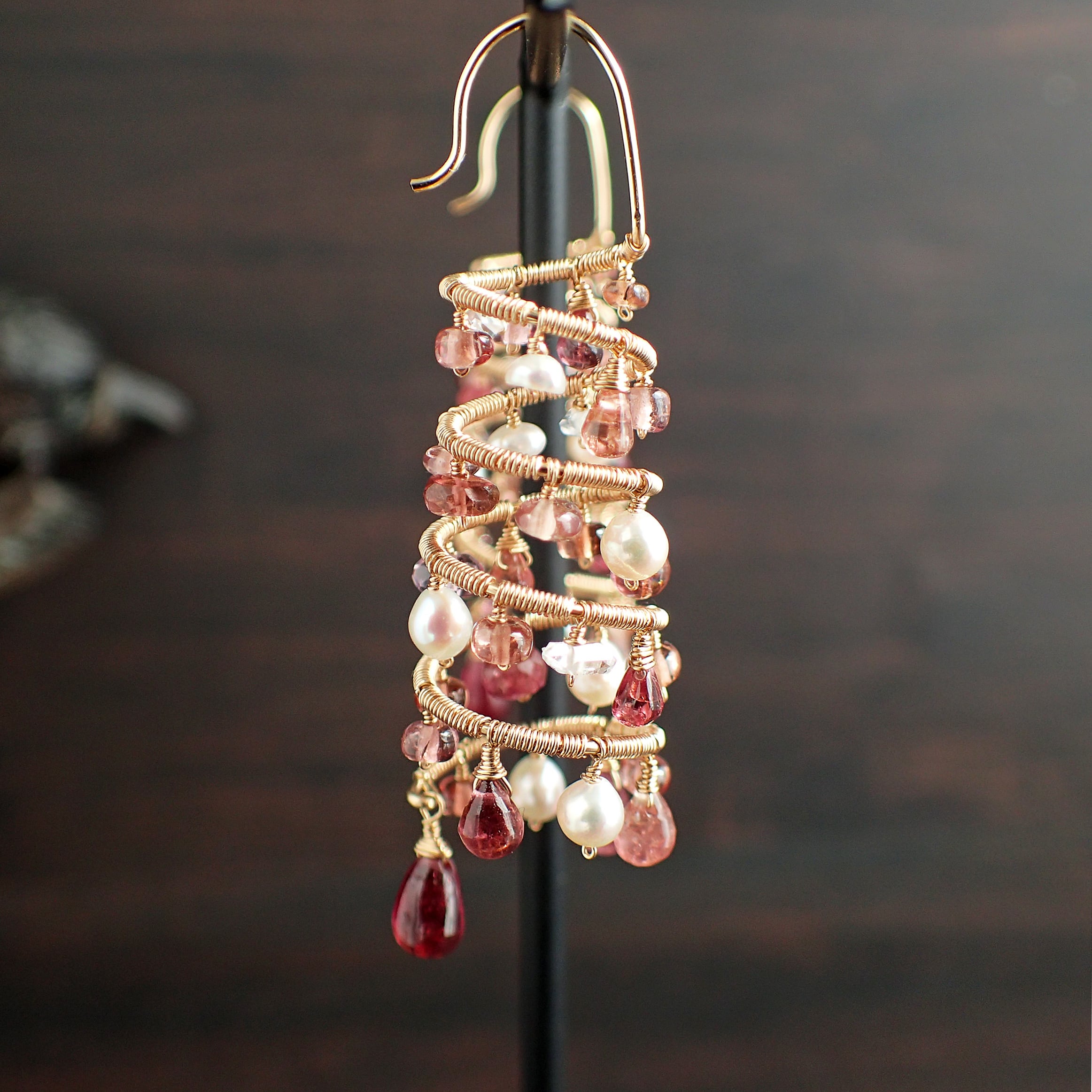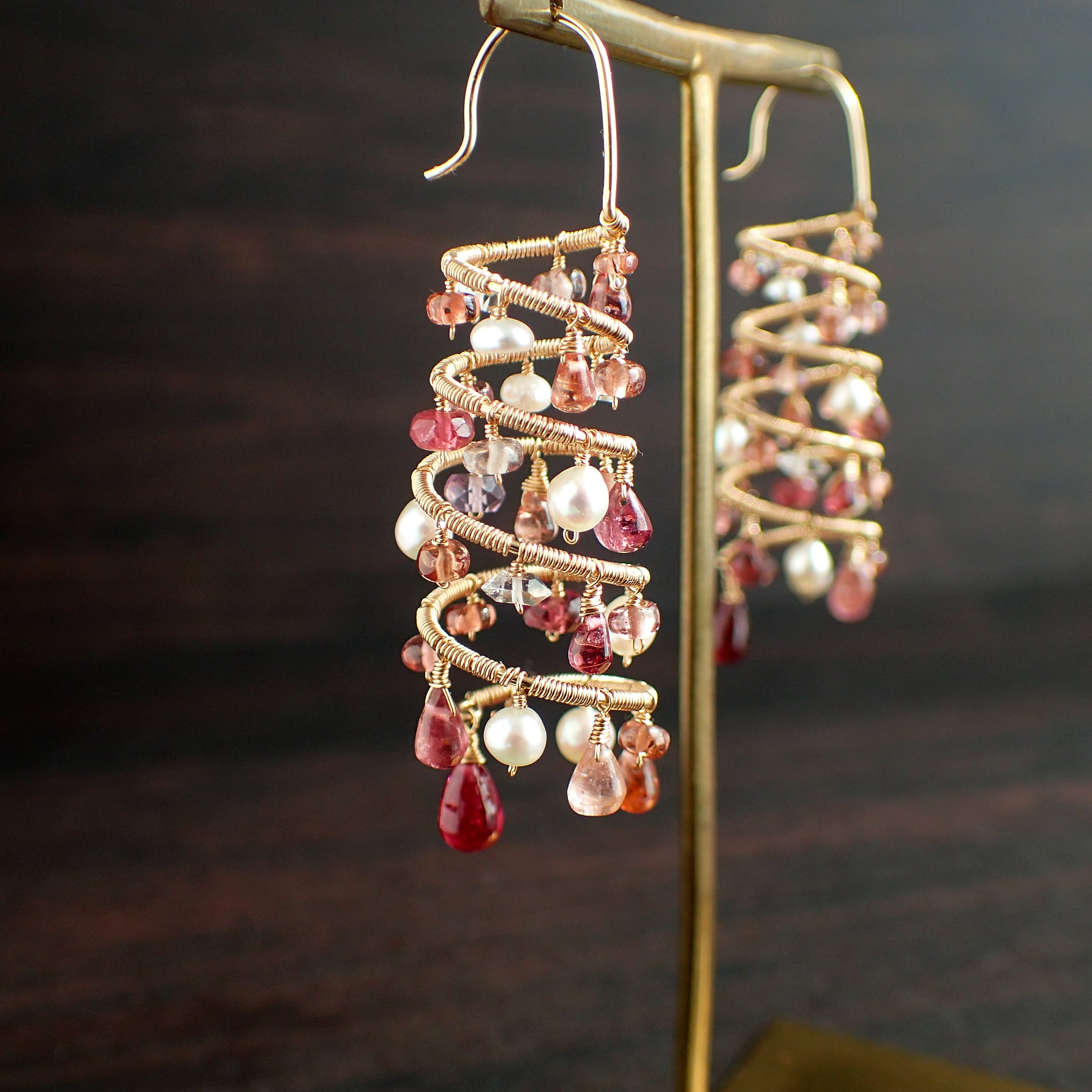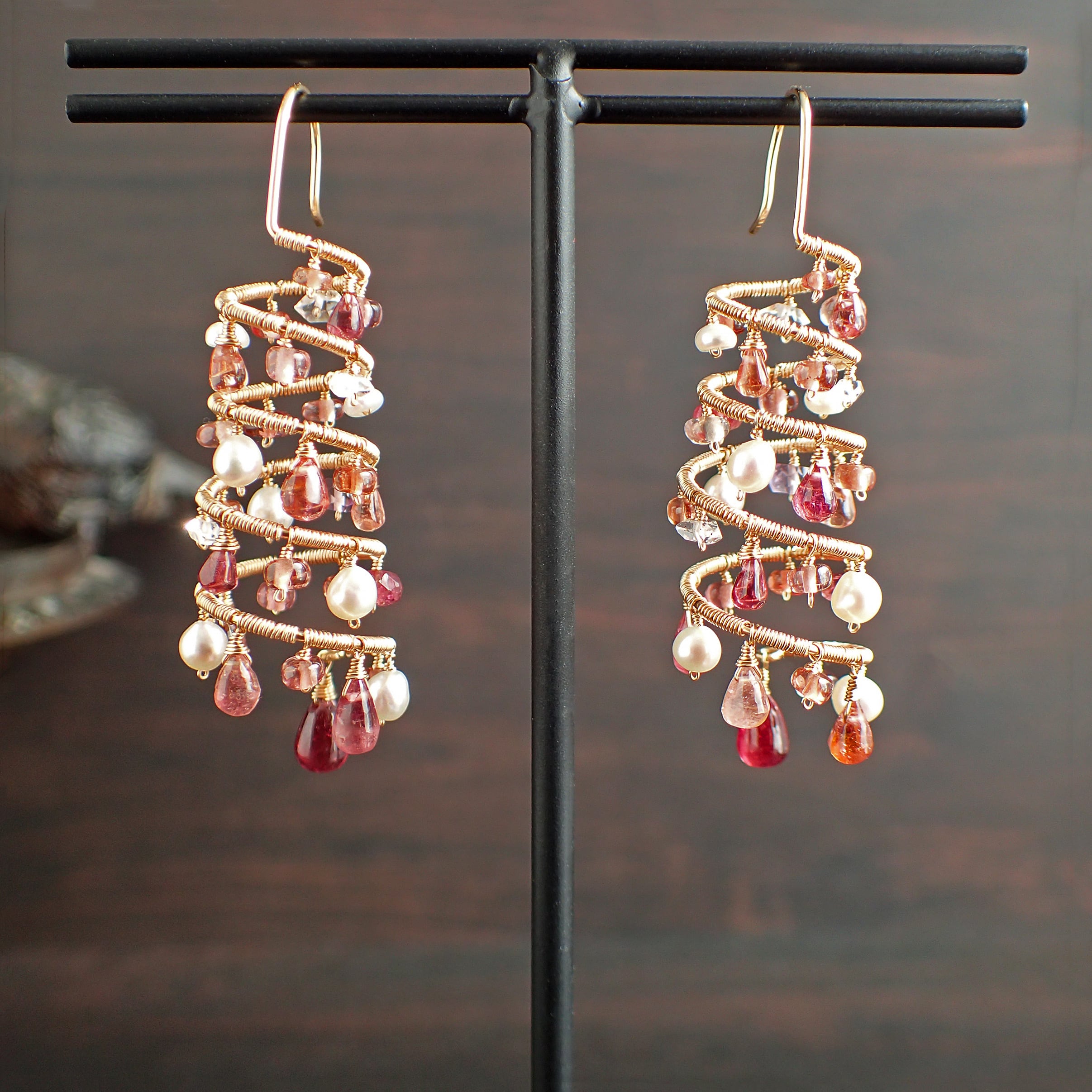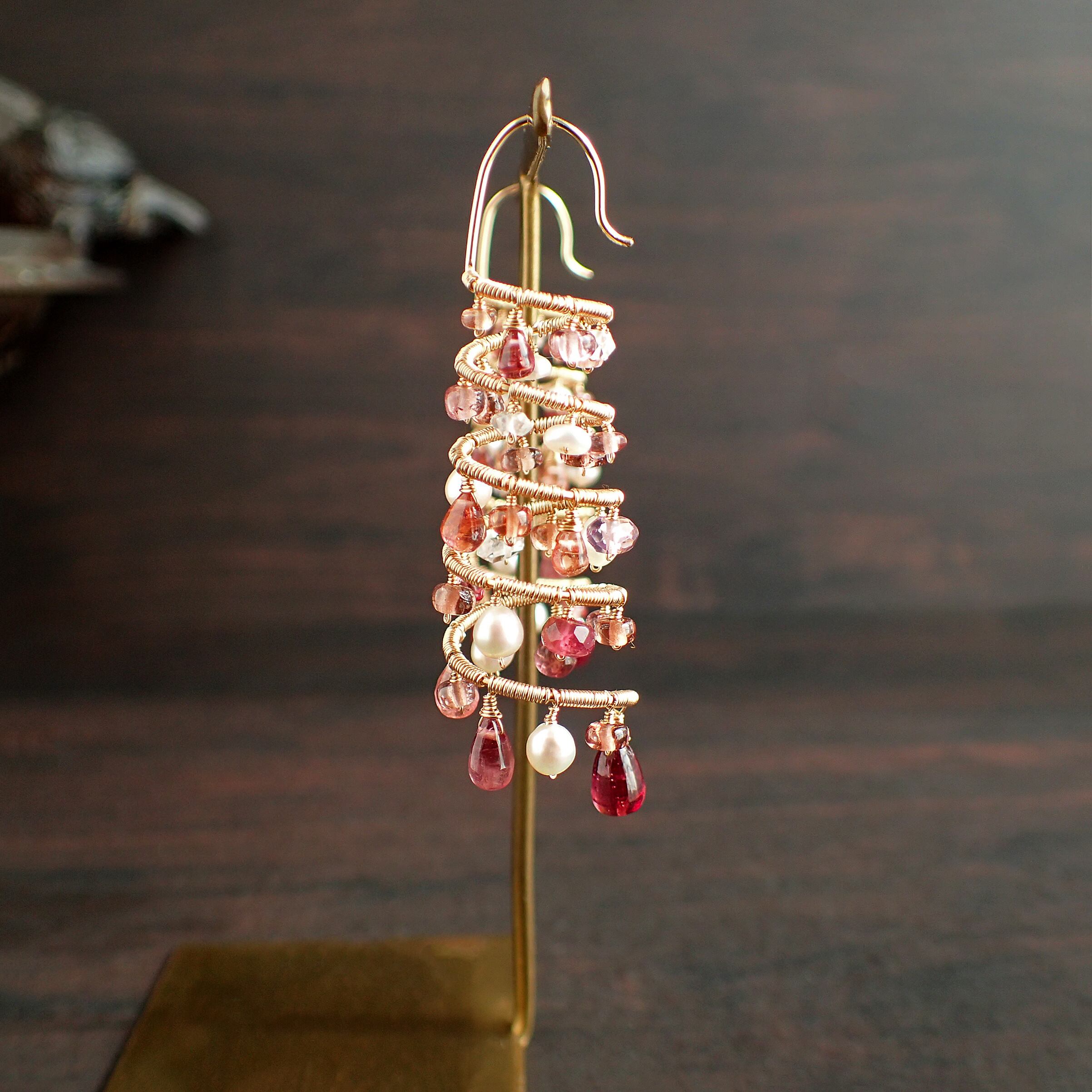 ピンクトルマリン、スピネル、マラヤガーネット、淡水パール、K14GF(ワイヤー、チェーン、パーツすべて)