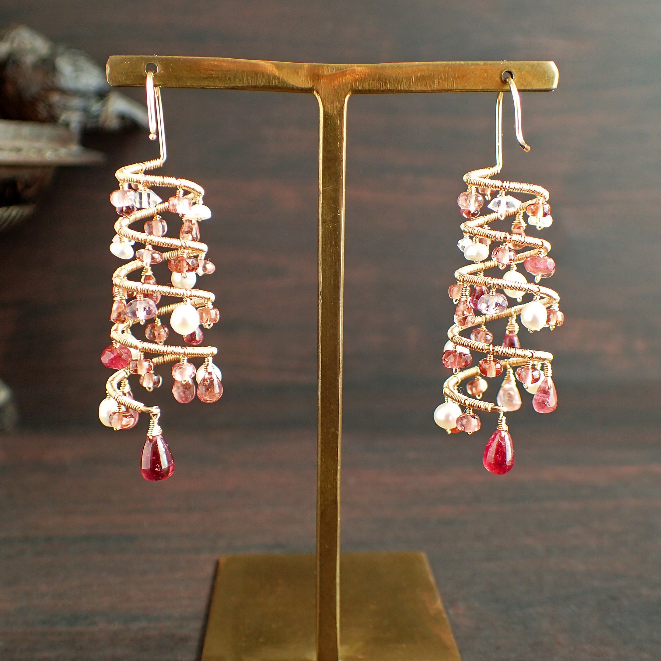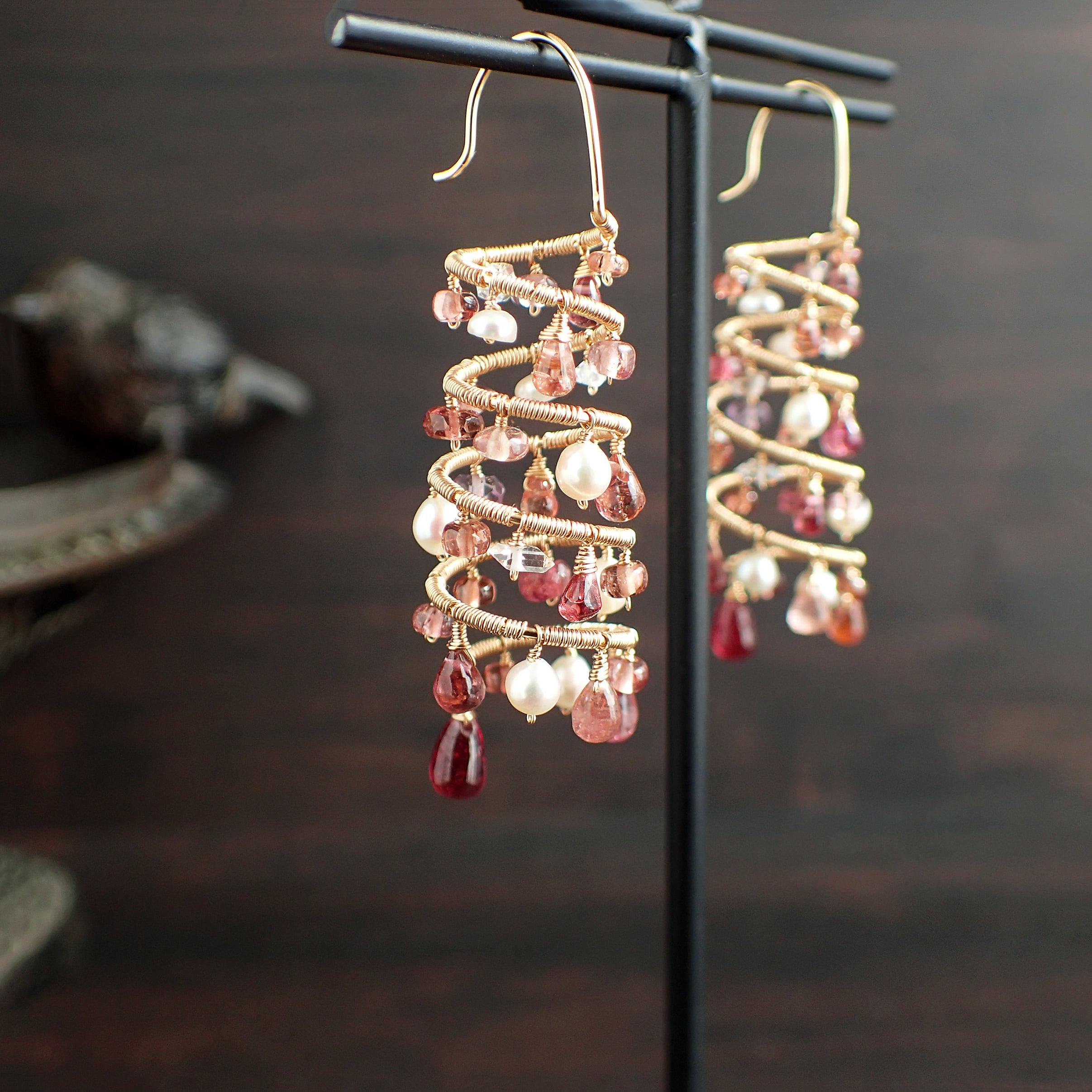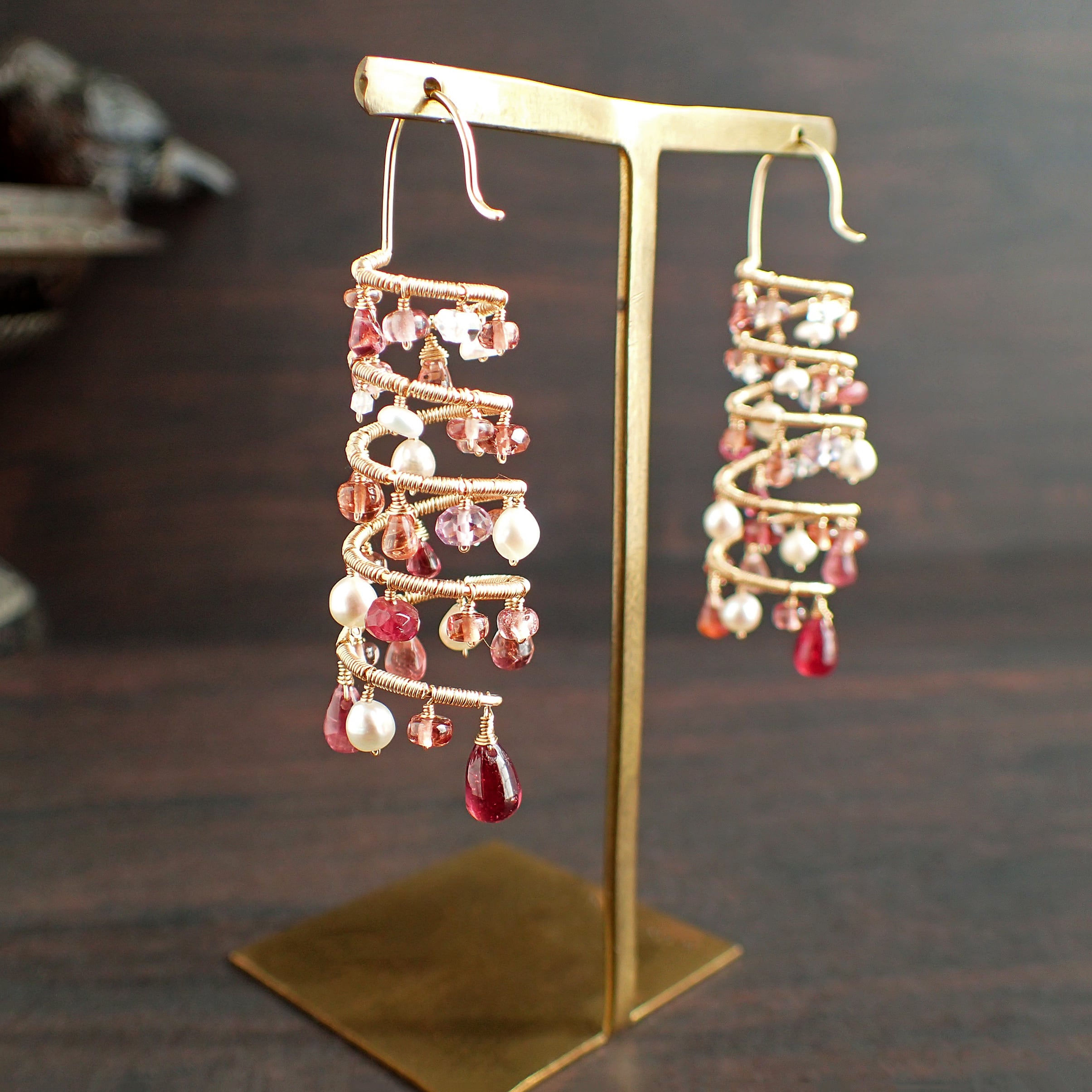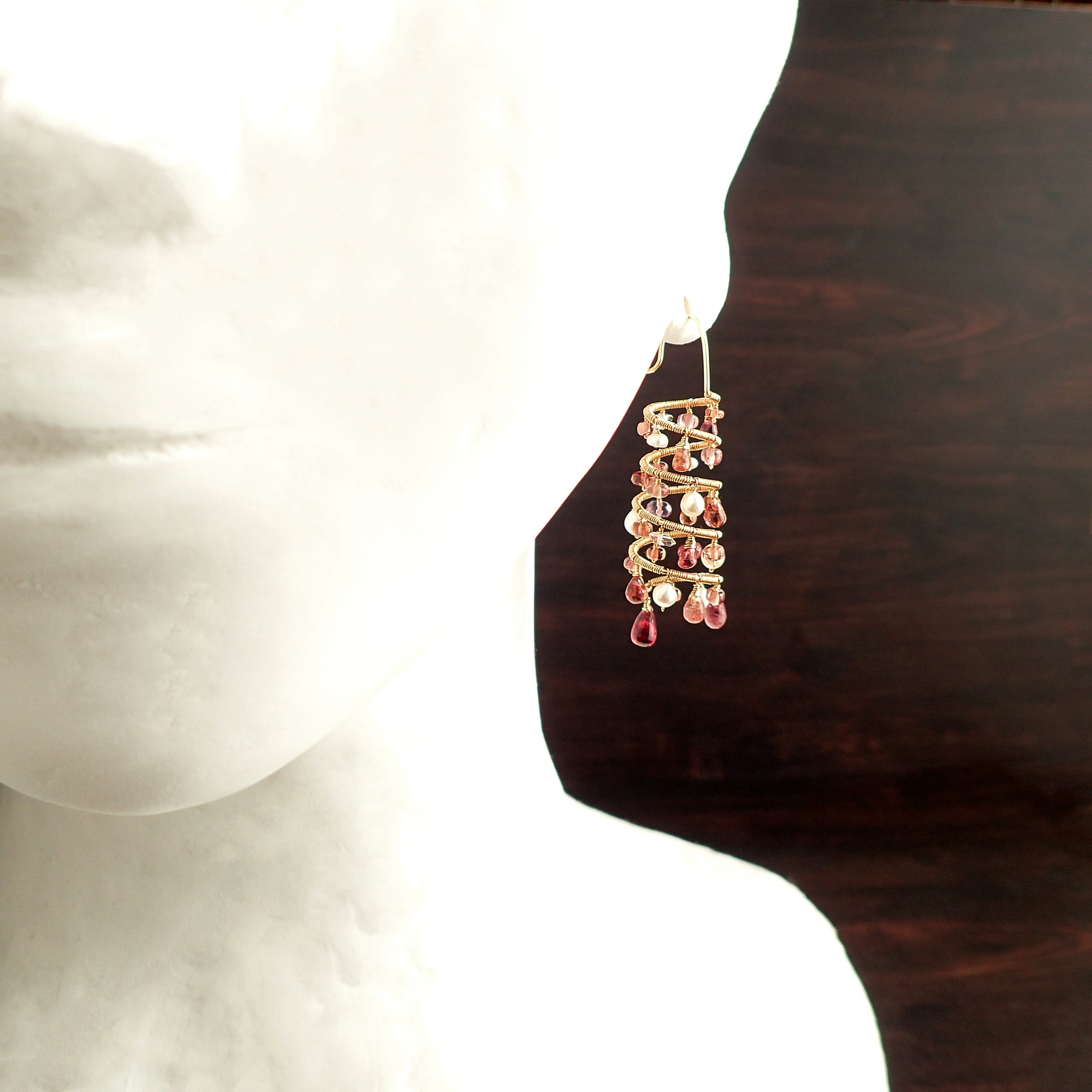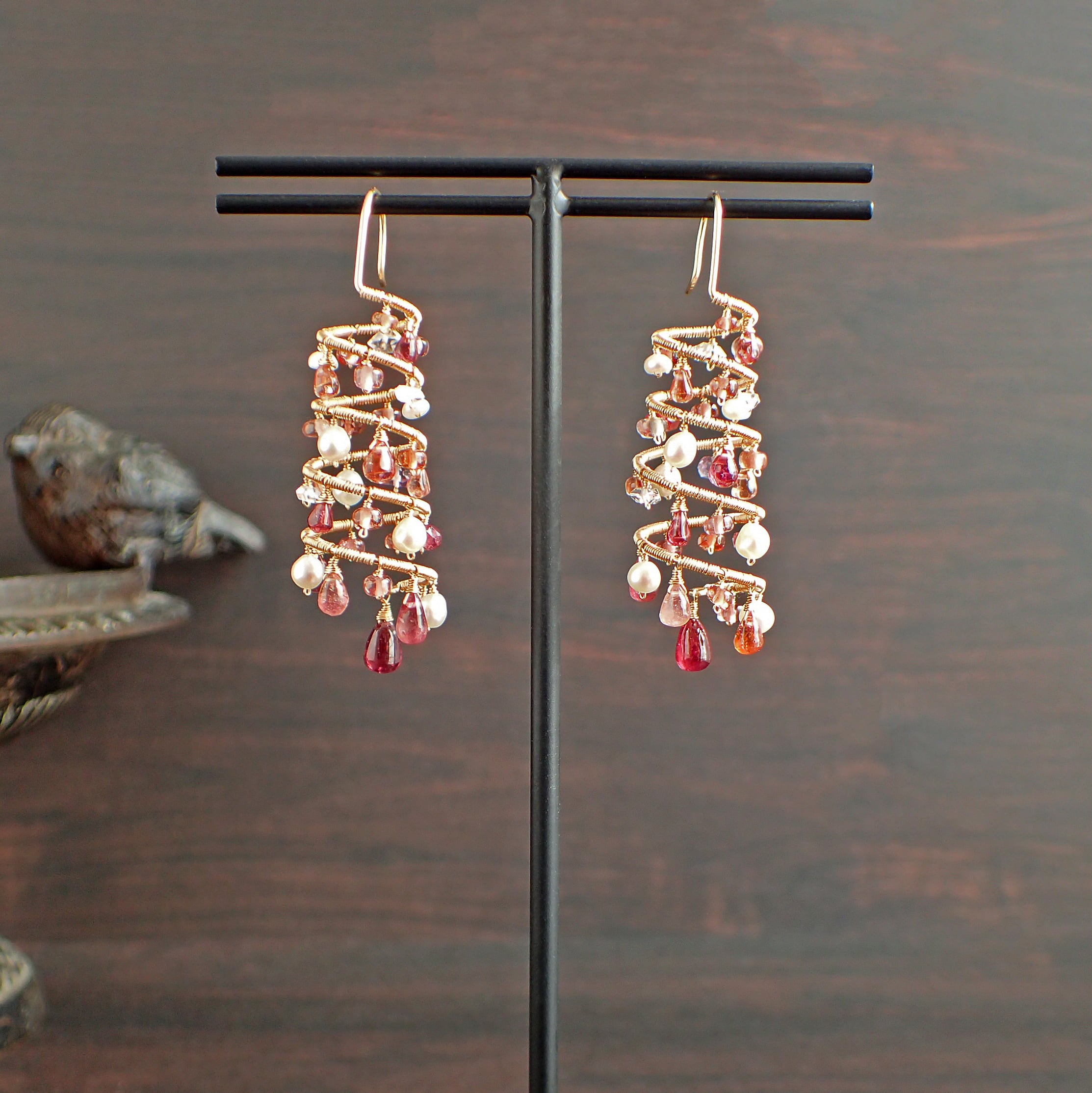 ピンクトルマリン、スピネル、マラヤガーネット、淡水パール、K14GF(ワイヤー、チェーン、パーツすべて)