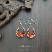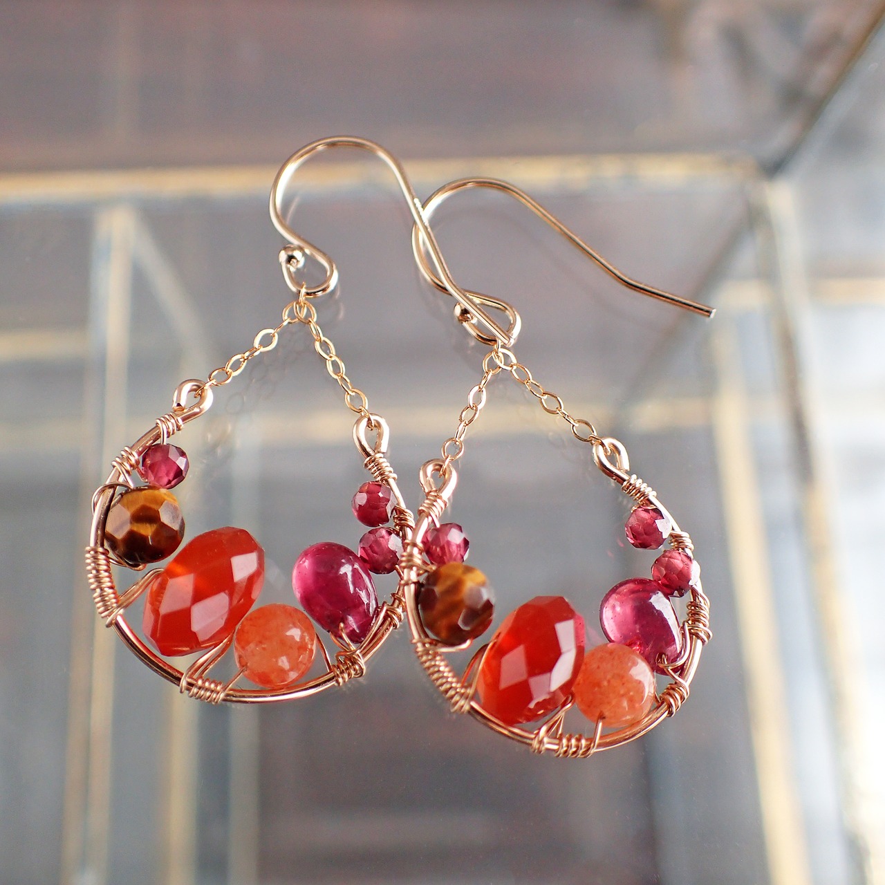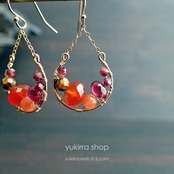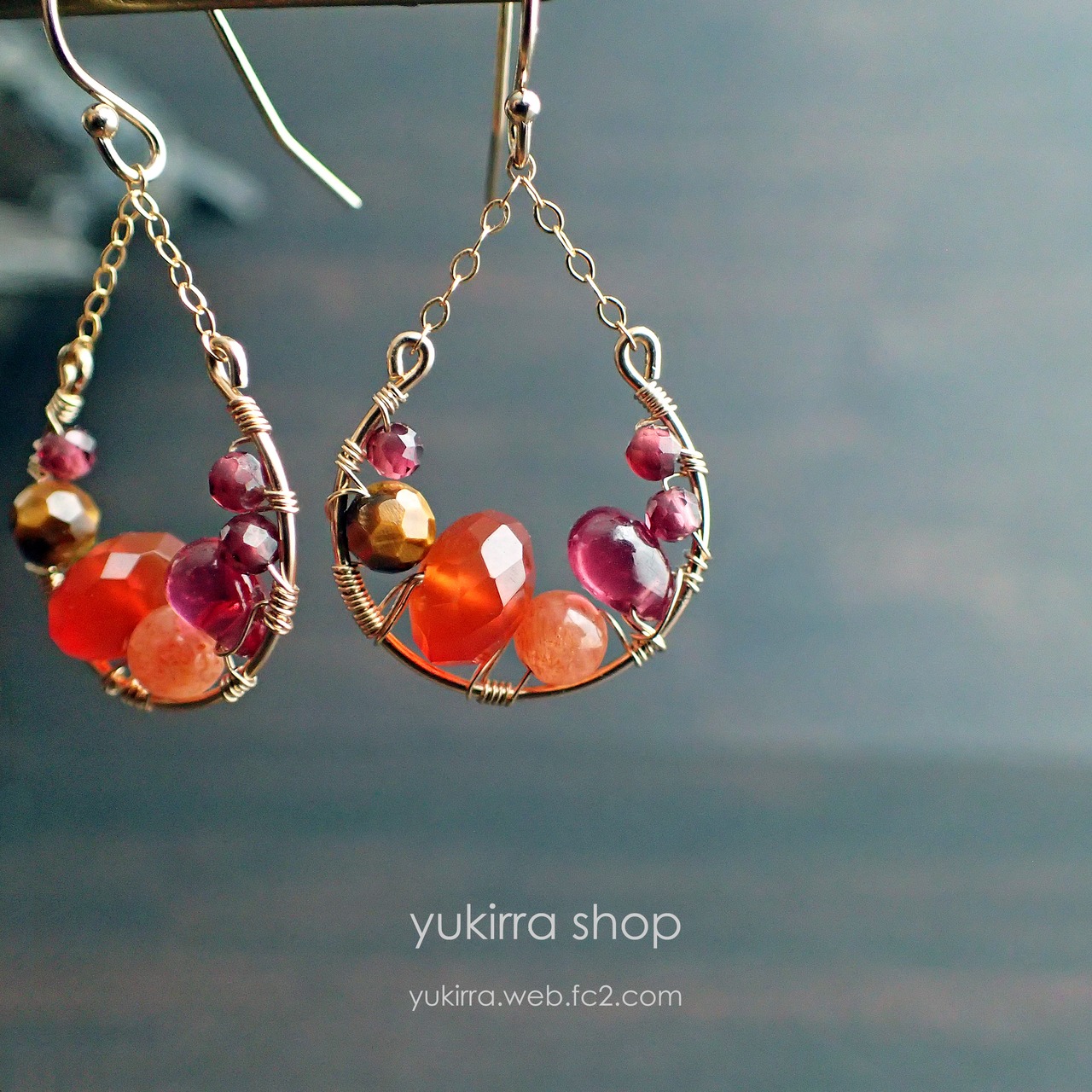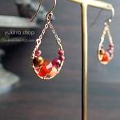 魅惑の秋色、ルビー&カーネリアンのプチワイングラスピアス