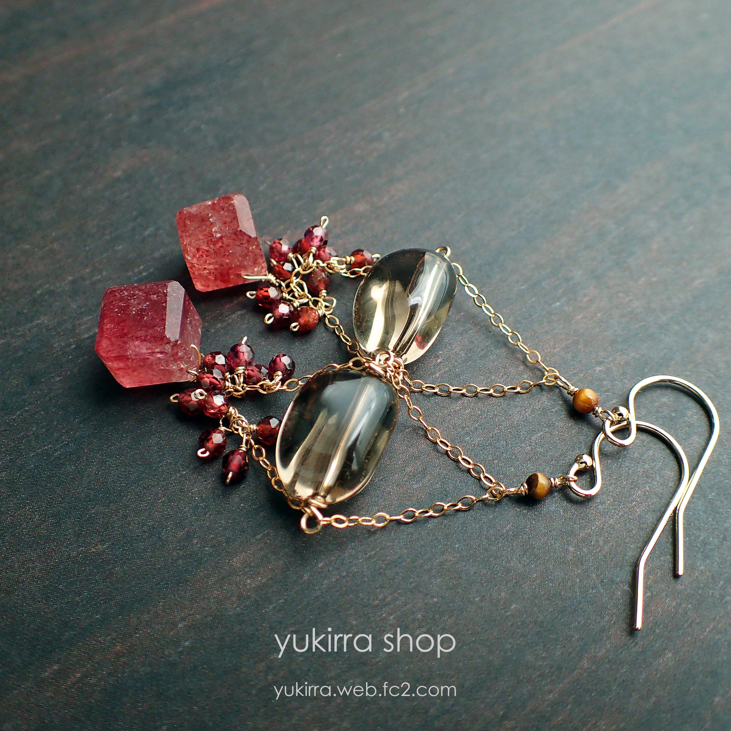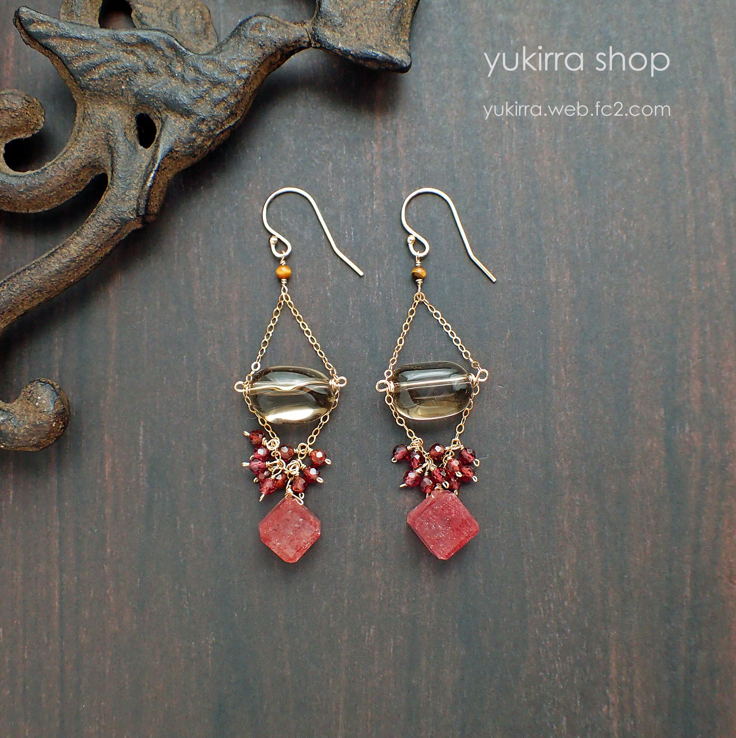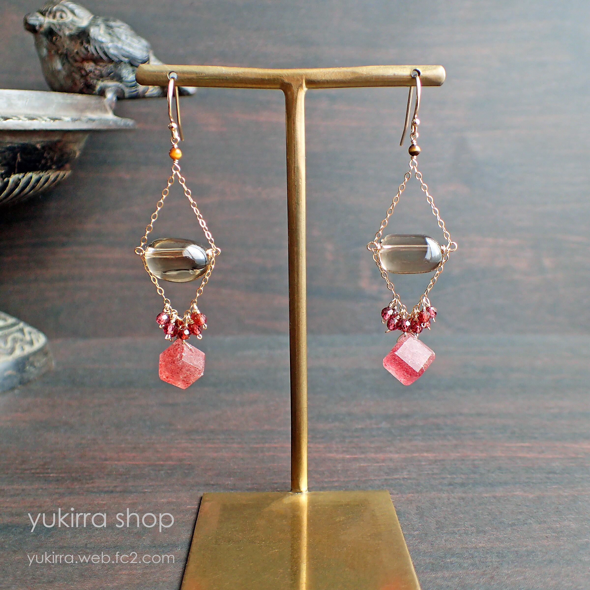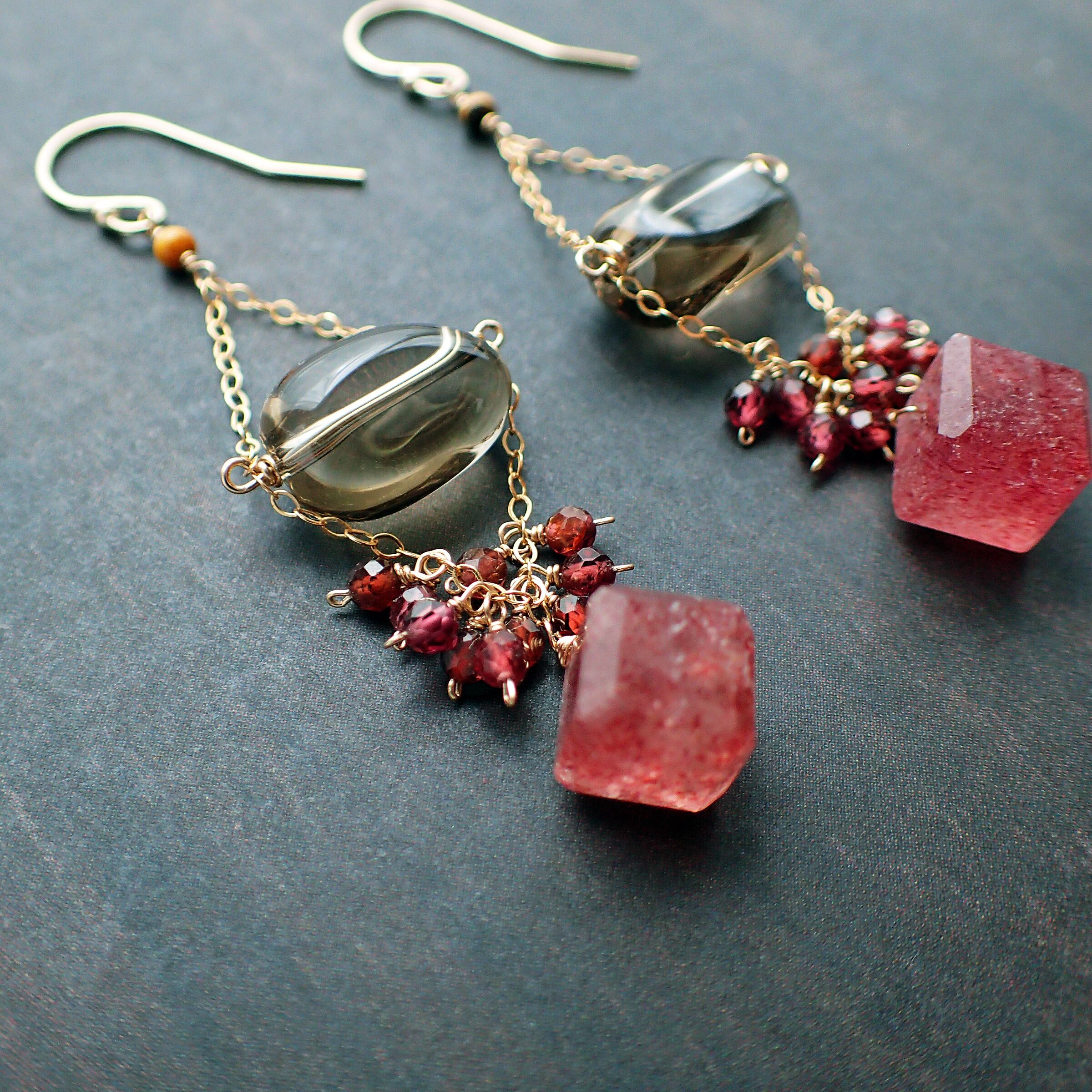 # 魅惑のストロベリークウォーツ&スモーキークウォーツのシャデリアピアス