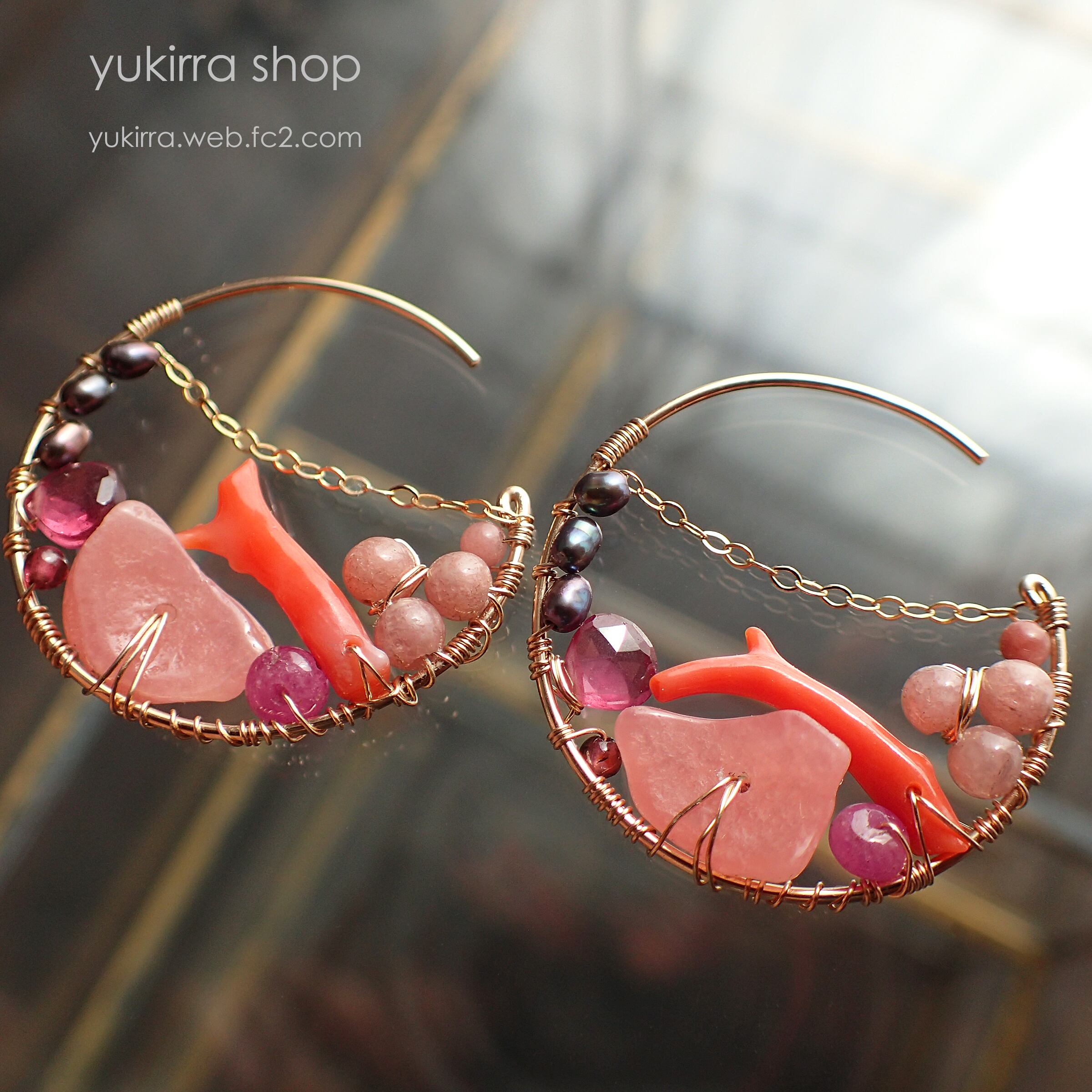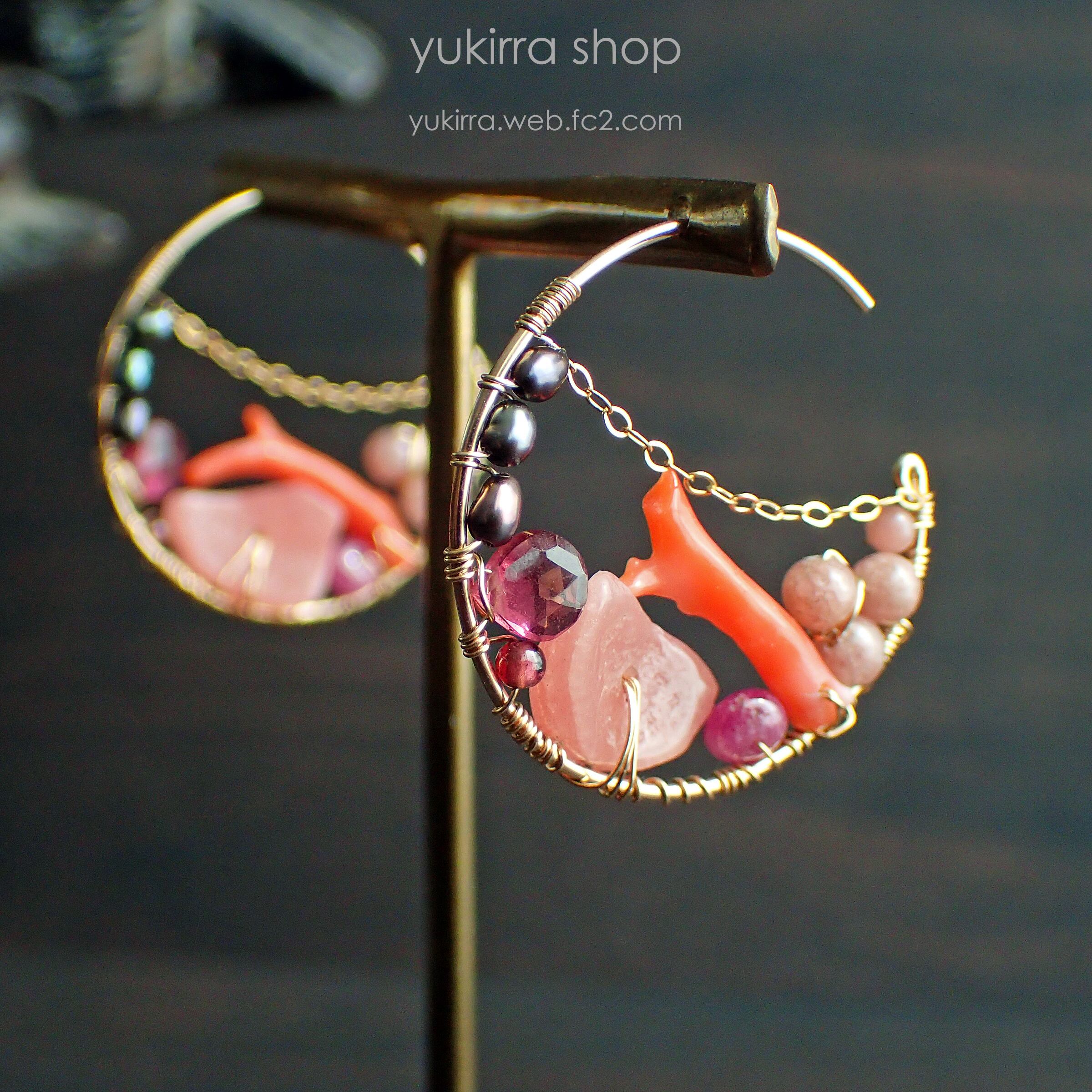 インカローズ・ルビー・ロードライトガーネット・ガーネット・淡水パール・珊瑚・K14GF