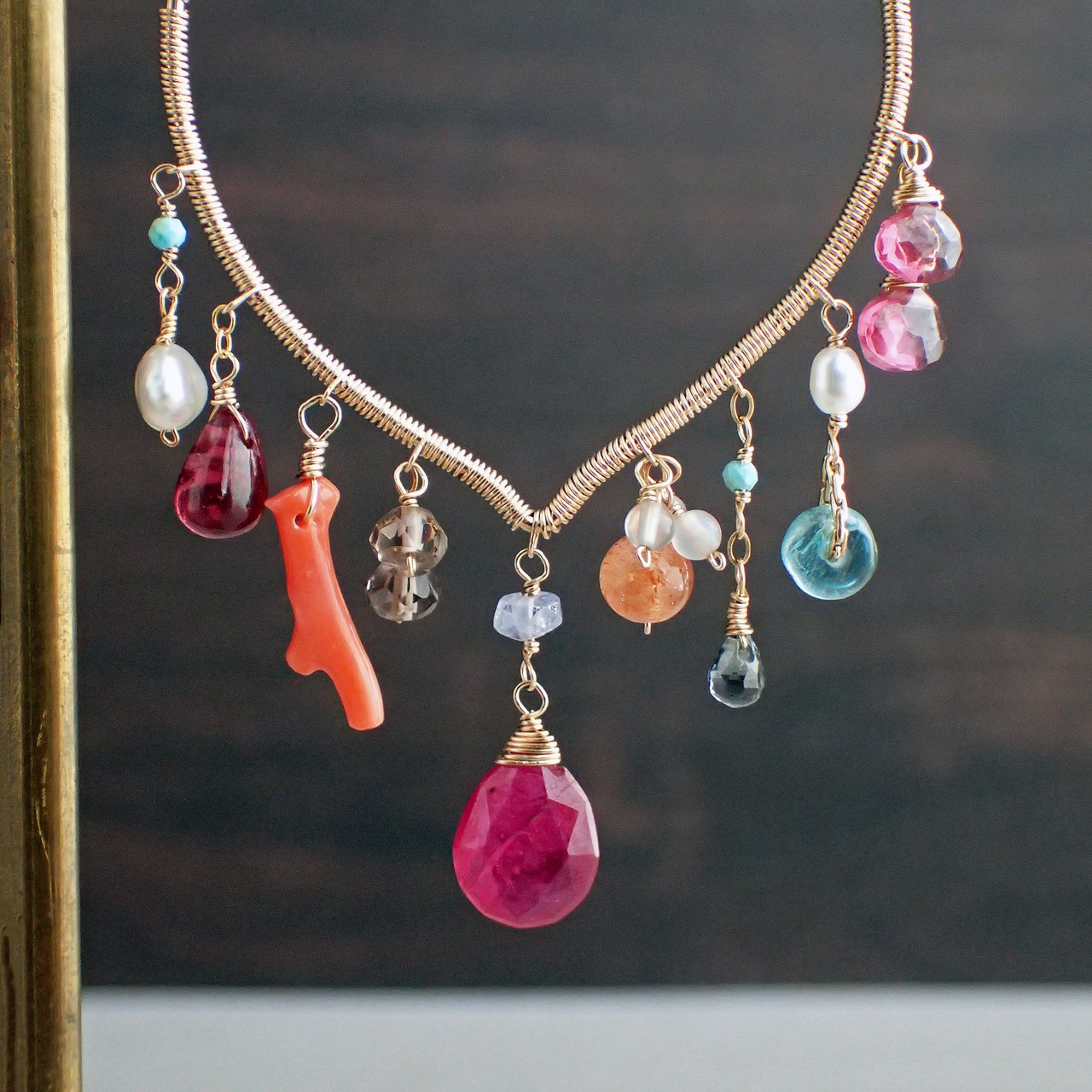 ルビー(3種類)・ロードライトガーネット・淡水パール・アパタイト・トルコ石・グリーンサファイア・サンストーン・グレーオニキス・タンザナイト・スモーキークウォーツ・珊瑚・あこやケシパール・K14GF