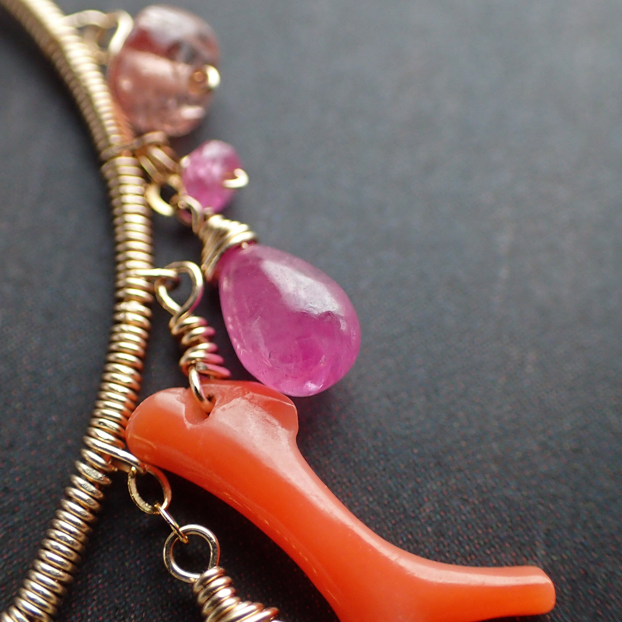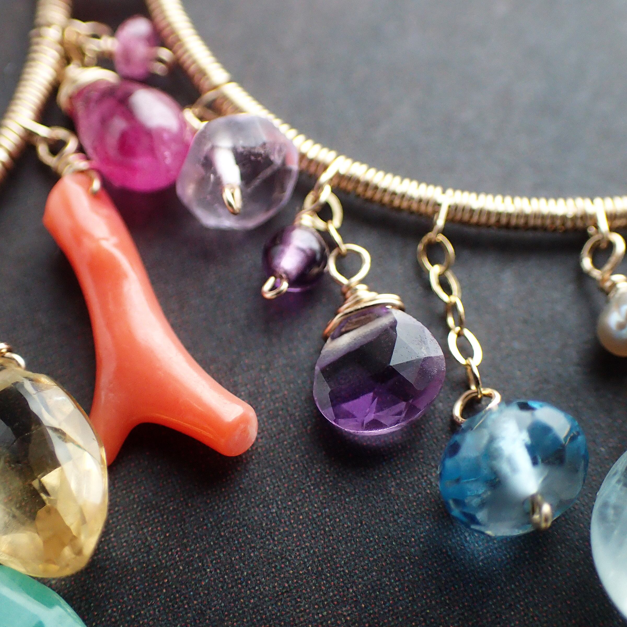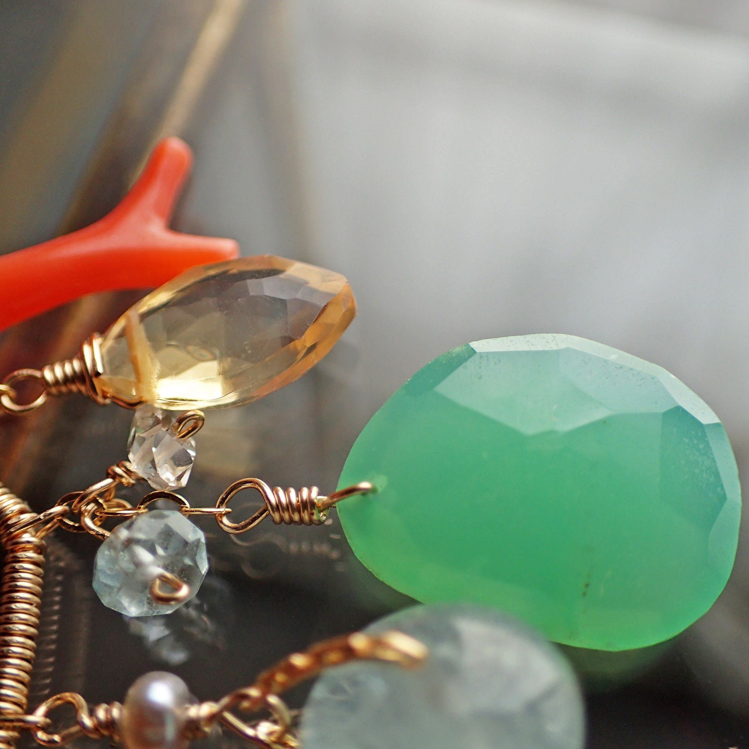 クリソプレーズ・珊瑚・ピンクスピネル・ピンクサファイア・シトリン・アクアマリン・ハーキマーダイヤモンド・淡水パール・ロンドンブルートパーズ・アメジスト・K14GF