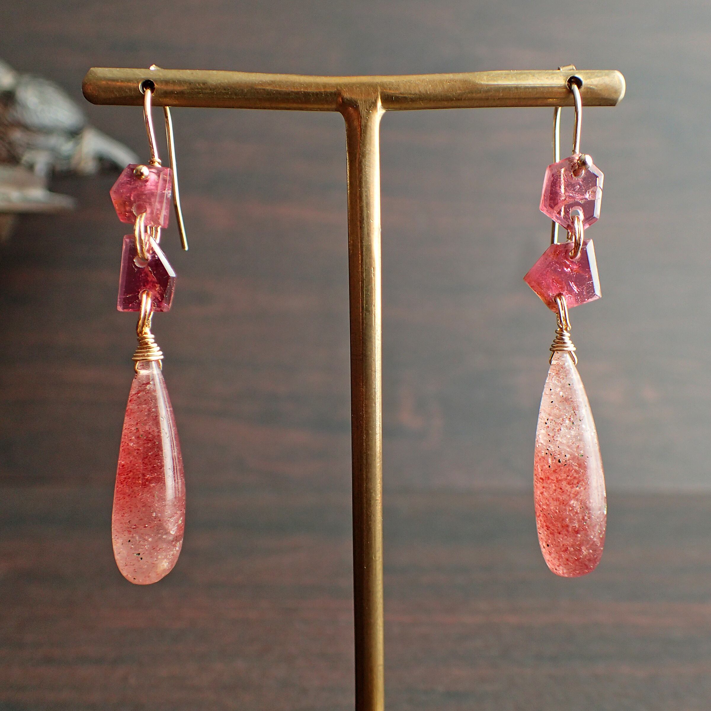 # ストロベリークウォーツ&ピンクトルマリンのロングピアス