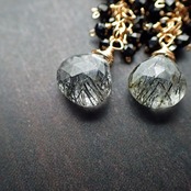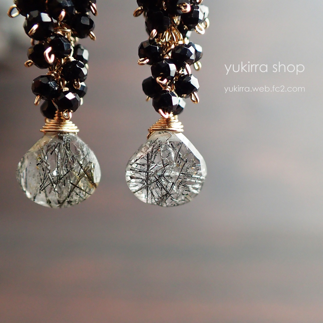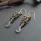 # ブラックルチルクウォーツ&ブラックスピネル・シャンデリアピアス
