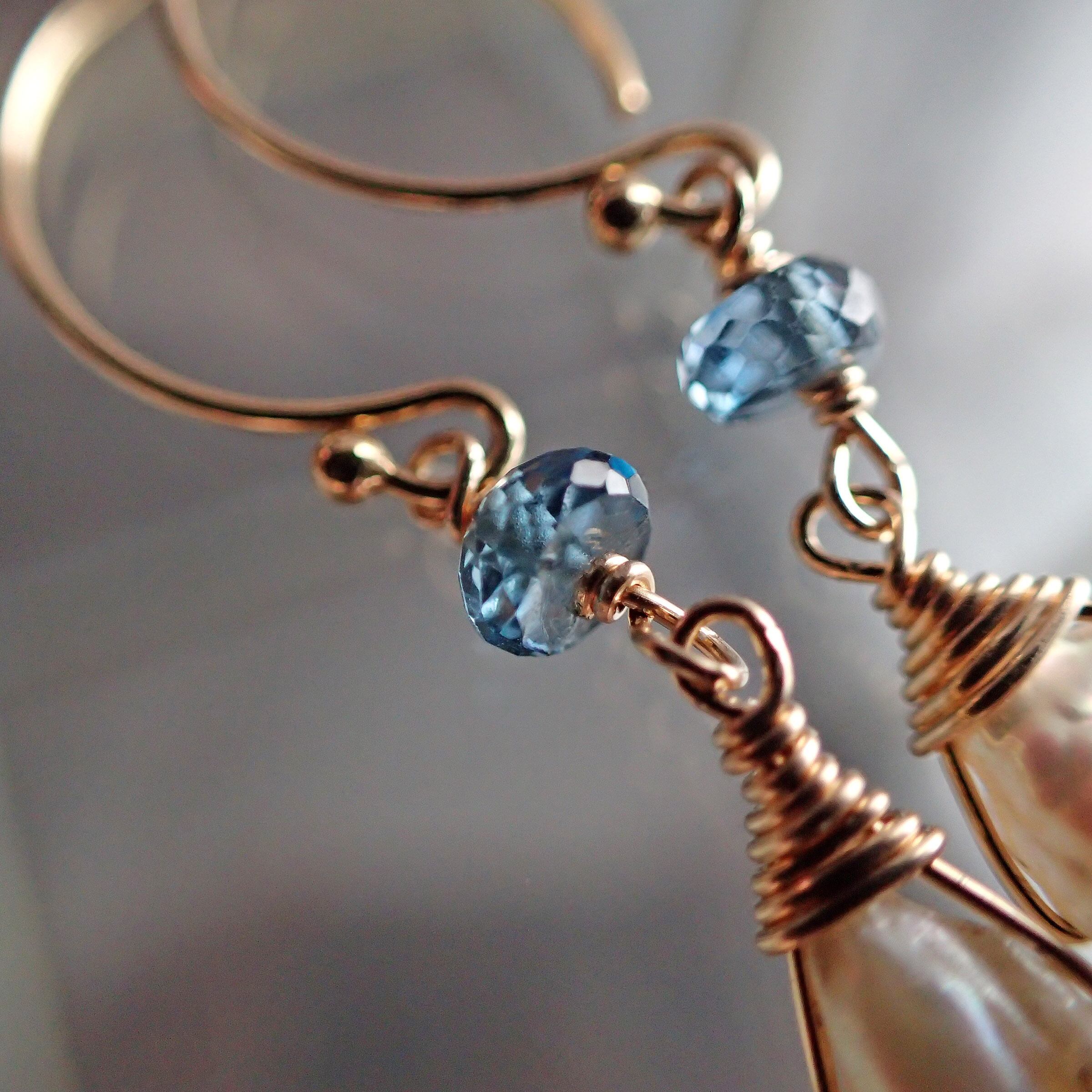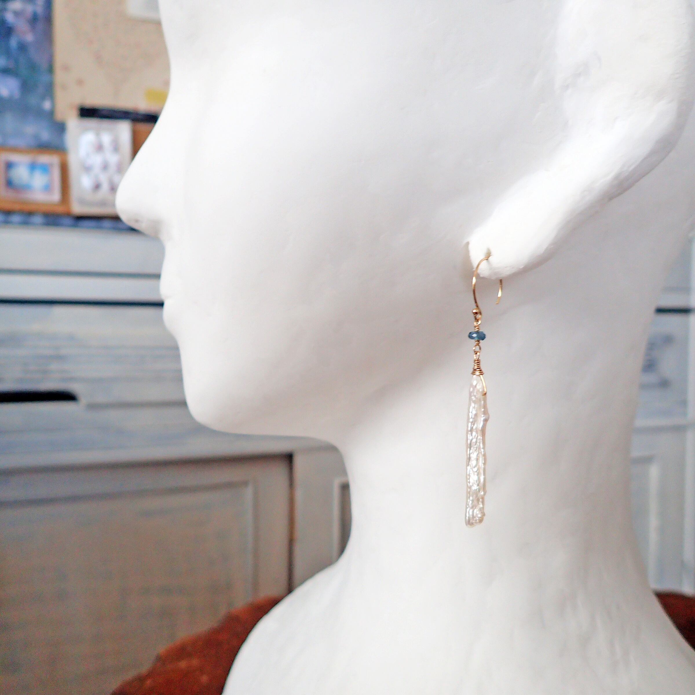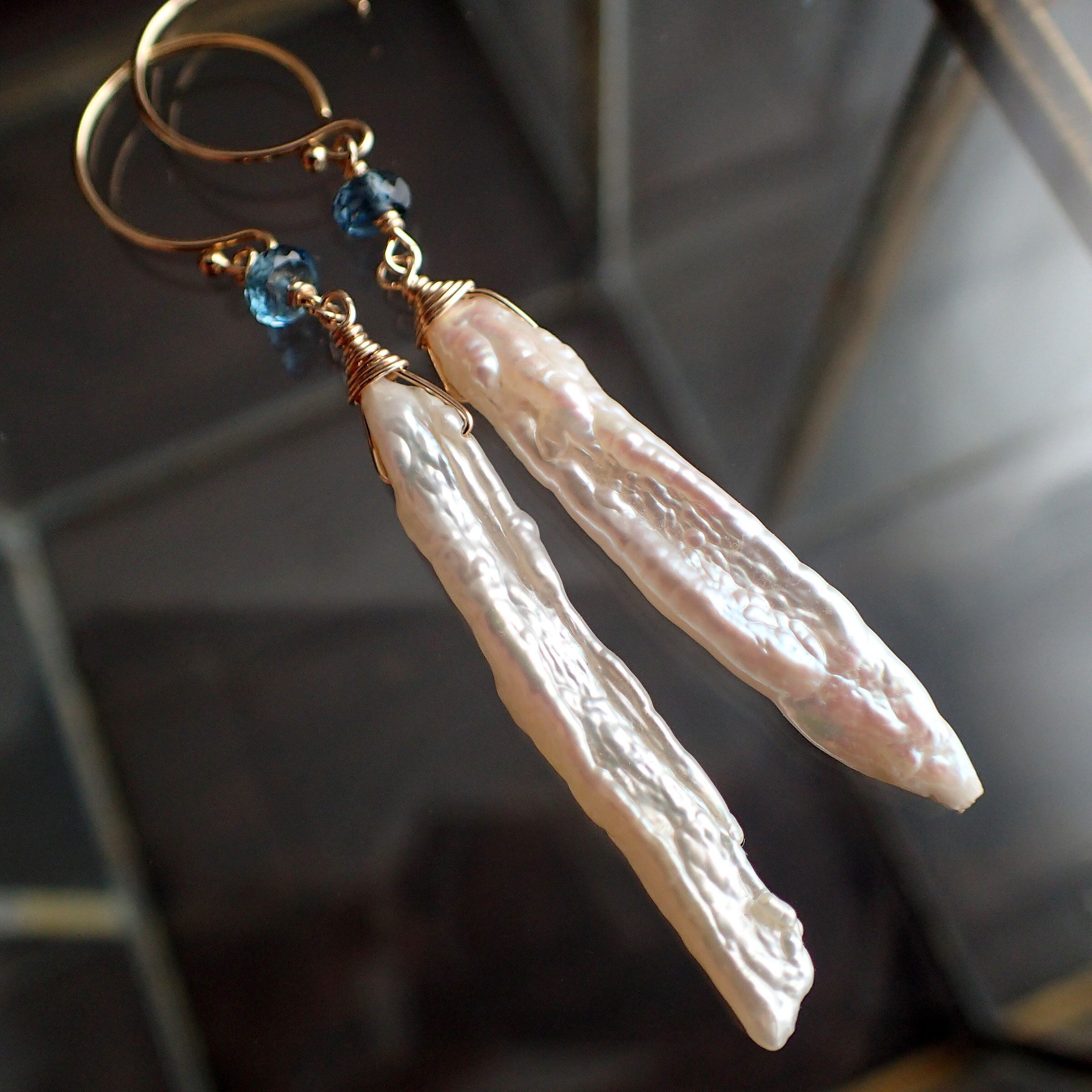 # 淡水バロックパール&ロンドンブルートパーズ・ロングピアス