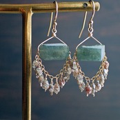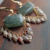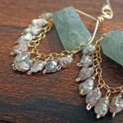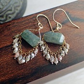 # モスアクアマリン&ラフダイヤモンドのシャンデリアピアス