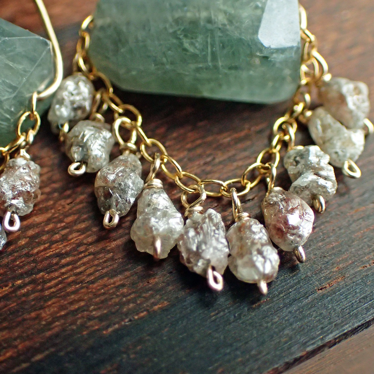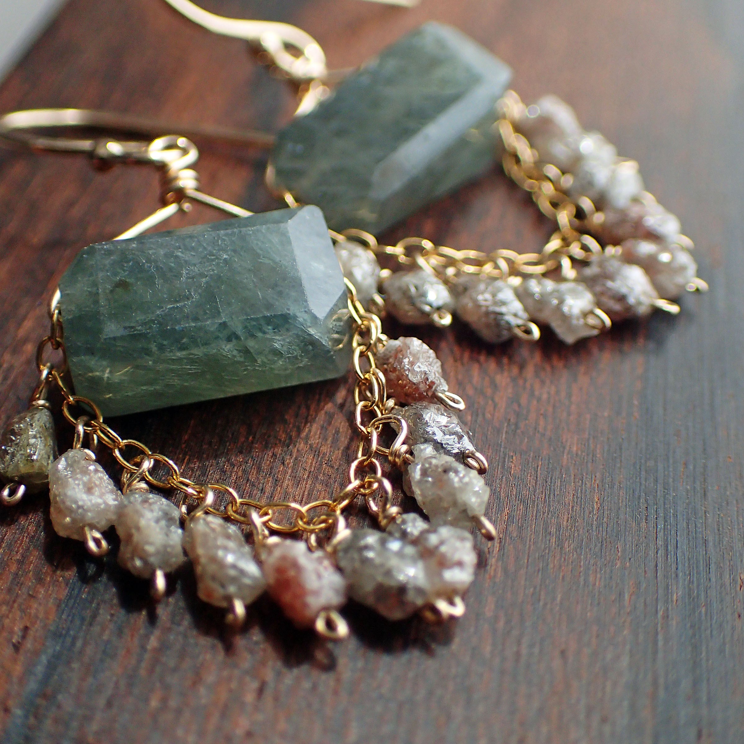 Moss aquamarine & Rough Diamonds chandelier earrings