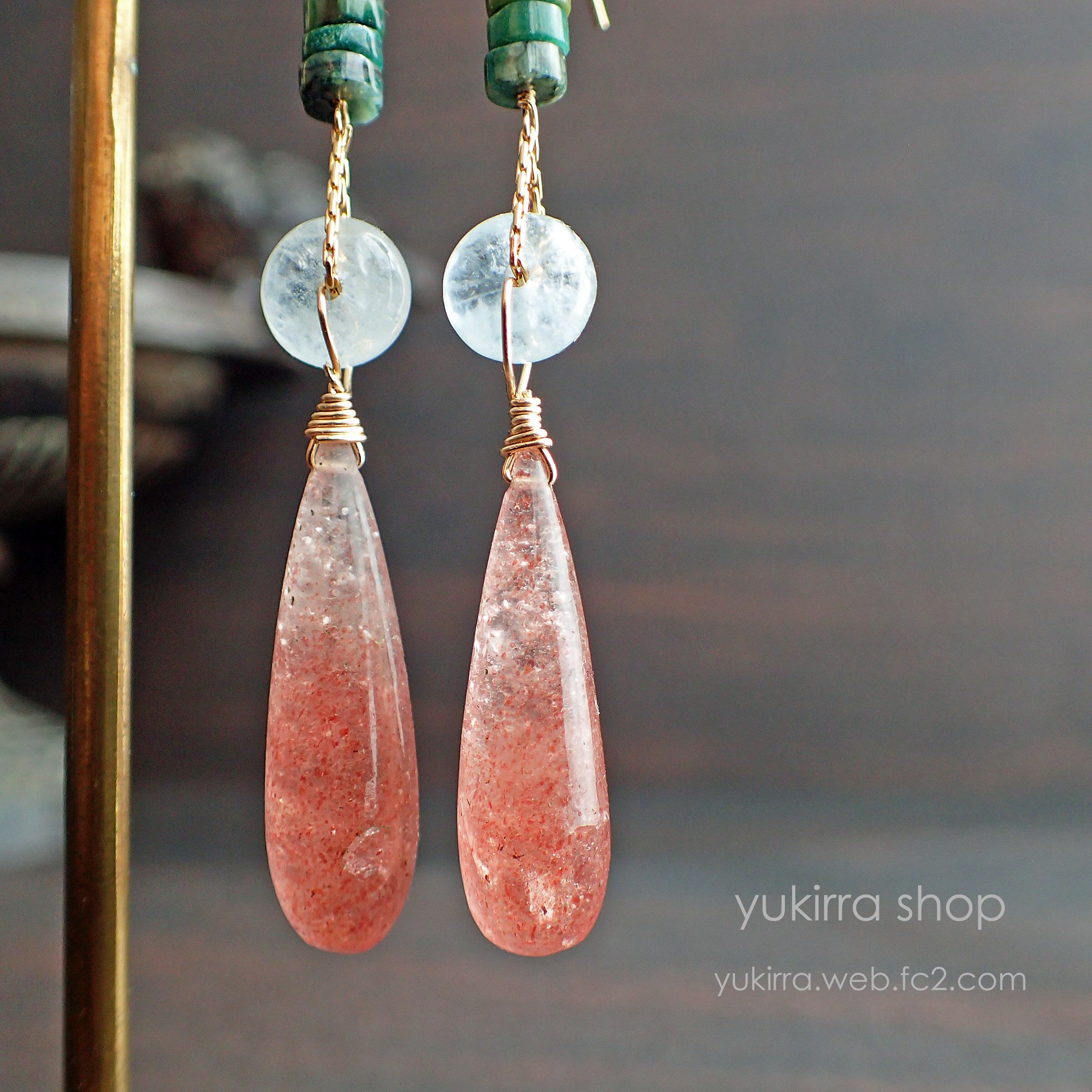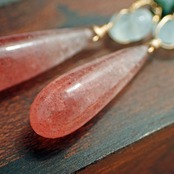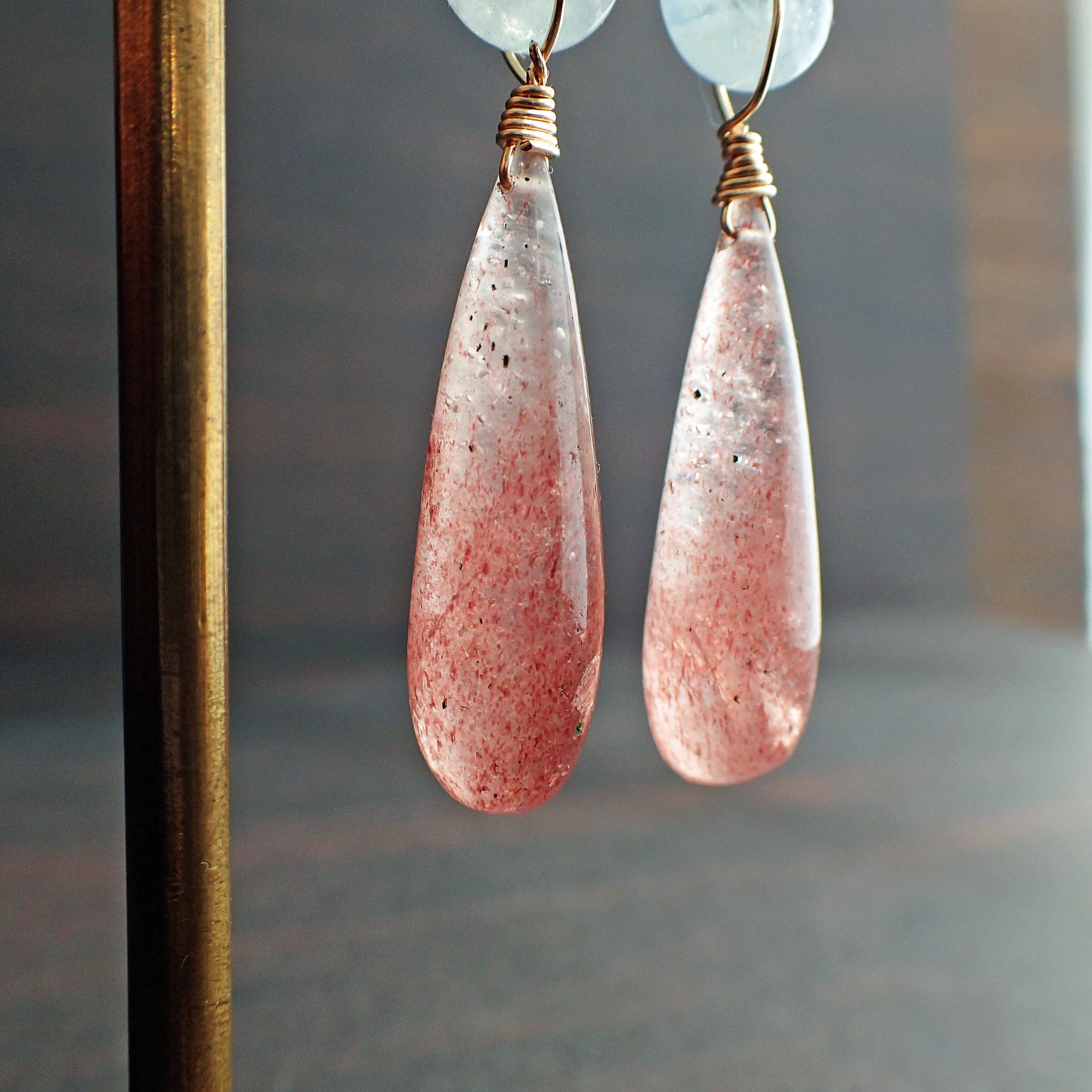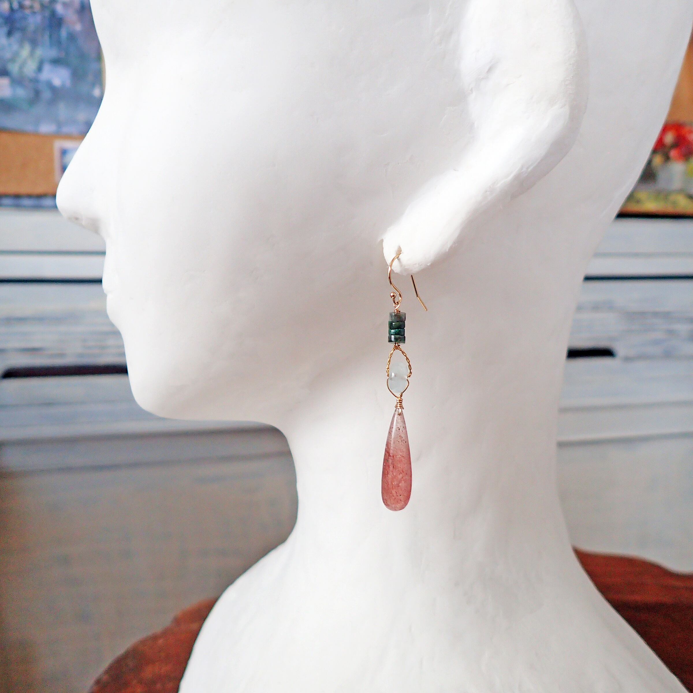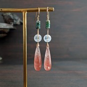 # ストロベリークウォーツ&アクアマリンのロングピアス