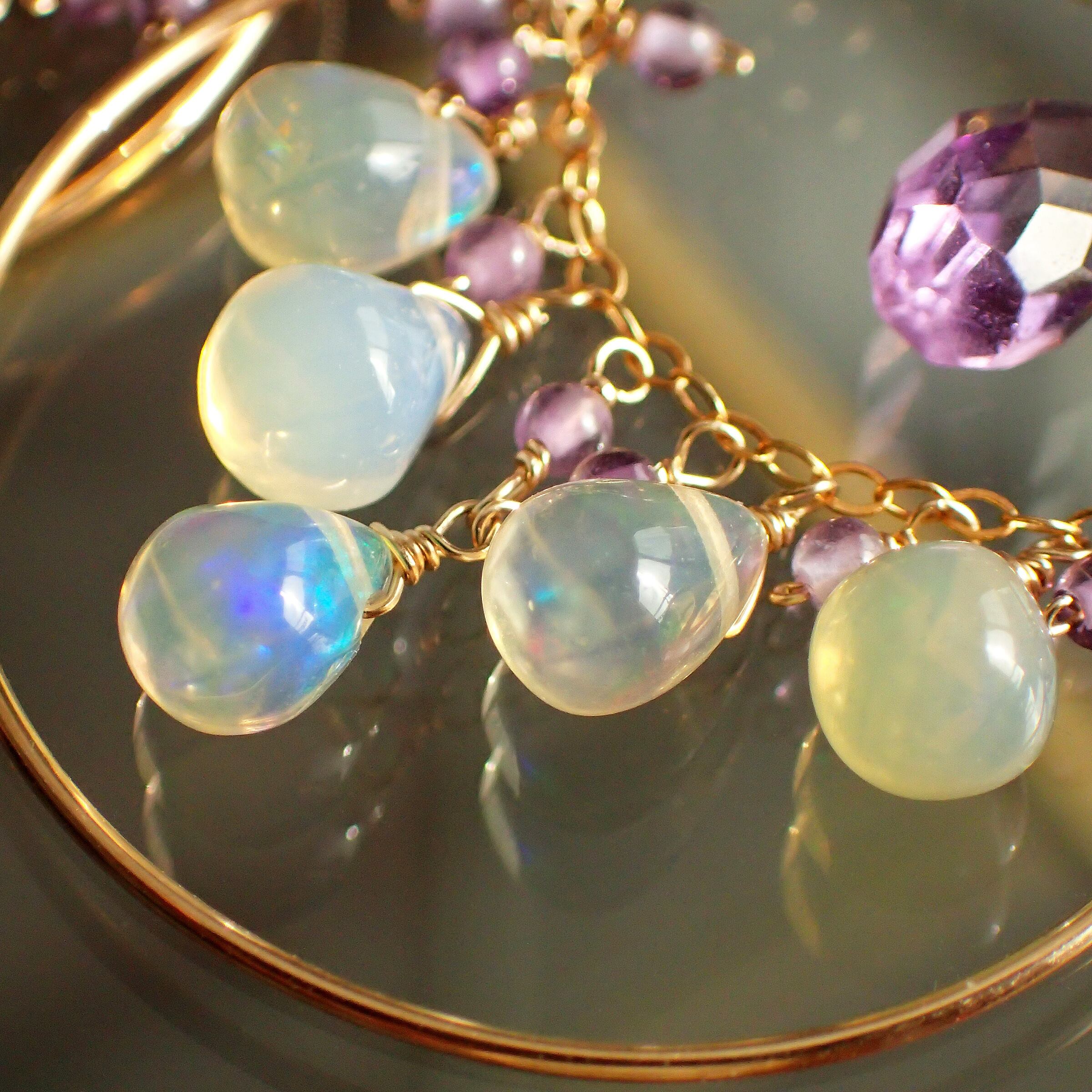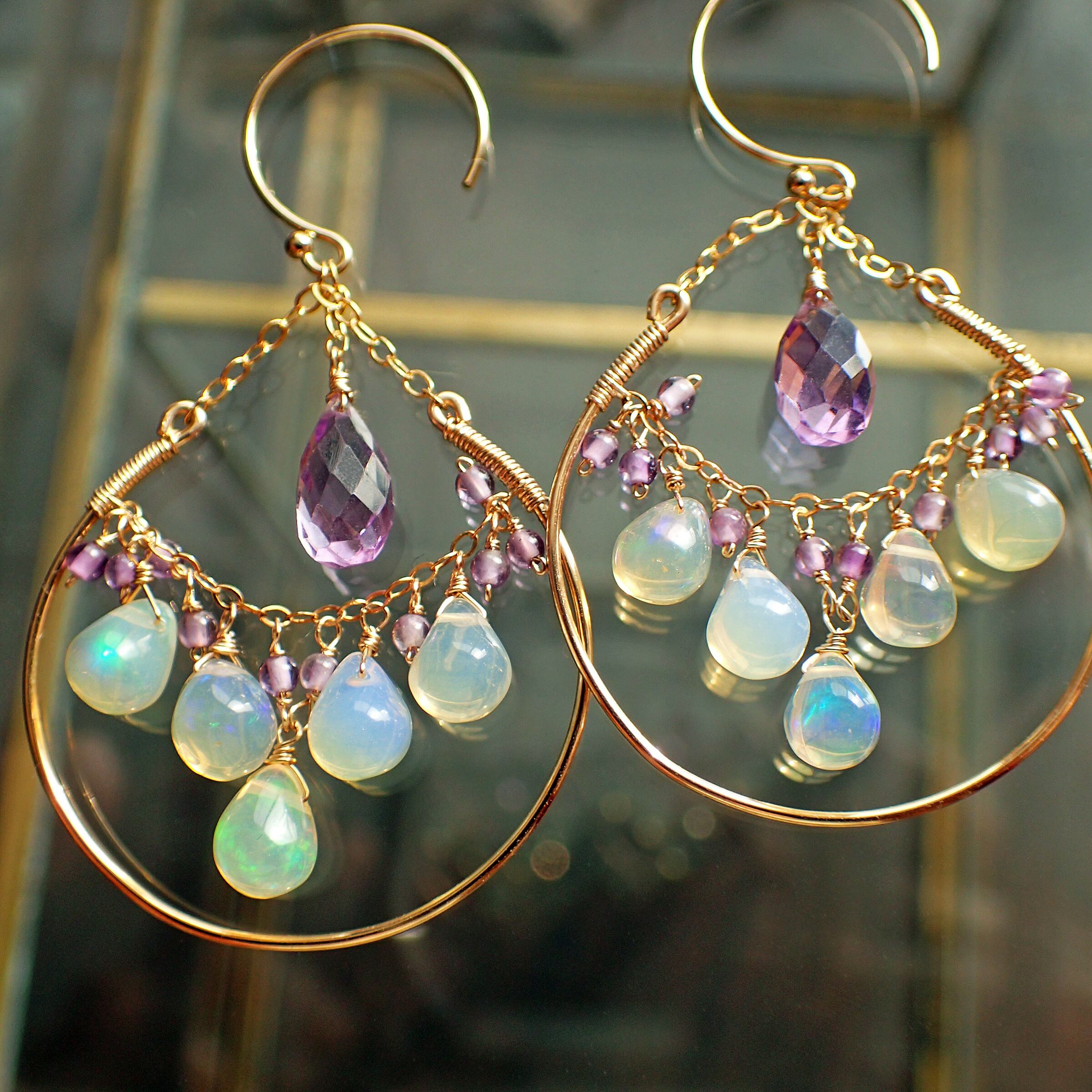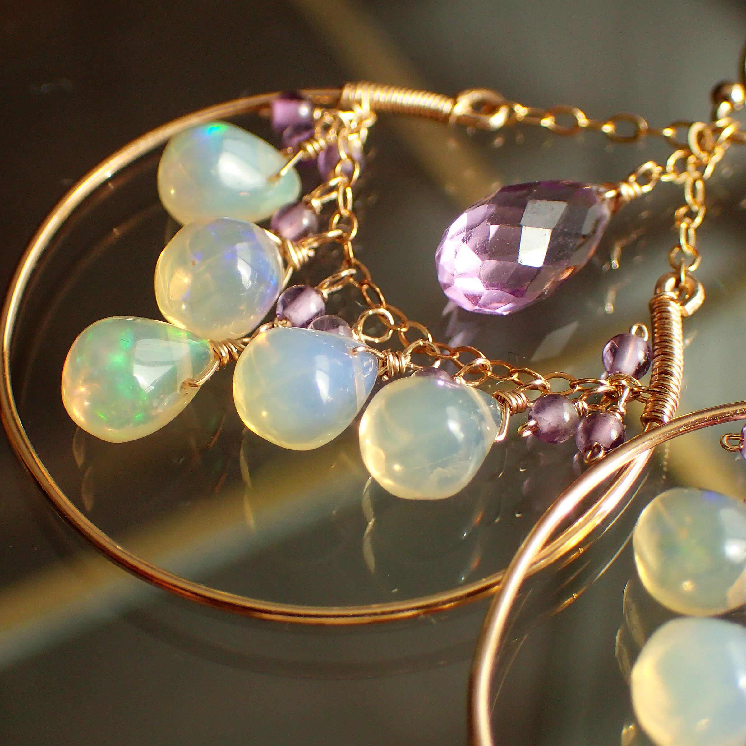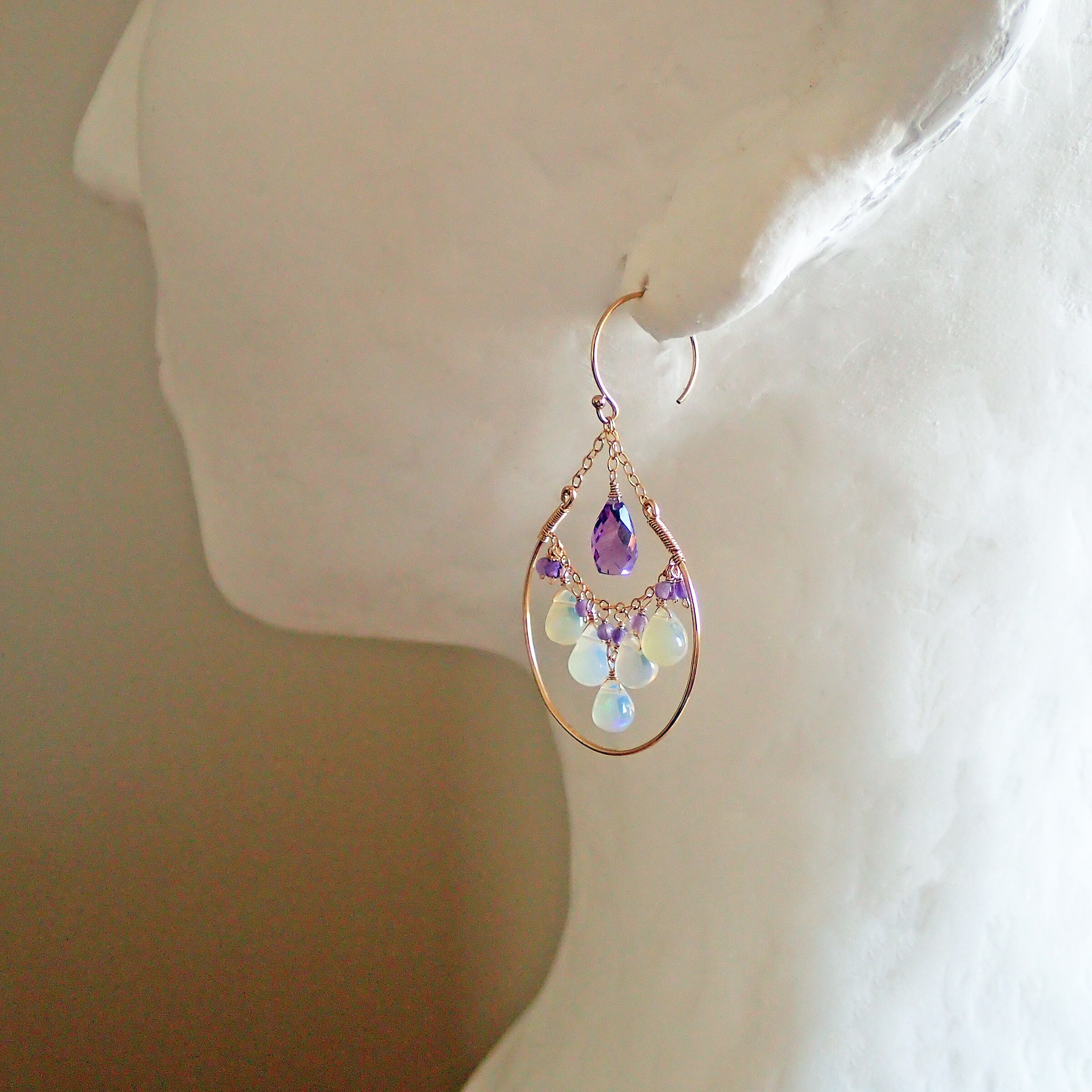 このシャンデリアピアスは、オパールとアメジストを使用した柔らかな曲線を描く美しいデザインが特長です。