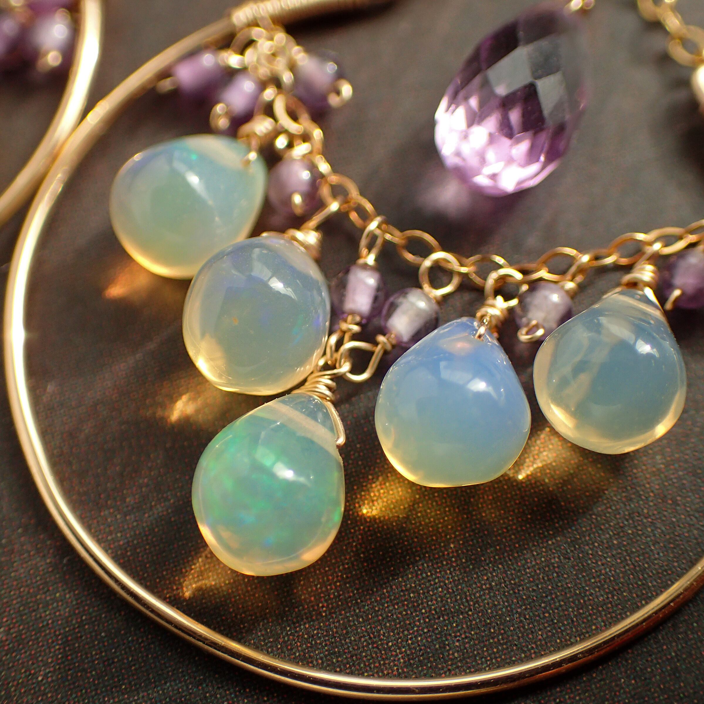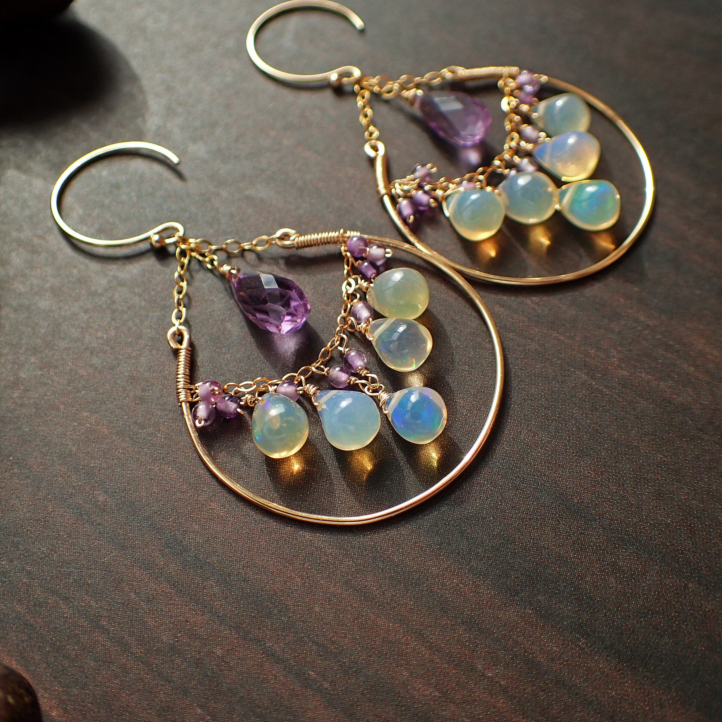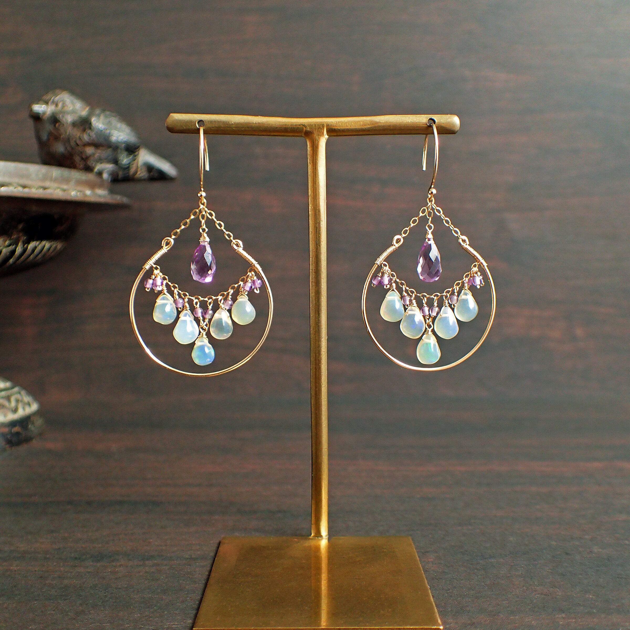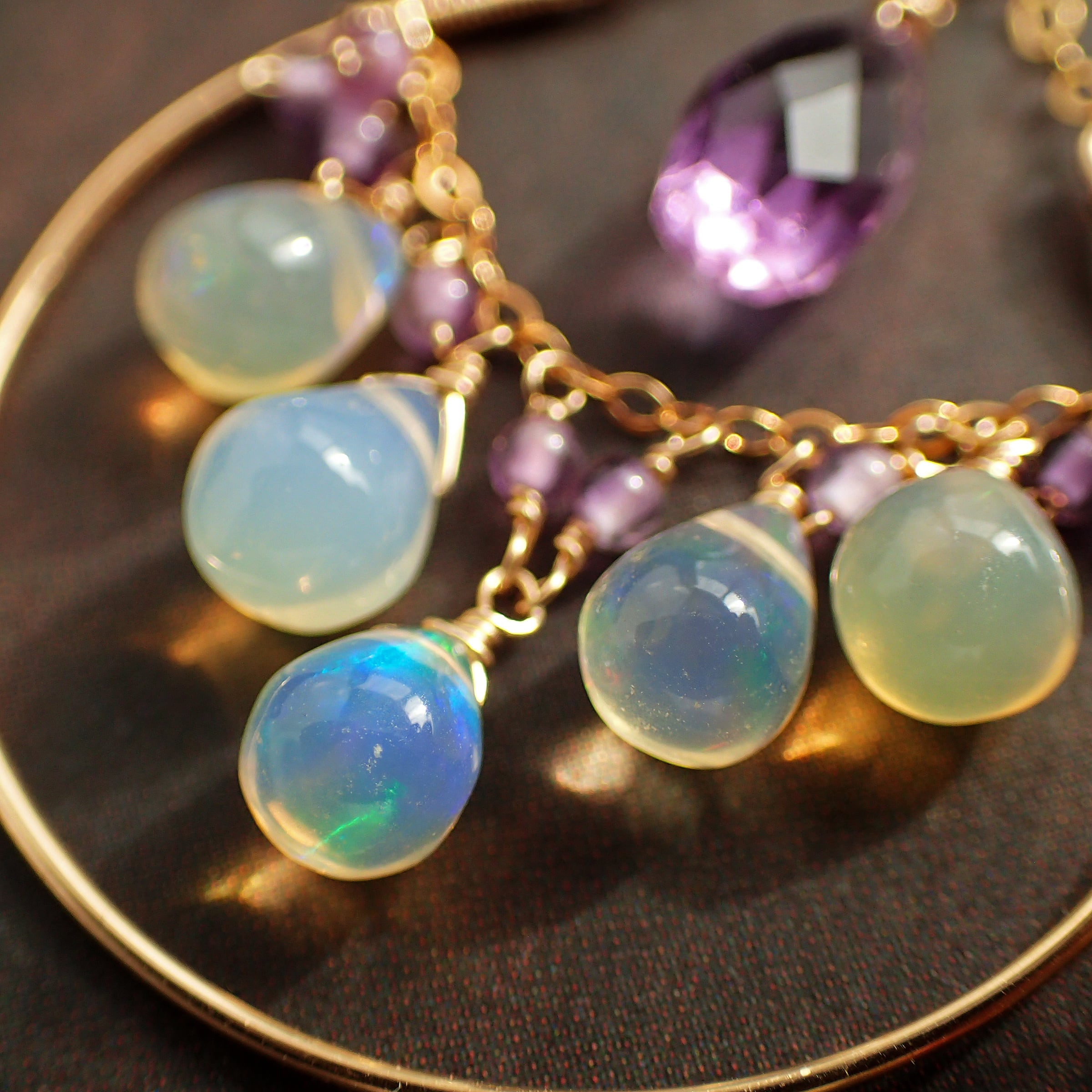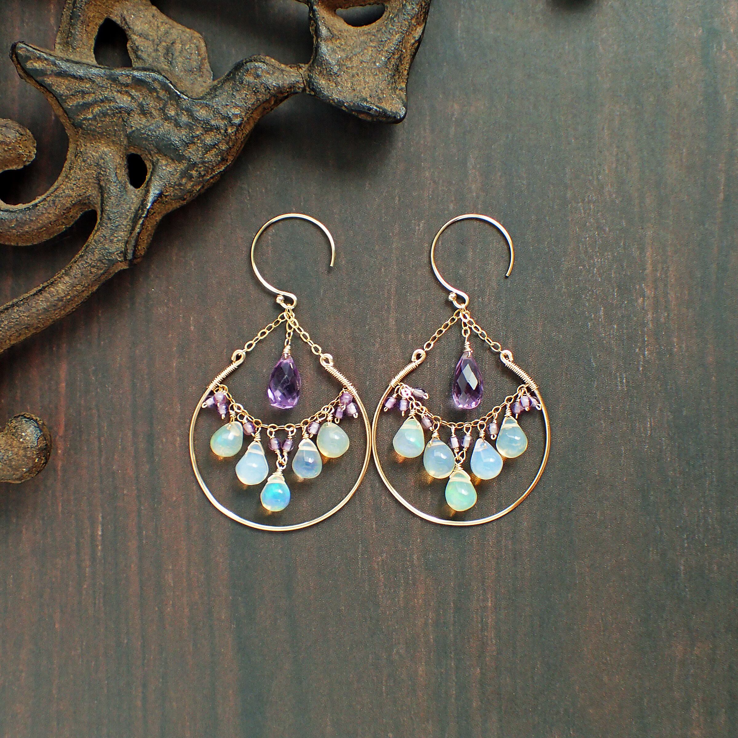 このシャンデリアピアスは、オパールとアメジストを使用した柔らかな曲線を描く美しいデザインが特長です。