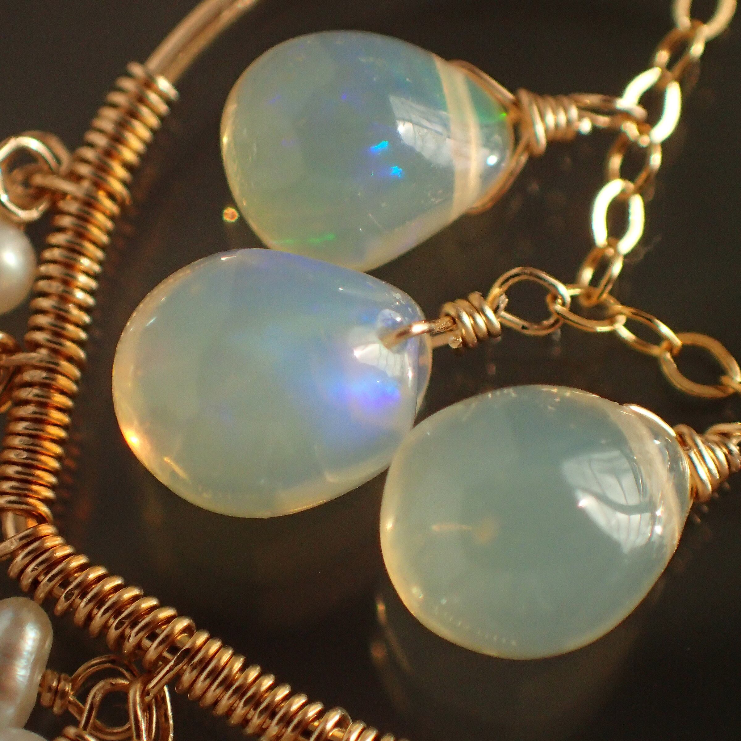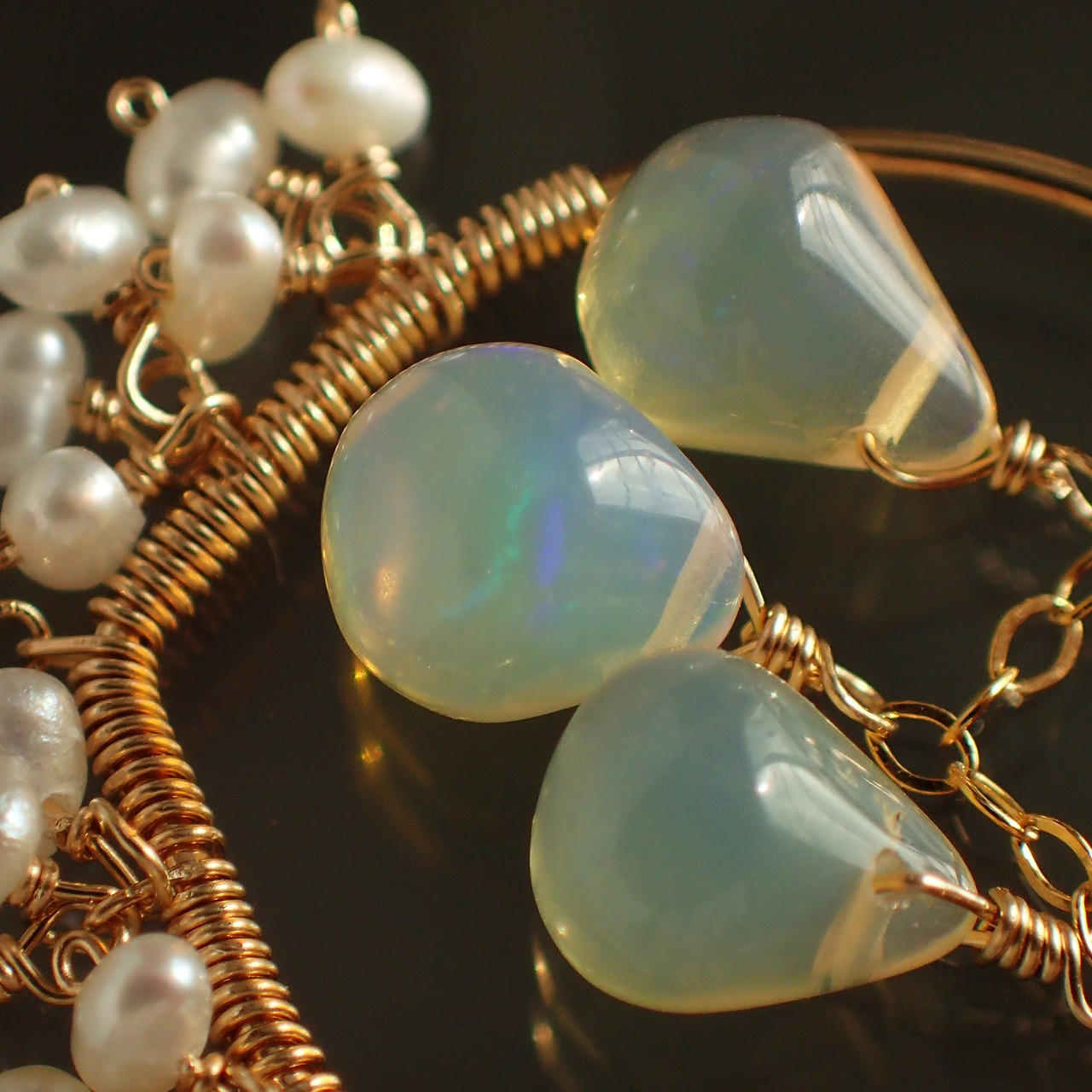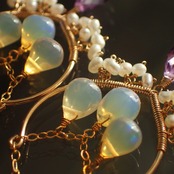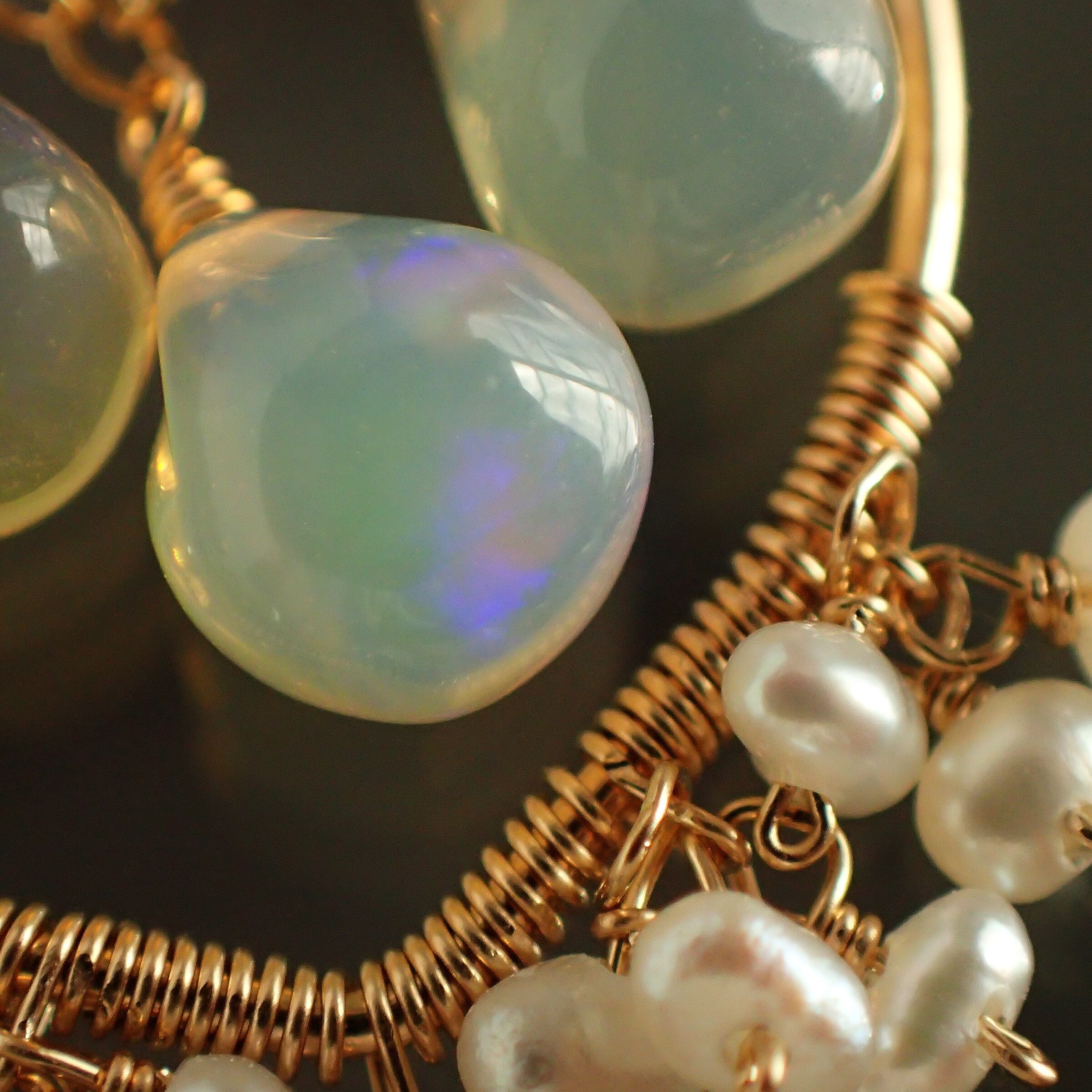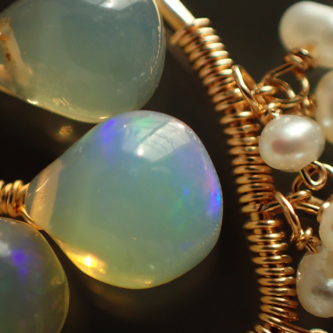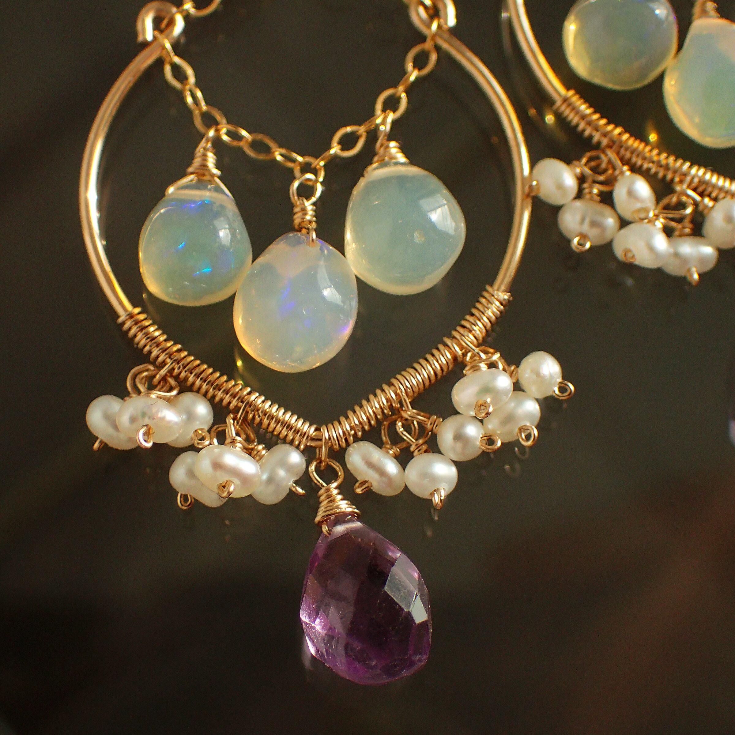 この繊細で美しいシャンデリアピアスは、神秘的なオパールと魅力的なアメジストを使用した特別なデザインが特長です。