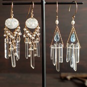 この魅力的な氷柱と雨粒のシャンデリアピアスは、優れたデザインとこだわりの素材が特長です。水晶とアクアマリンの静かな佇まいは、まるで氷の世界からインスパイアされたかのような美しい輝きを耳元にもたらします。