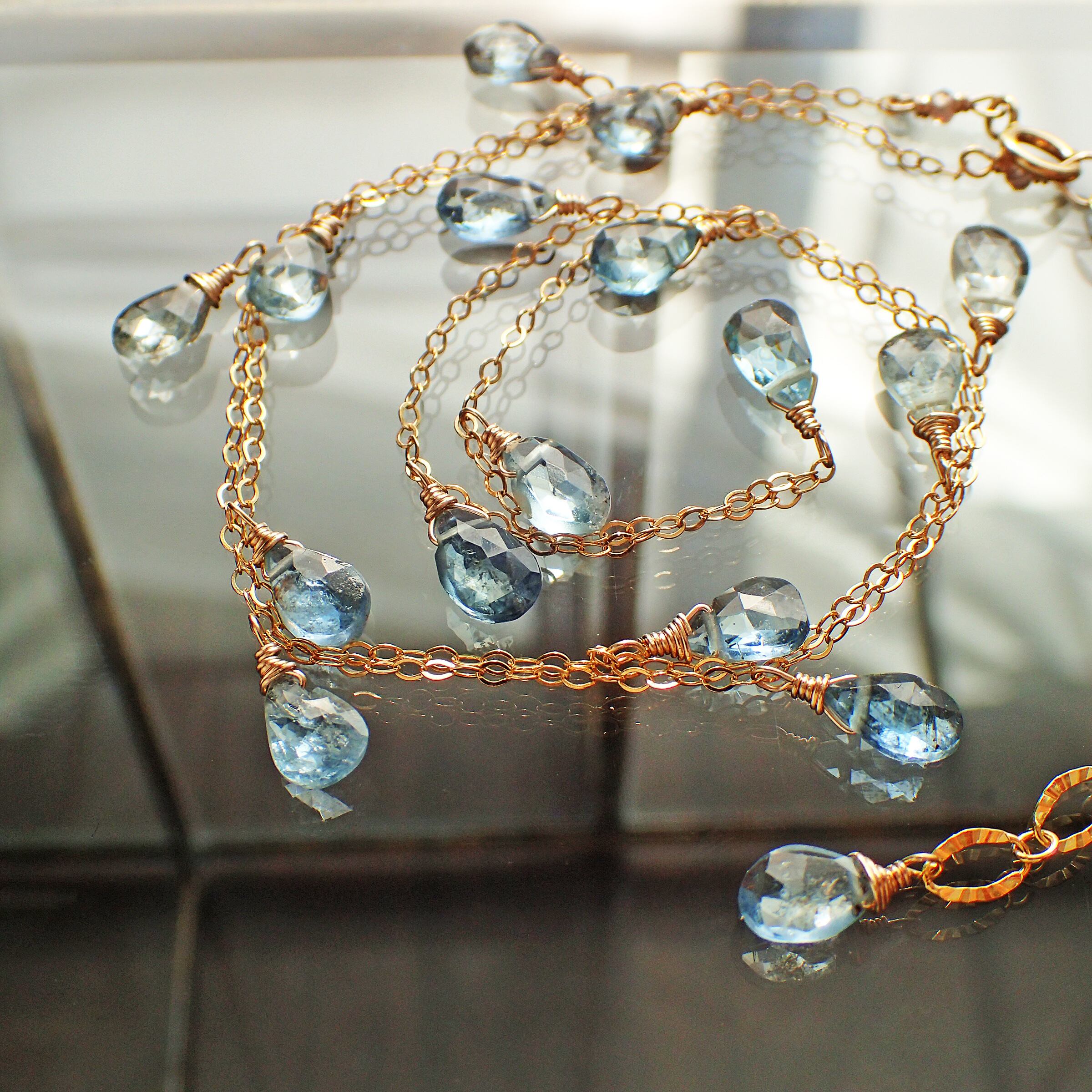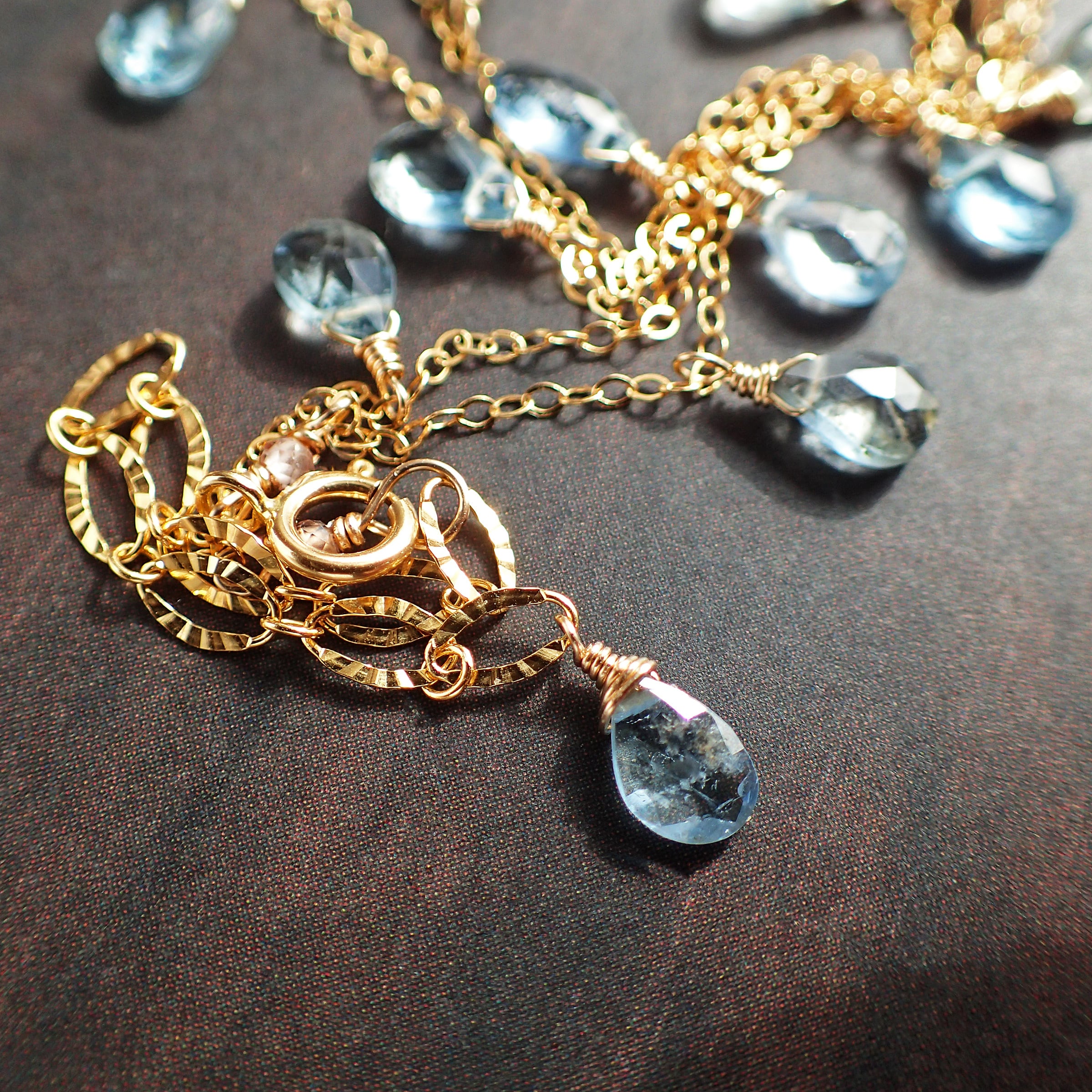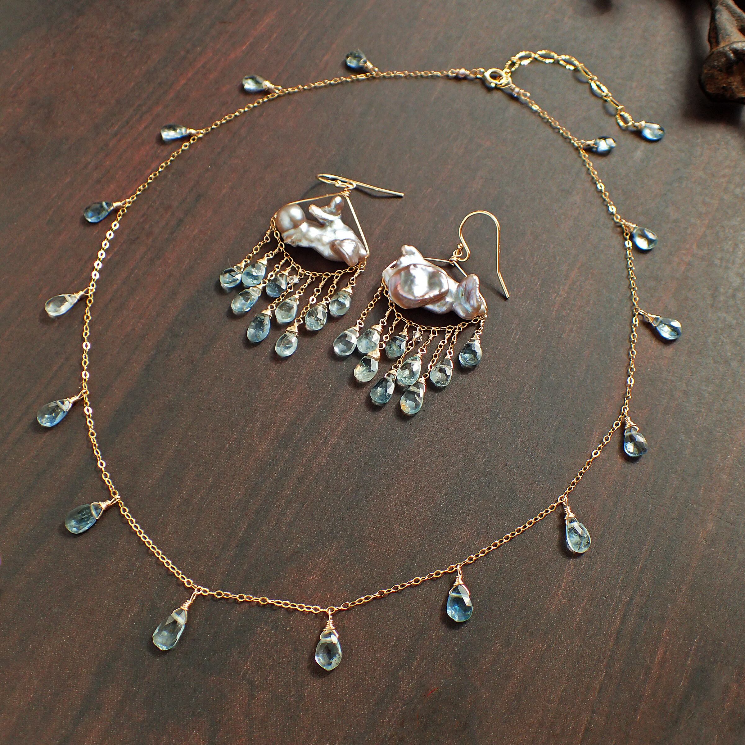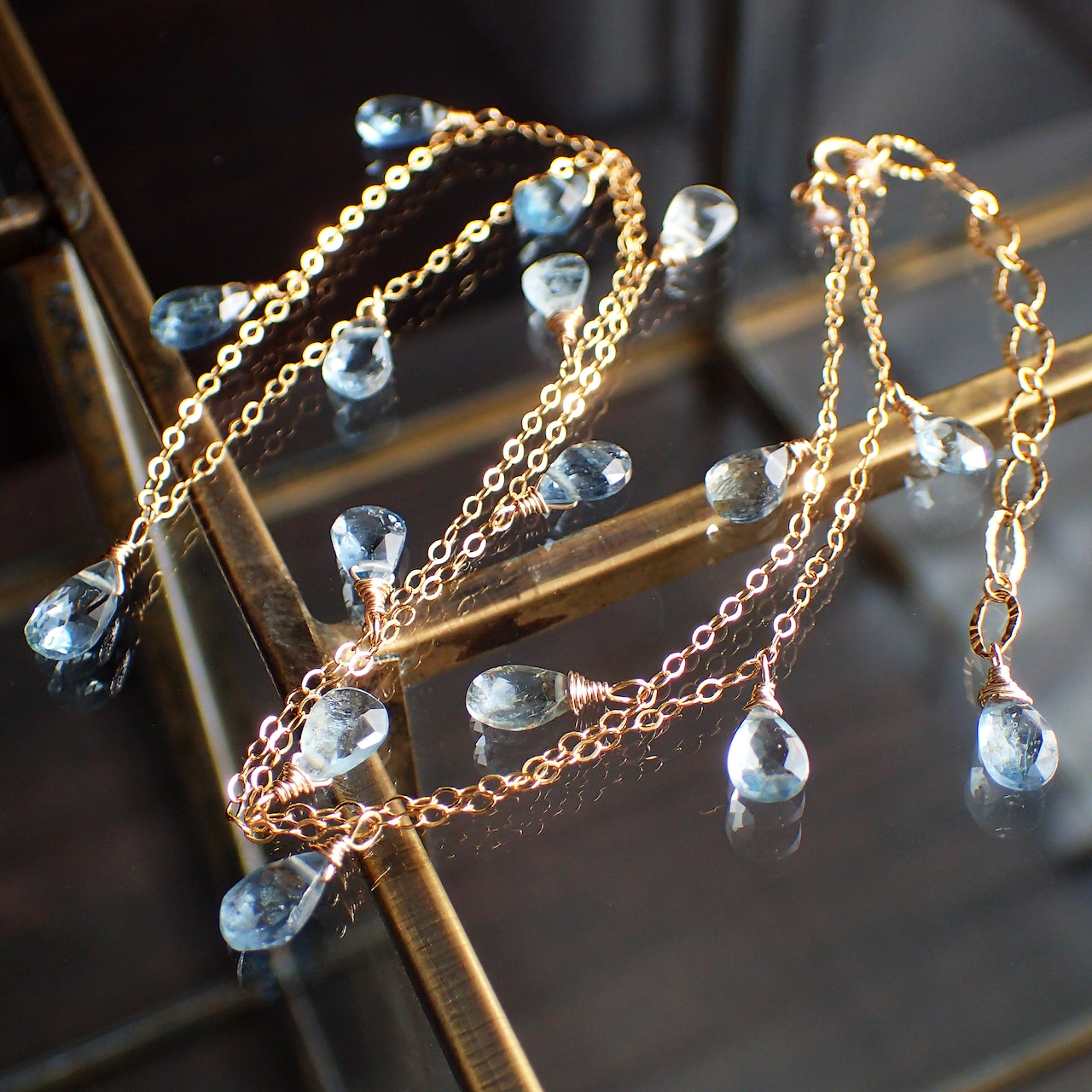この繊細で美しい雨粒のネックレスは、優雅なアクアマリンを使用した特別なデザインが特長です。