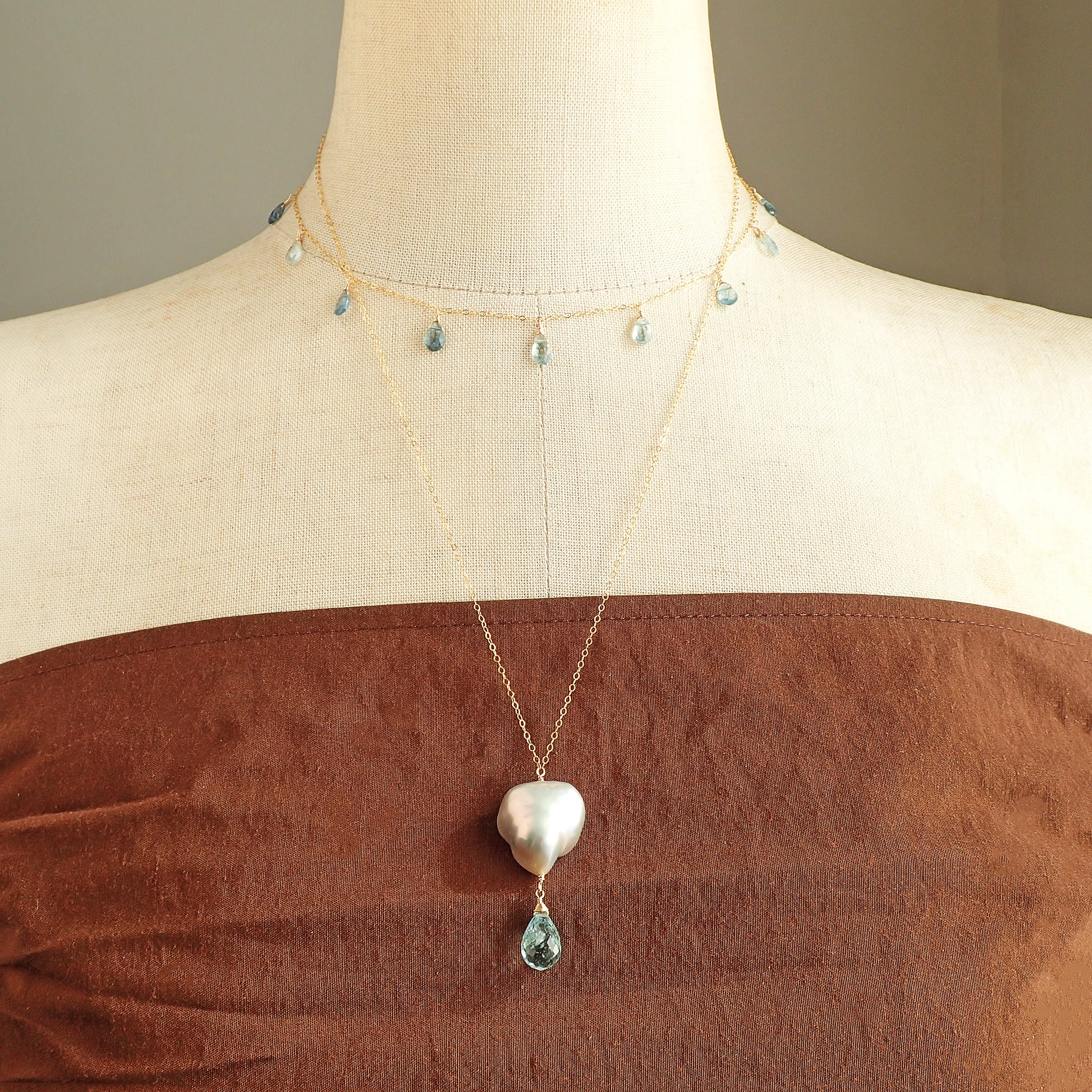 https://yukirra.base.shop/items/132958840(Baroque Pearl & Aquamarine drop necklace)