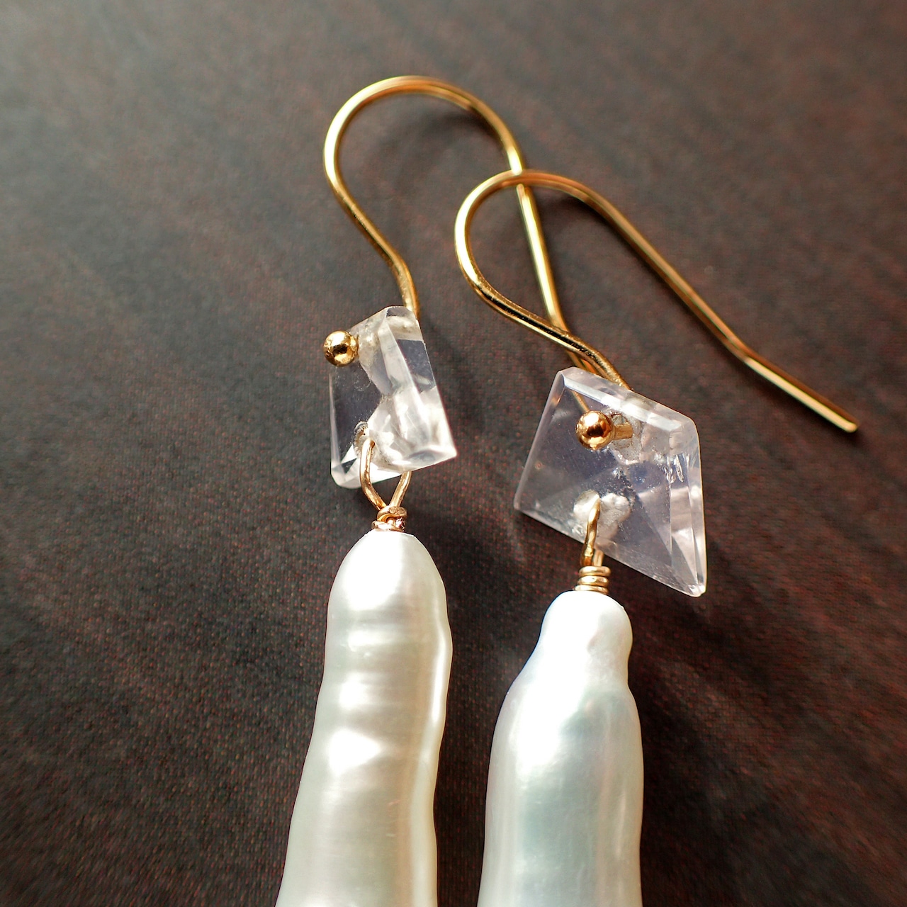 この魅力的なバロックパール&モスアクアマリンのロングピアスは、特別なデザインと素材が織りなす逸品です。