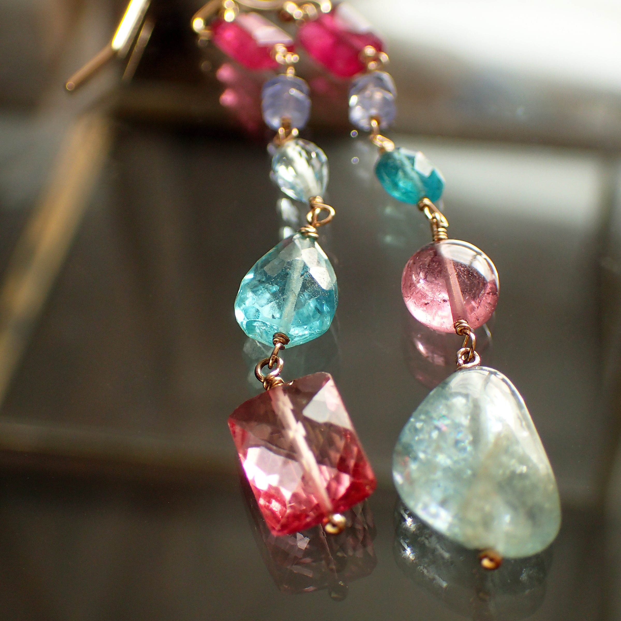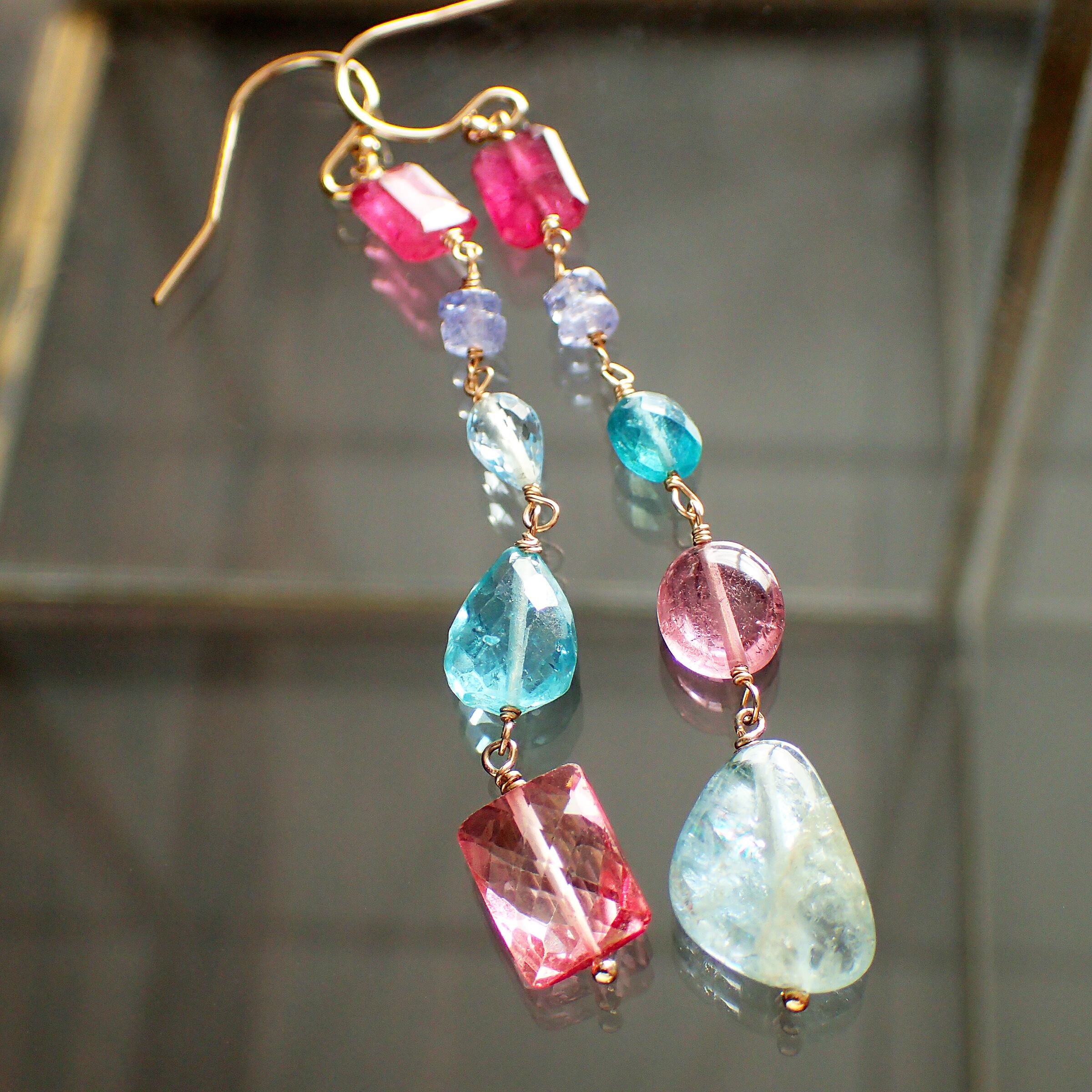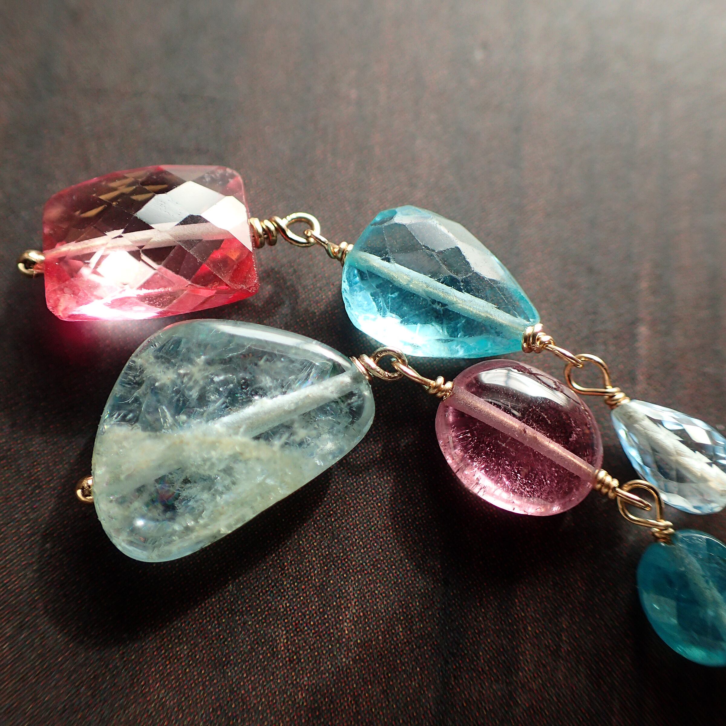 ピンクトルマリン、タンザナイト、アパタイト、スイスブルートパーズ、アクアマリン、ピンクトパーズ、K14GF製