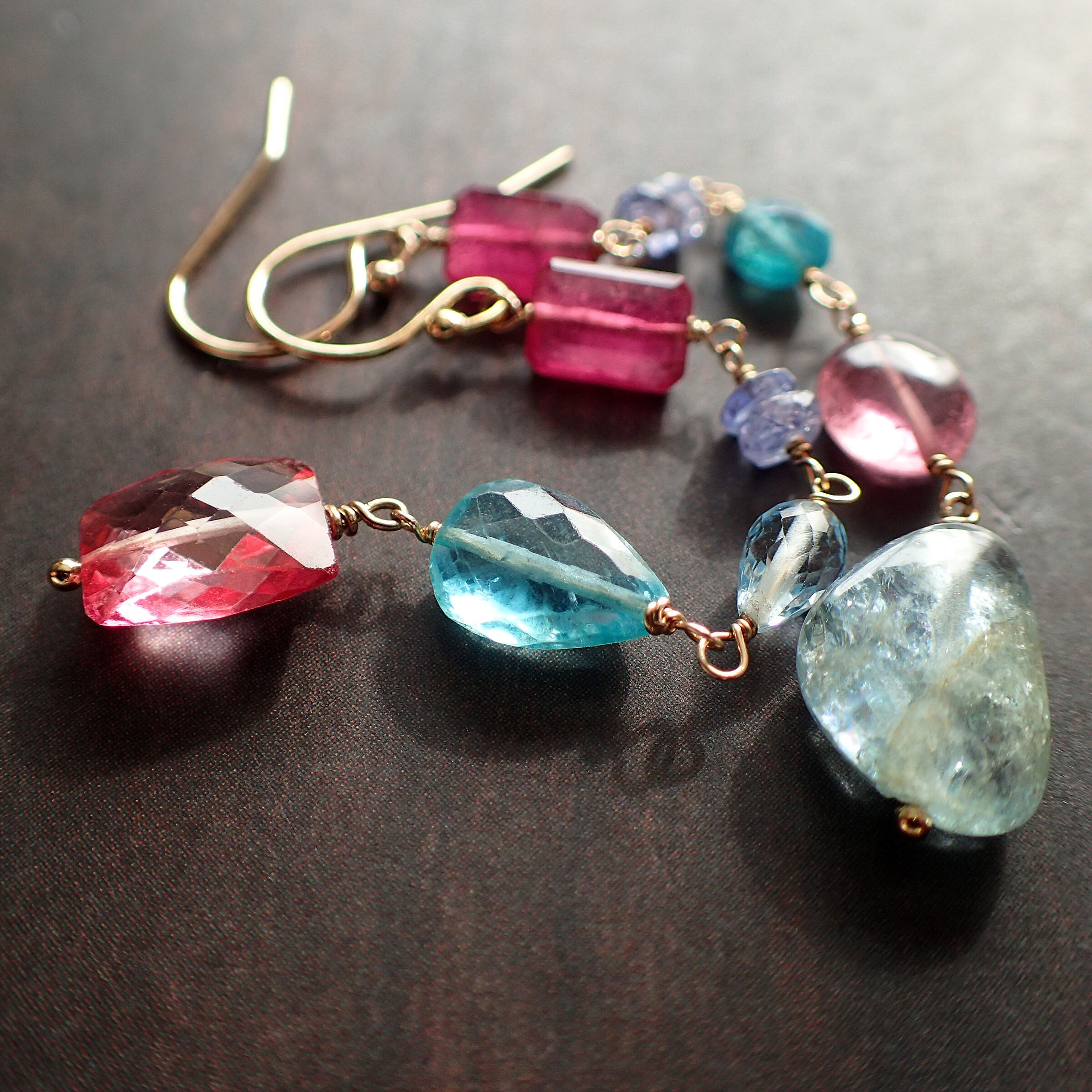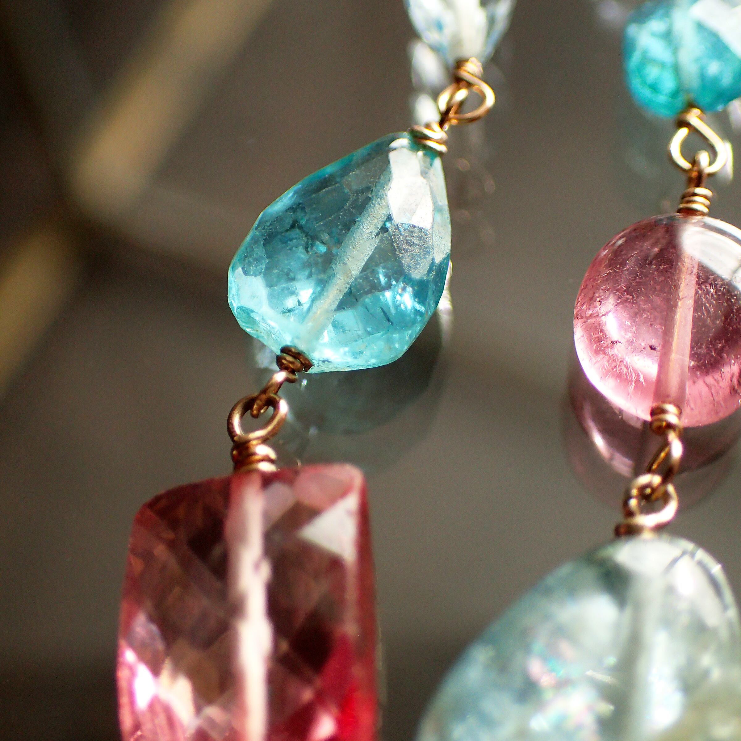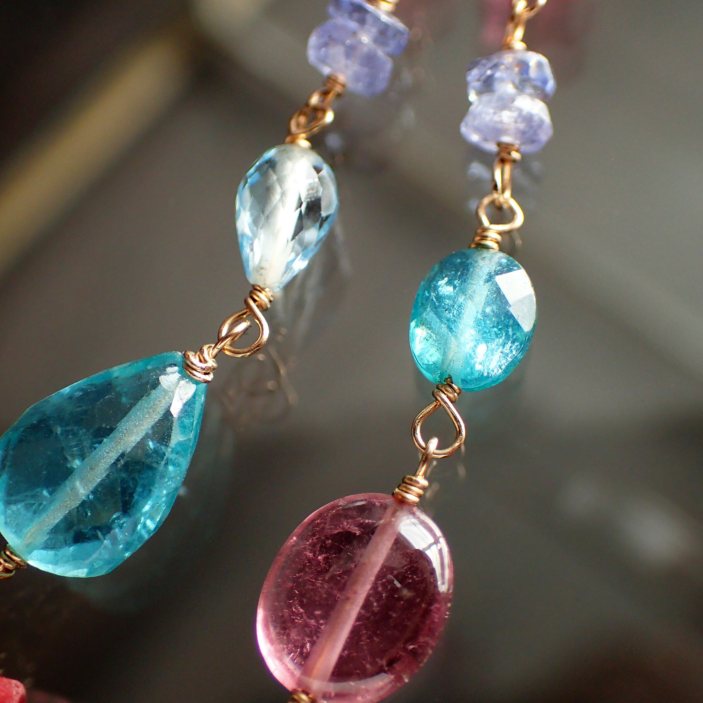 ピンクトルマリン、タンザナイト、アパタイト、スイスブルートパーズ、アクアマリン、ピンクトパーズ、K14GF製