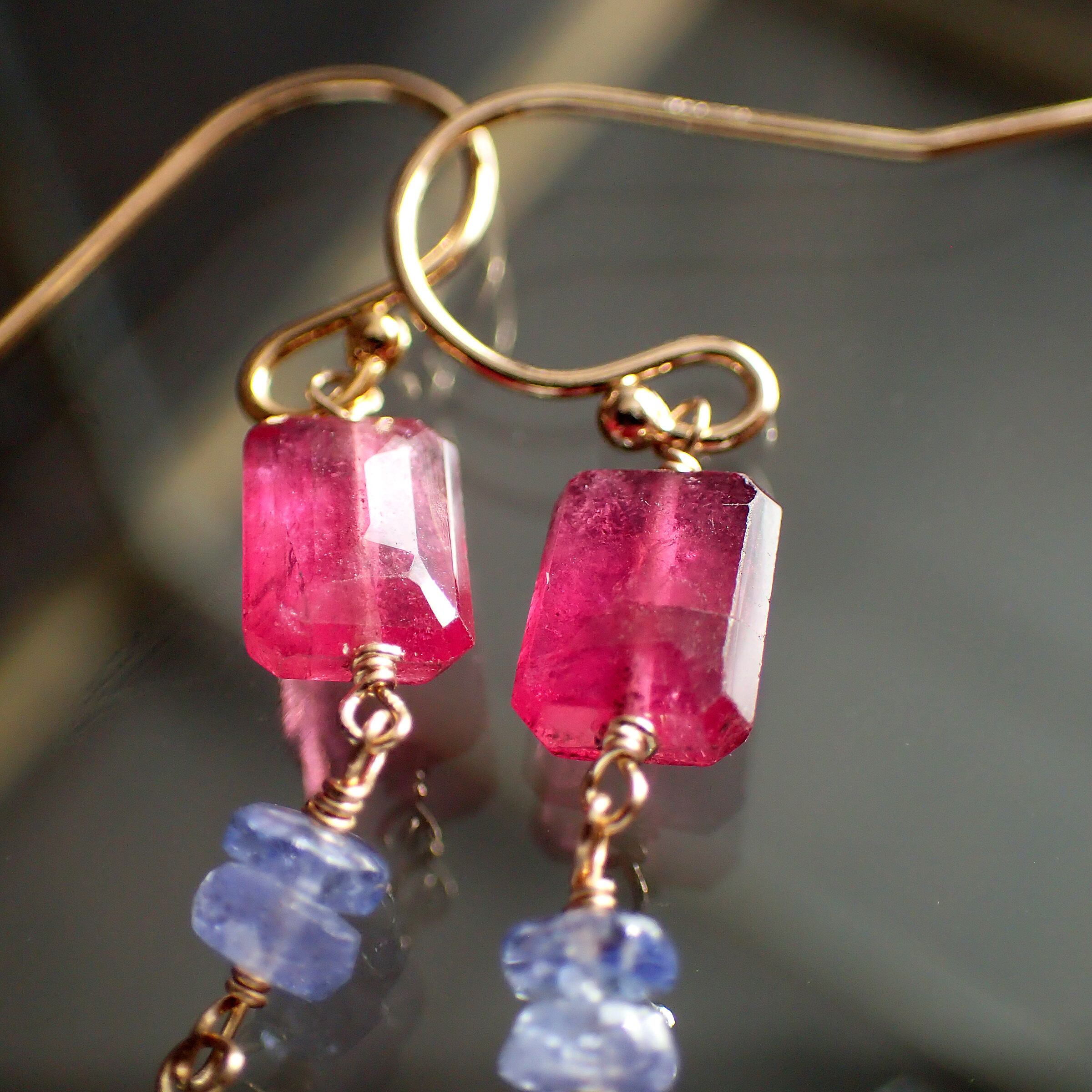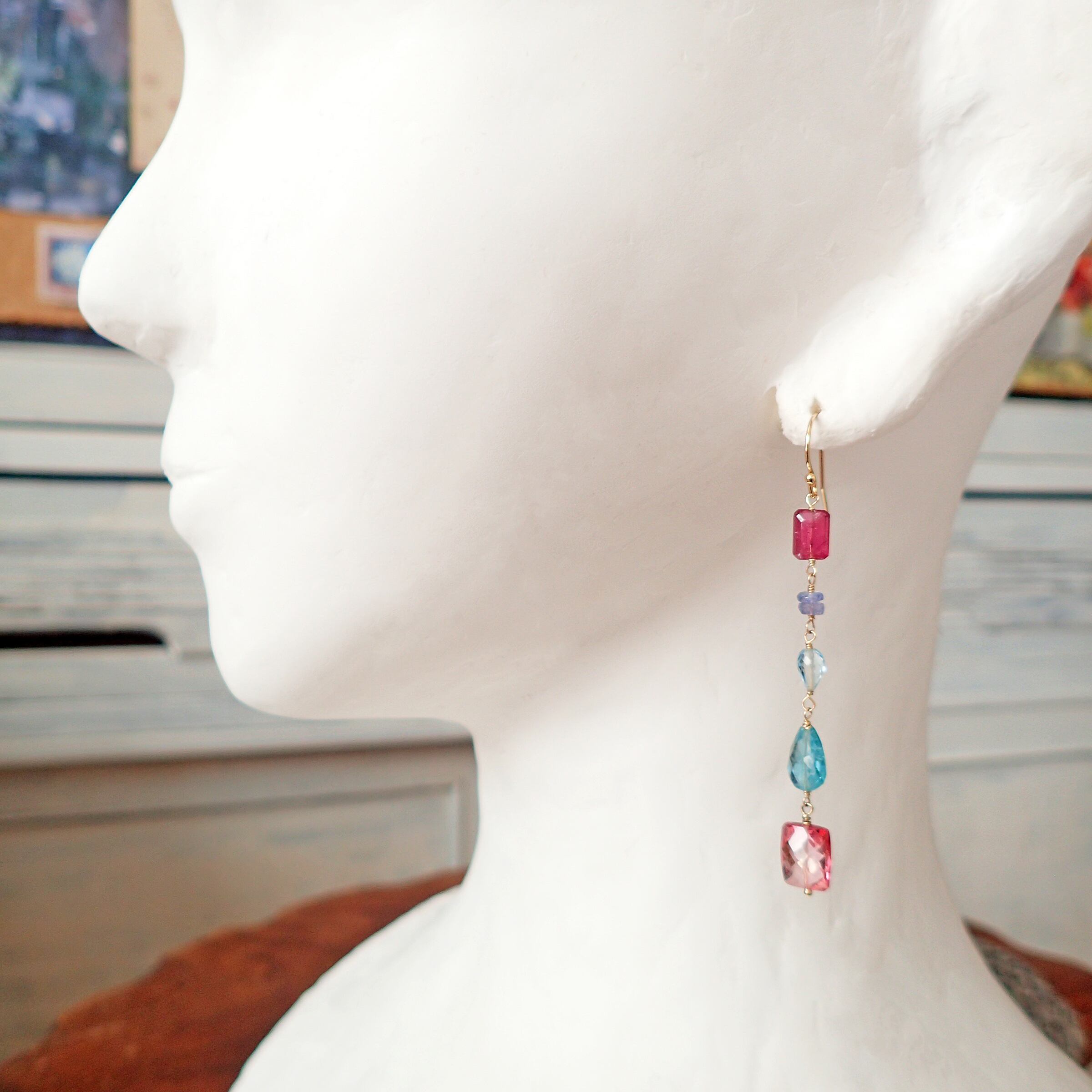 # ブルー&ピンク・ジェムストーンのロングピアス