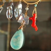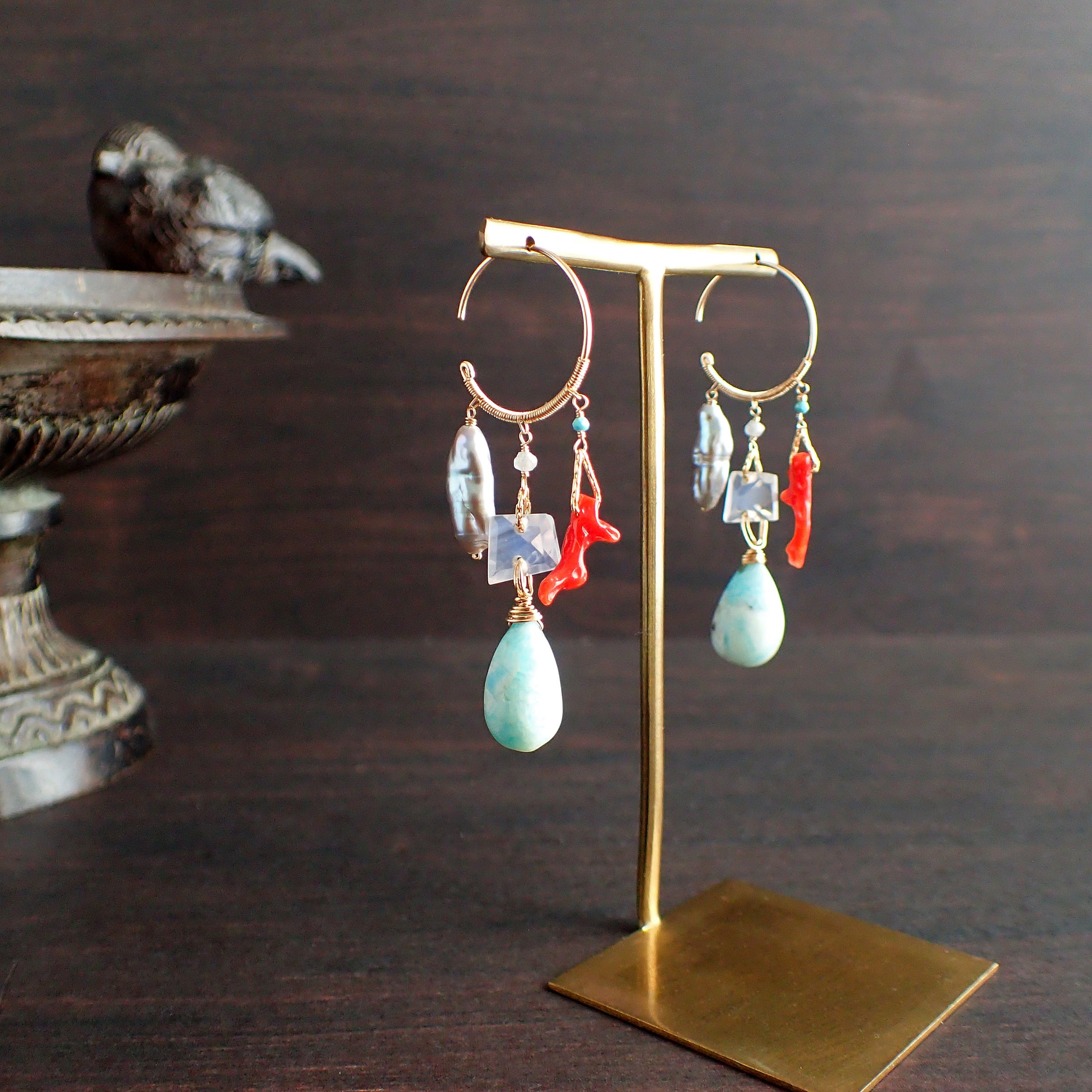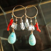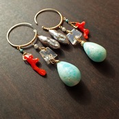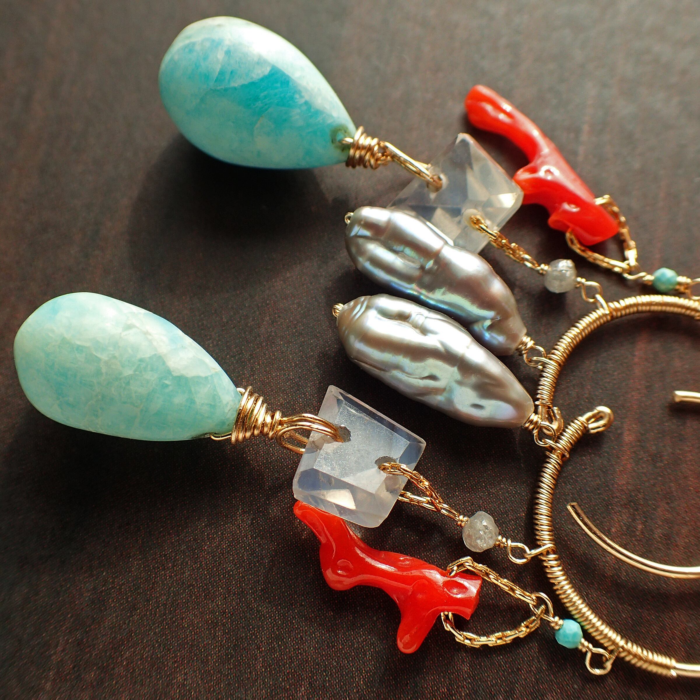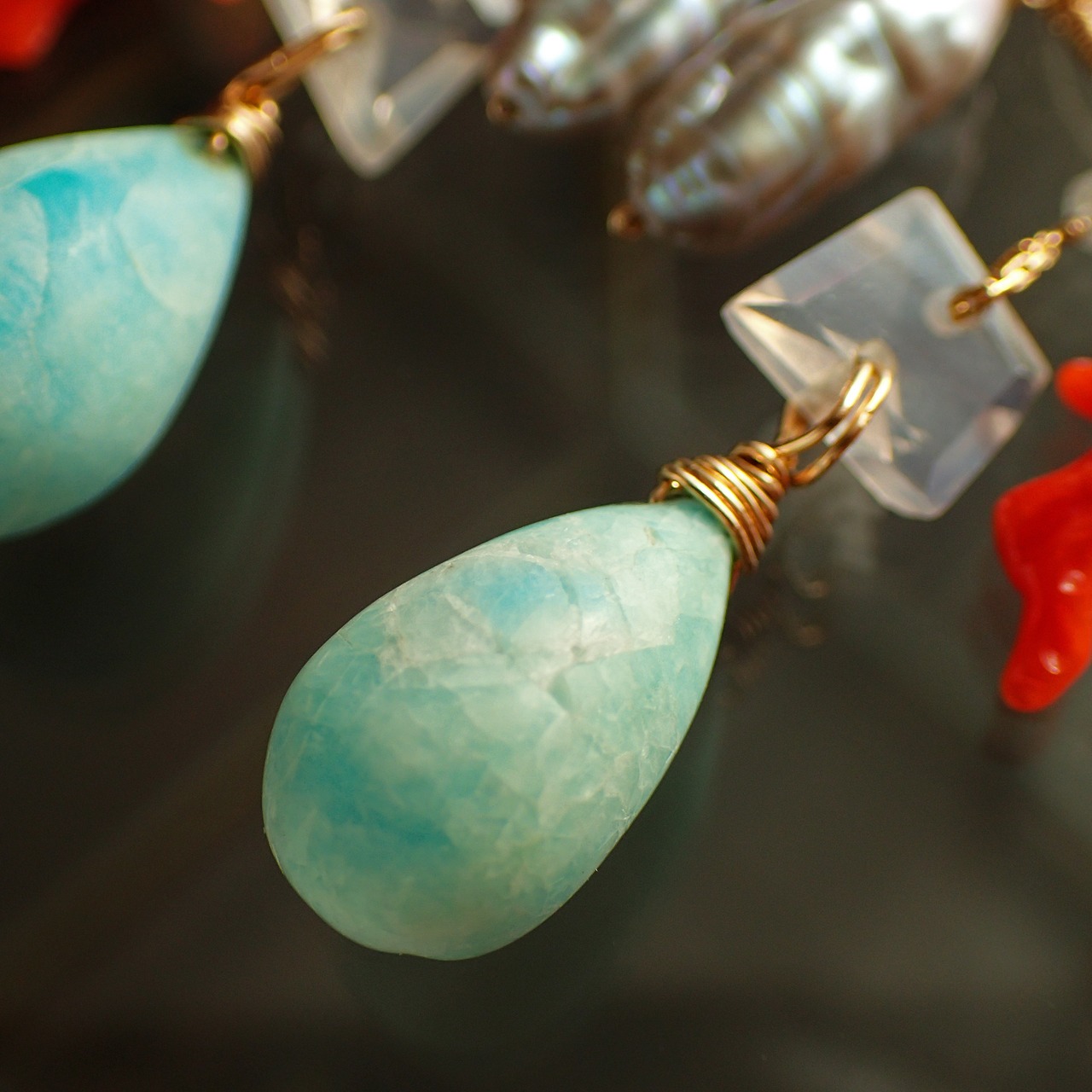K14GF・アマゾナイト・枝珊瑚・淡水パール・ラフダイヤモンド・トルコ石・スコロライト